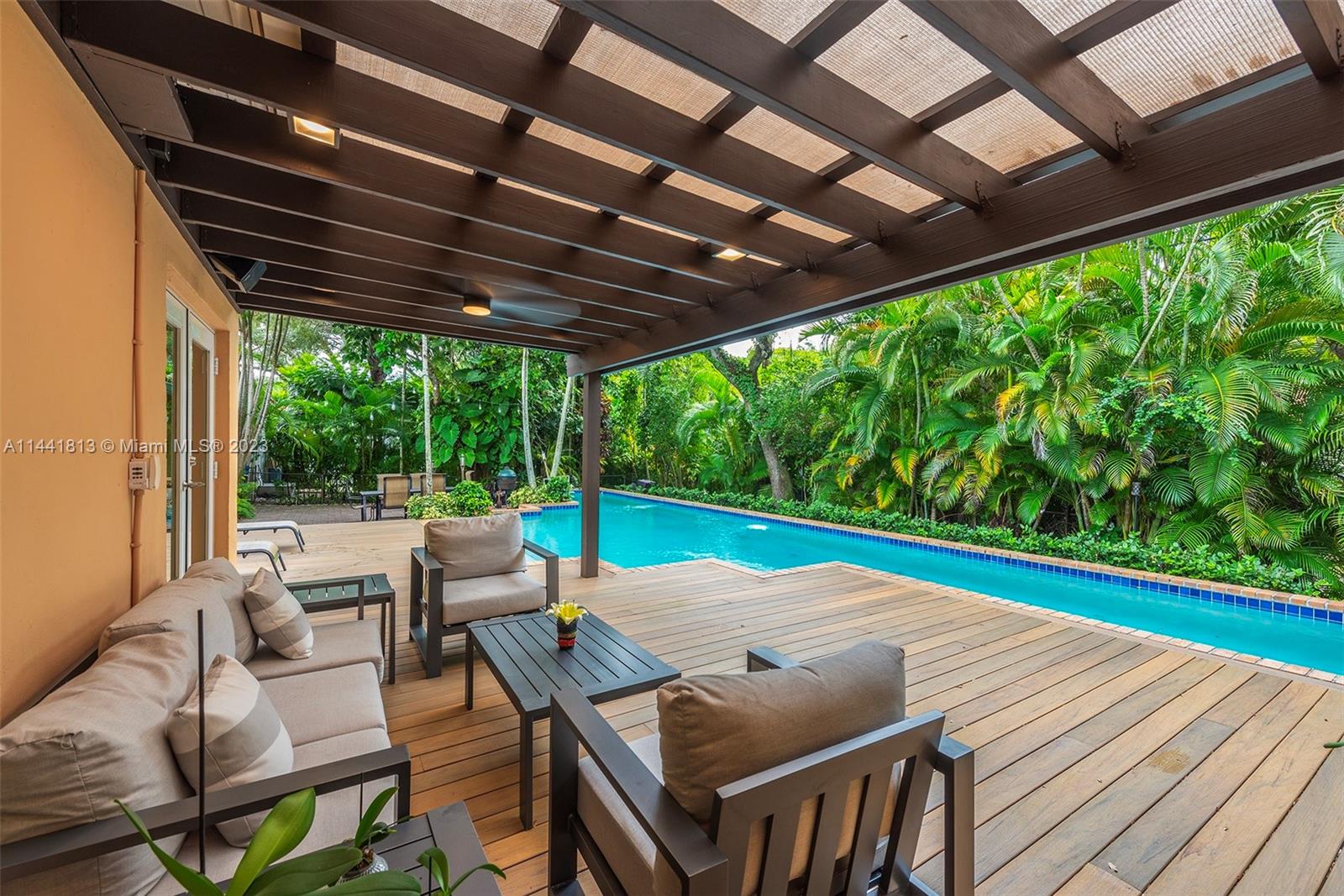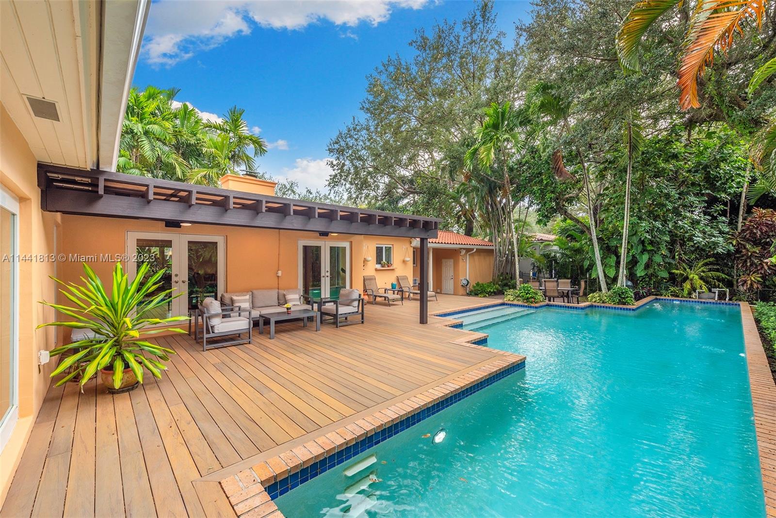 Indulge in the elegant charm of this beautiful 4 bedroom 3 bath home in the Heart of Coral Gables! This is a true tropical oasis, completely renovated, all impact windows and doors, new roof, beautiful kitchen with top of the line appliances, bonus room for a home office or den. Stunning resort style outdoor living with sparkling pool, brand new deck, gorgeous pergola canopy for all your entertainment needs. Walking distance to Miracle Mile with world class dining, shopping and entertainment. Welcome Home!