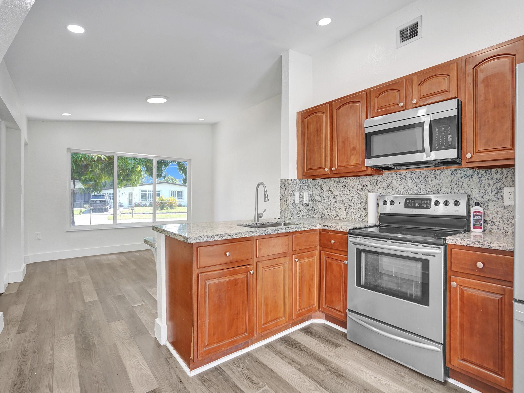 Beautiful remodeled home sitting on a oversized corner lot, in the very sought after Lake Forest Neighborhood. NEW roof only 4 years old, IMPACT windows installed 2 years ago, Central A/C 4-5 years old. Updated kitchen with Granite countertop, upgraded lighting and flooring. Sitting on an oversized corner lot, this property includes 3 bedrooms and 3 full bathrooms, and extra storage space on the side of the house with a bathroom. Big back yard with a shed.