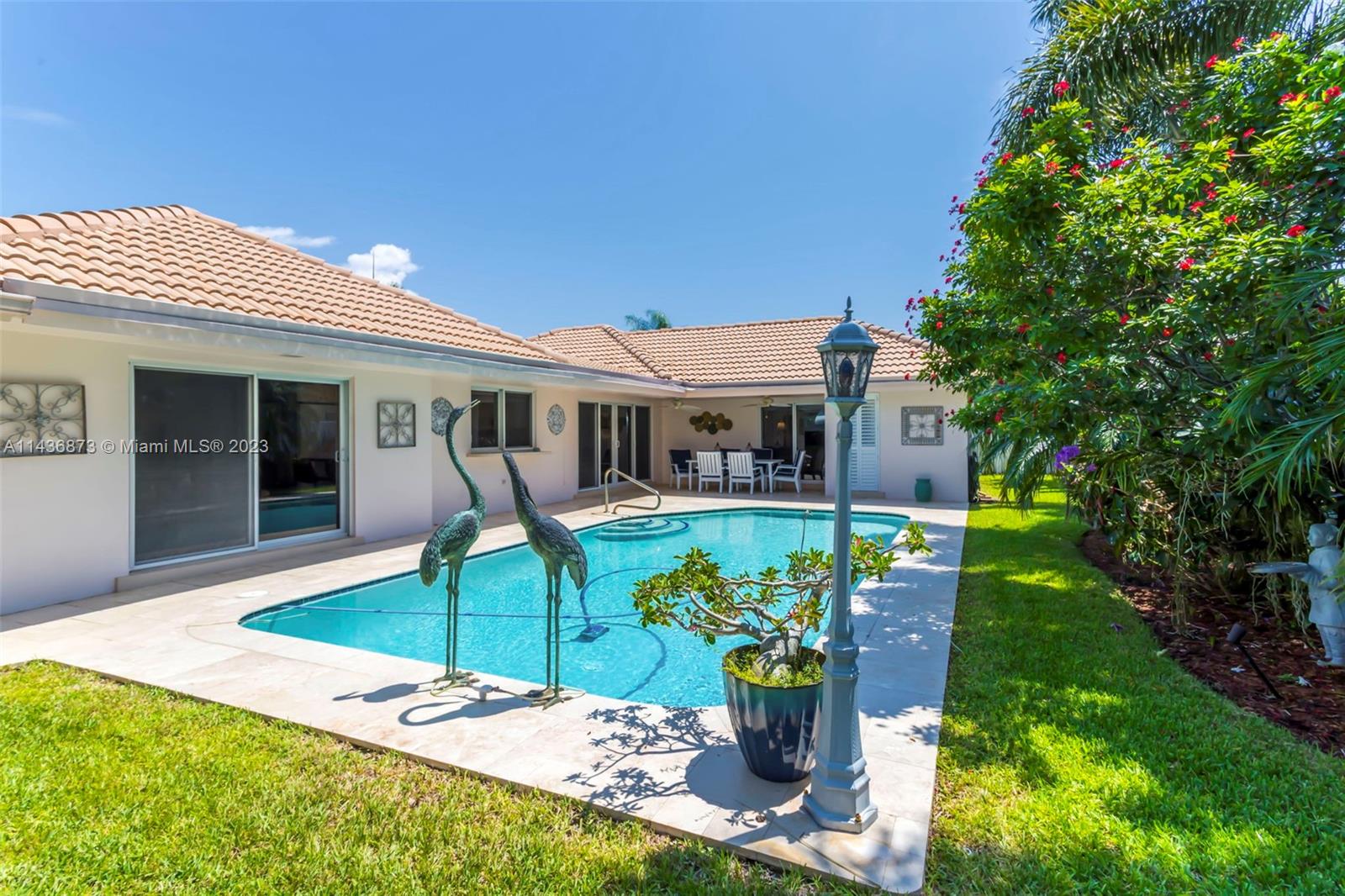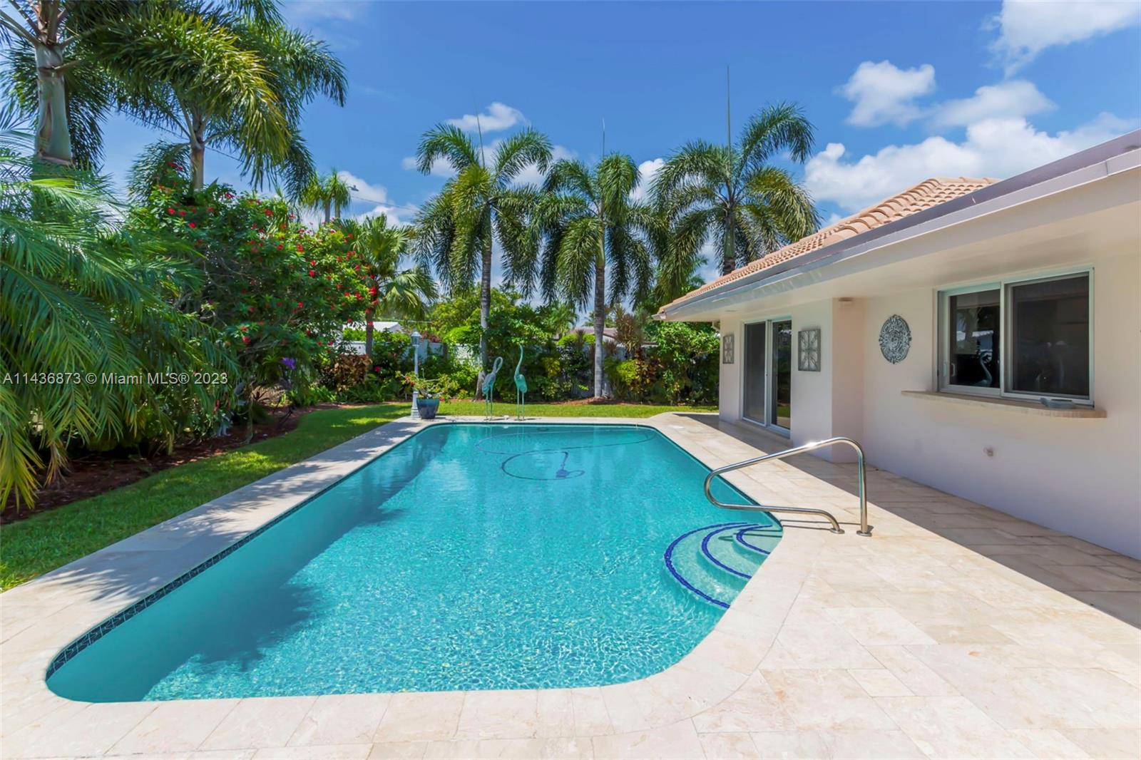 Beautiful Imperial Point 4 Bedroom/2 Bath CORNER lot home with IMPACT WINDOWS & Pool. MANY UPDATES: 2022 A/C & Electrical Panel, 2023 Diamond Brite for Pool, 2021 Water heater, Less than 3 years; kitchen appliances & washer/dryer. Custom window Blinds. Gorgeous Saltillo tile in most of the house. Large Primary BR w/ensuite & overlooks the pool. Dual vanities & glass shower. 3 additional BRs & full bath with glass shower. Views of pool & from Living/Family Room & Kitchen. Lovely White kitchen cabinets with granite counters & backsplash, snack bar & opens into Family Room for entertaining. Beautiful corner lot offers large fenced-in yard, lush landscaping, oversize circular stamped concrete driveway. Located minutes from prestigious PineCrest School. Incredible Location! 3 miles to Beach!