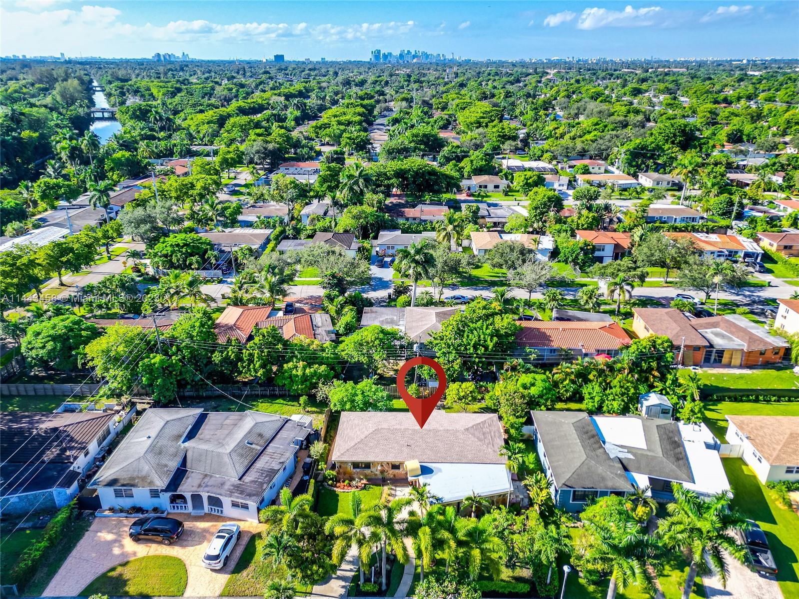 Impeccably kept gem in the heart of North Miami. This spacious 3- bedroom 2- bathroom home is a blend of mid-century meets modern. Upon entering the home you're surrounded with beautiful natural stone work throughout the space. The property is filled by tropical plants and fruit trees. Over 7,300 sq ft. yard with endless possibilities. New roof installed June 2023.This property is being sold as is.