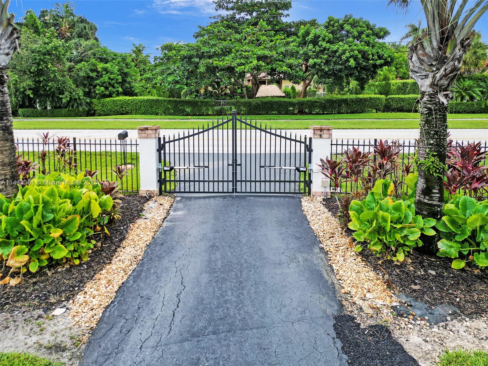 Come home to this captivating estate like entrance in the heart of sought-after Davie with close proximity to major highways & multiple top rated schools. As you enter through the private gates you feel the warmth of this home. This gorgeous property showcase a large, meticulously landscaped yard designed for both entertaining and leisure. The home features 4 bedrooms and 3 full baths, with a large master suite, hardwood flooring in majority of the home,bathrooms with marble & porcelain.The open floor plan is perfect for entertaining seamlessly blending indoor & outdoor spaces!The back of the house is walled mainly with glass allowing you to enjoy the serenity of backyard. Endless potential!! NO HOA, Fireplace is closed off at roof and can be reopened by new owner.Foyer light excluded.