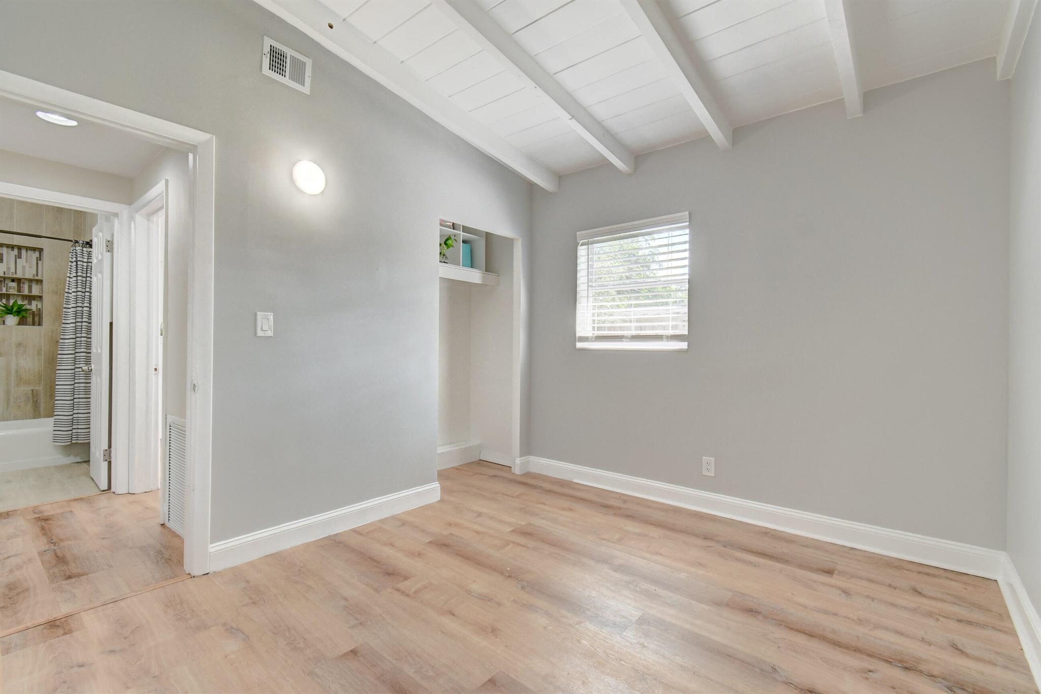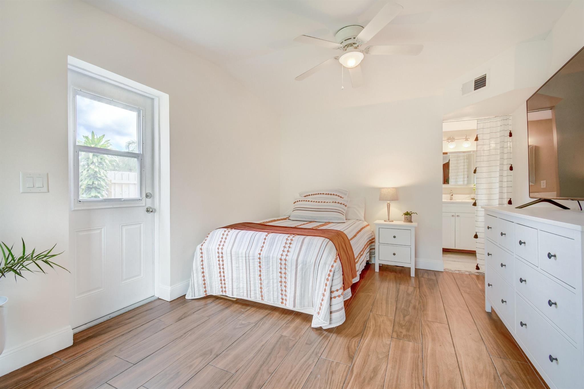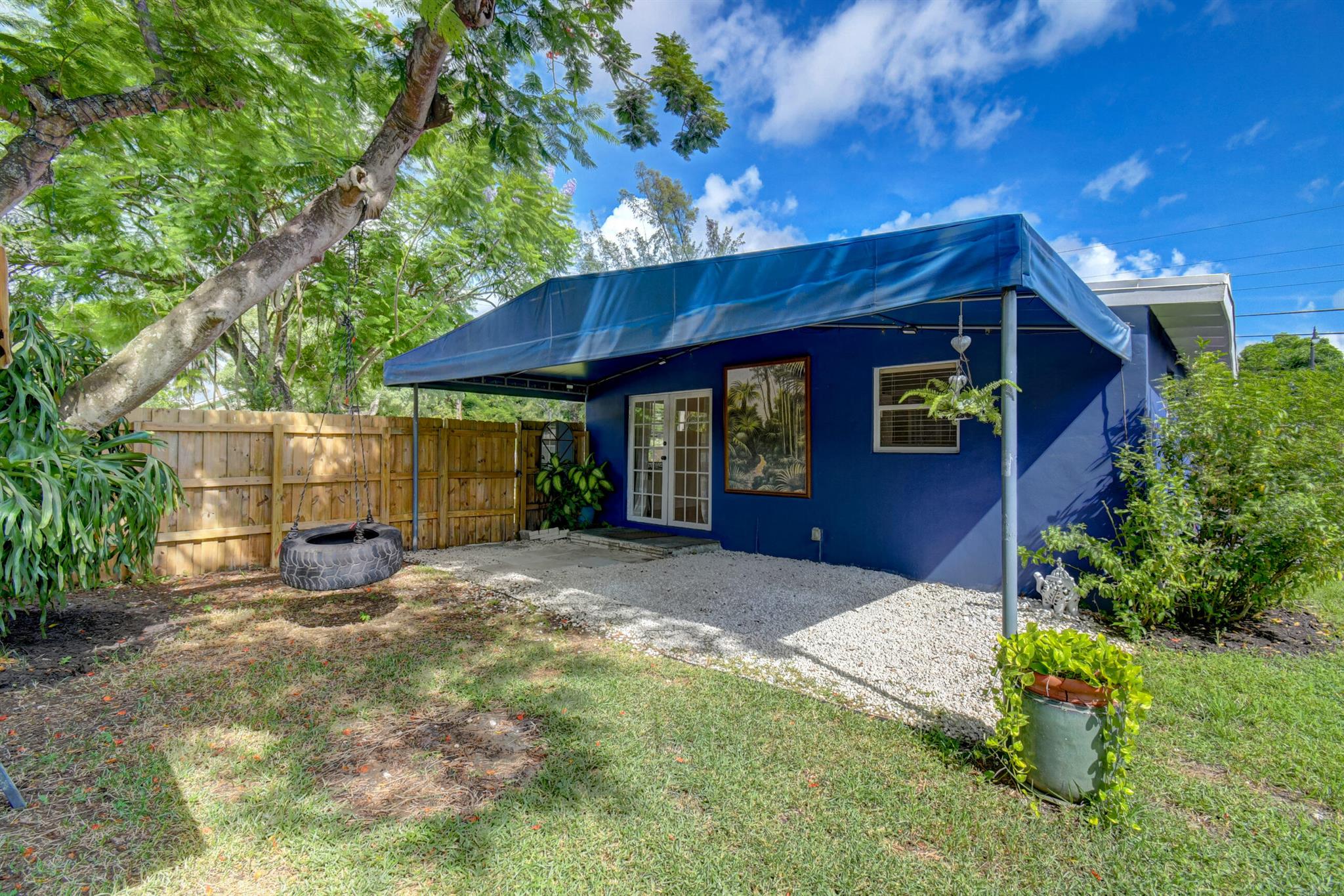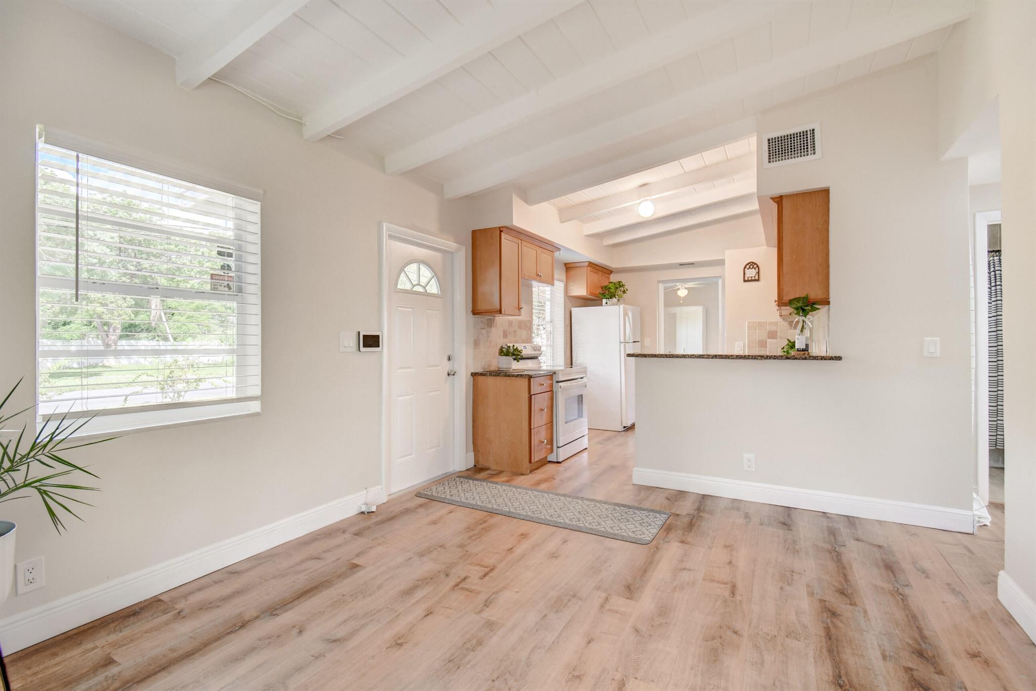 Welcome home to historic OLD POMPANO! This corner lot home features three bedrooms, two full updated bathrooms, central AC 2020 and newer roof. Freshly painted on both exterior and interior, this move in ready gem is an incredible opportunity with no HOA. Vinyl floors and baseboards throughout boasting high white wood beamed ceilings streaming an abundance of natural light in each room. French doors leading out to your backyard paradise under a covered awning. Huge fenced in backyard with double gates give access to park your boat /RV. Master suite offers a remodeled bathroom and a door leading out to your own private fenced in backyard. This room could even be rented out as a separate unit. Enjoy the historic charm of the Sample-McDougald House with parks and beaches just minutes away.