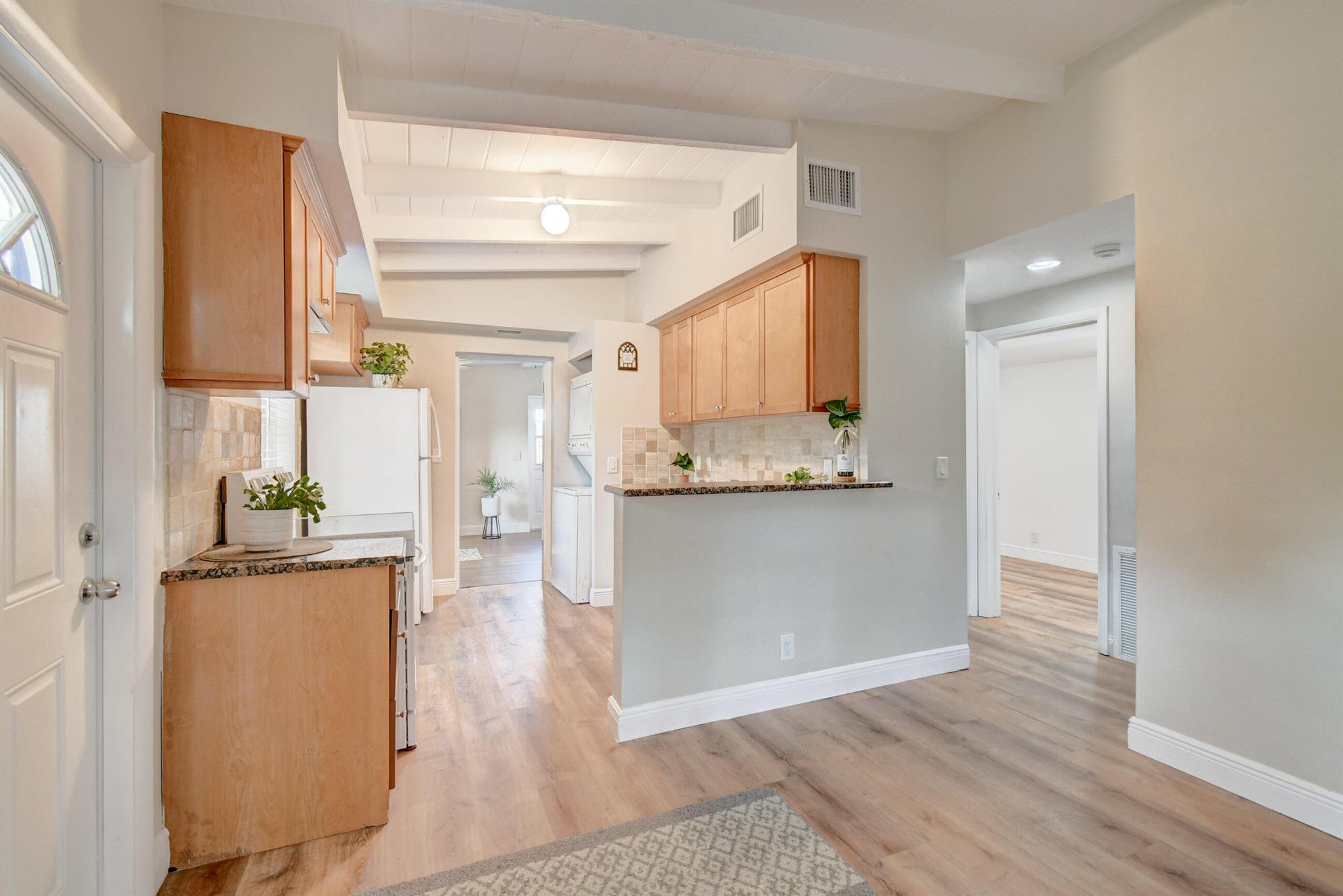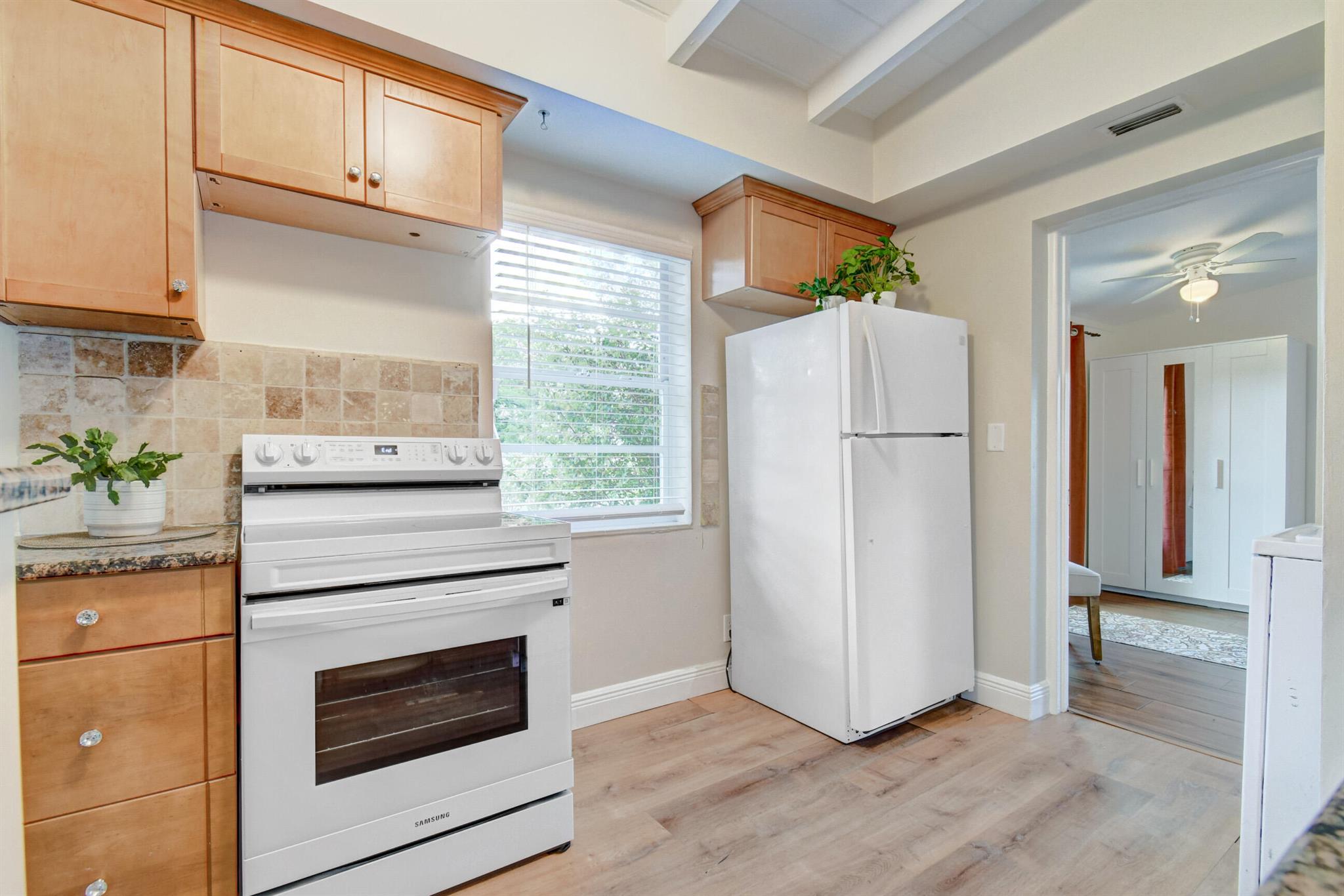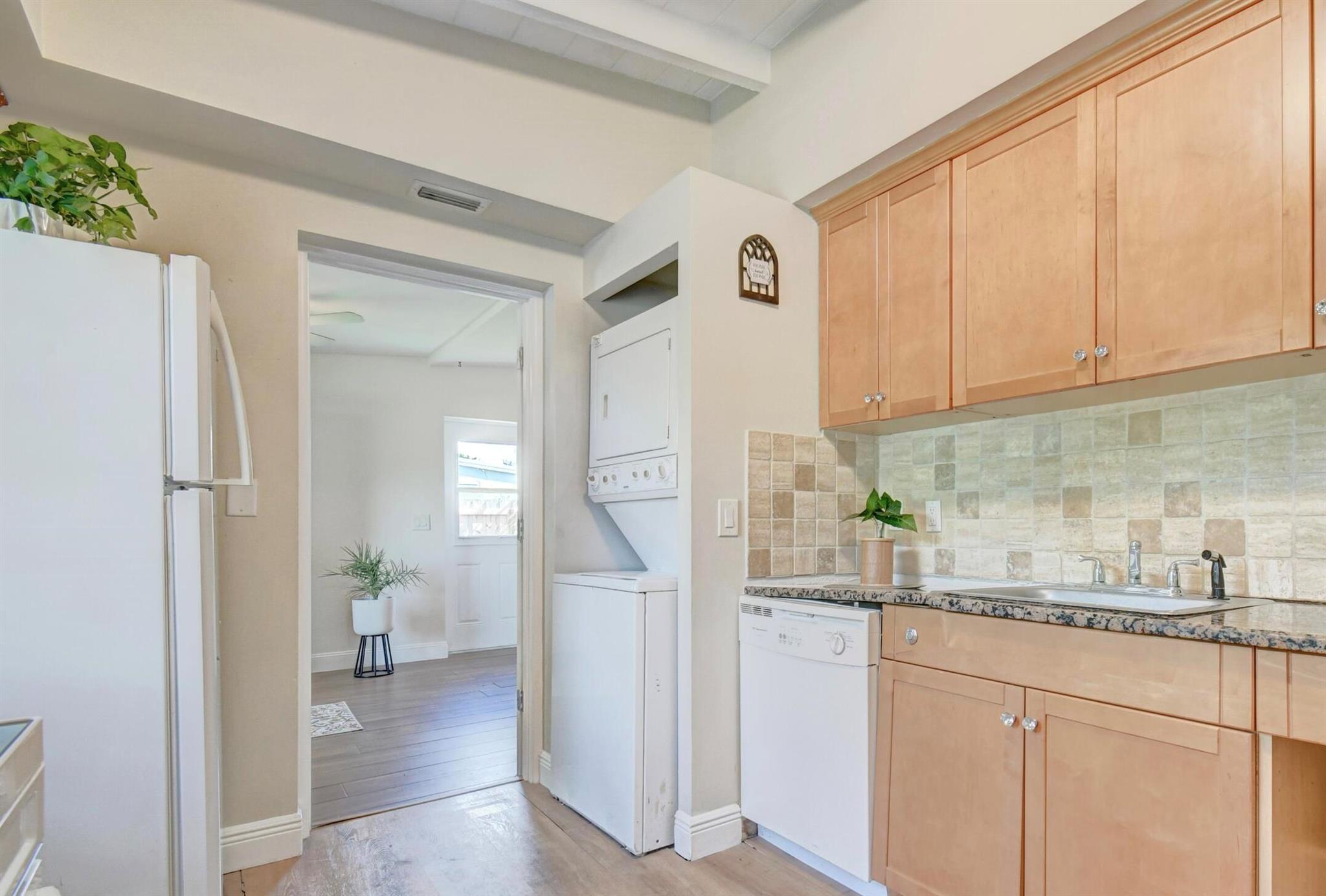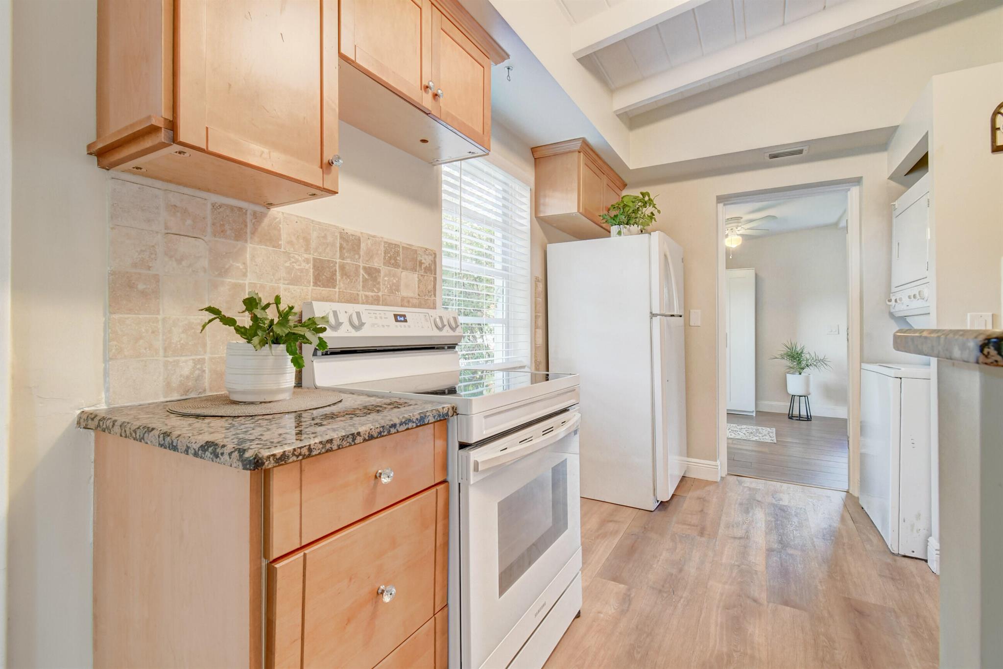 Welcome home to historic OLD POMPANO! This corner lot home features three bedrooms, two full updated bathrooms, central AC 2020 and newer roof. Freshly painted on both exterior and interior, this move in ready gem is an incredible opportunity with no HOA. Vinyl floors and baseboards throughout boasting high white wood beamed ceilings streaming an abundance of natural light in each room. French doors leading out to your backyard paradise under a covered awning. Huge fenced in backyard with double gates give access to park your boat /RV. Master suite offers a remodeled bathroom and a door leading out to your own private fenced in backyard. This room could even be rented out as a separate unit. Enjoy the historic charm of the Sample-McDougald House with parks and beaches just minutes away.
