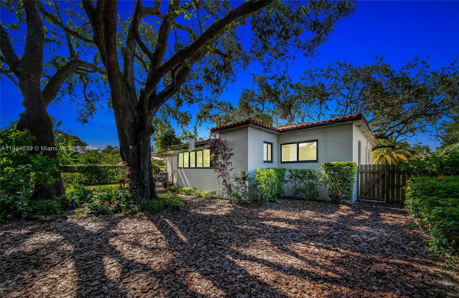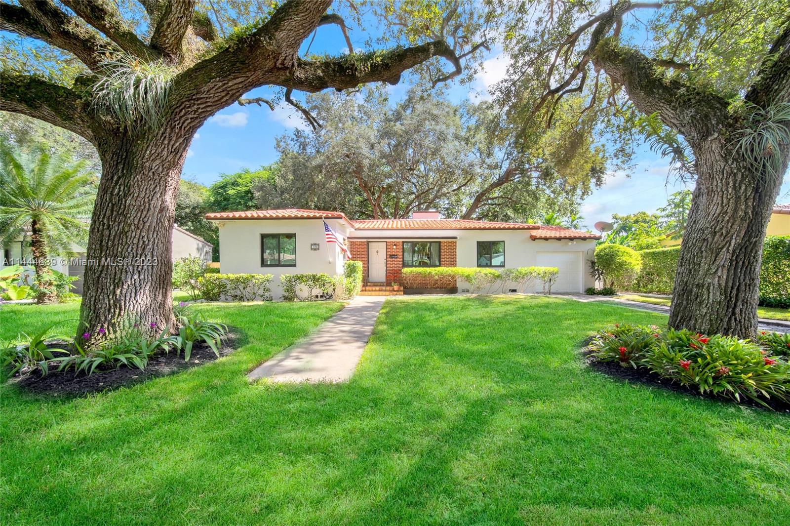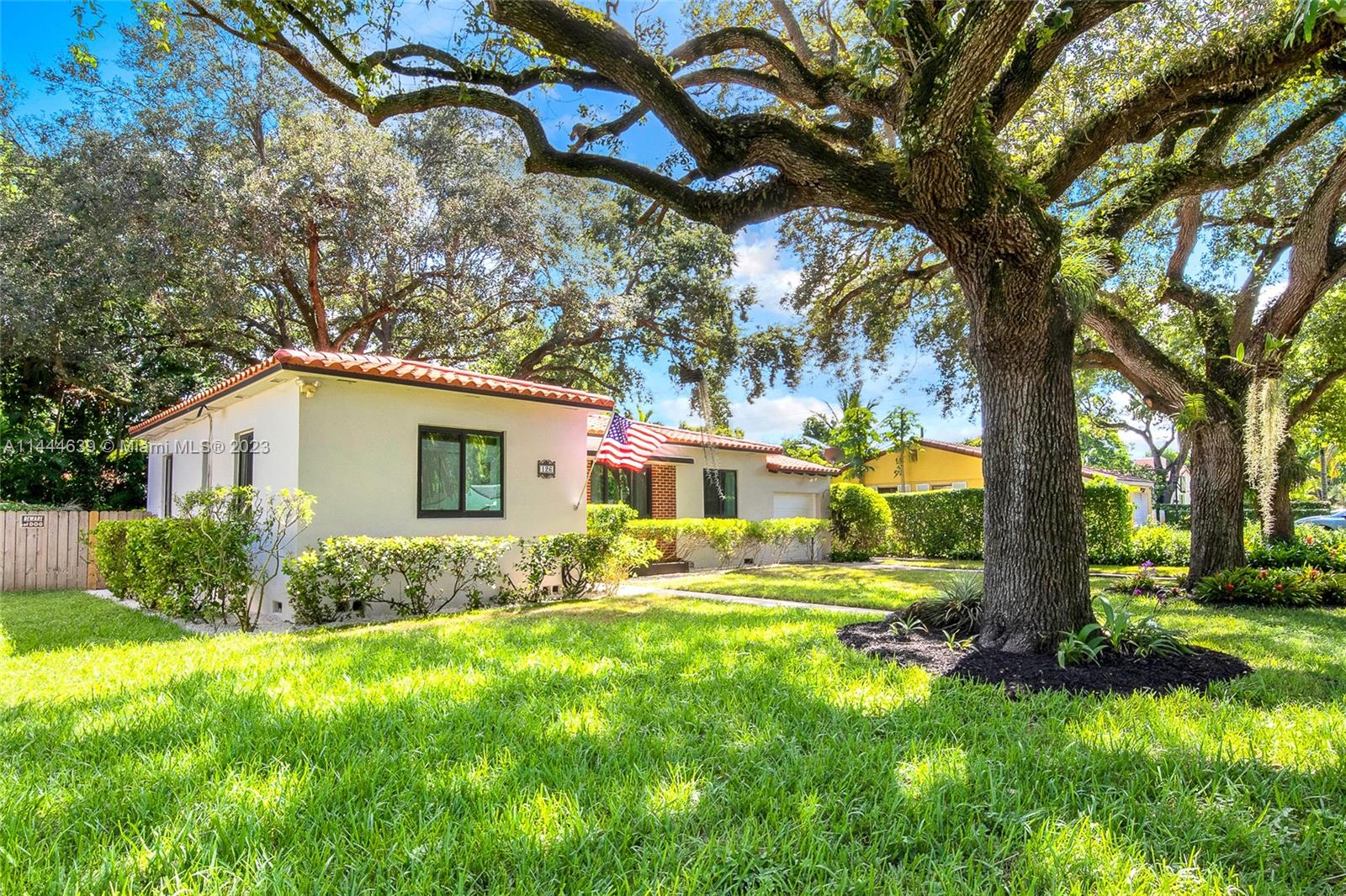 Welcome to Six Oaks, in the heart of Miami Shores. You’ll feel like you’re living in your own private sanctuary in this meticulously maintained and smartly updated early mid-century home, surrounded by six breathtaking majestic live oak trees. Enter into desirable open flow living with natural hardwood floors, working fireplace, separate dining room, generous kitchen and grand rear media-sun room opening to the lush rear gardens. A stately starter home or clever down-sizer, with two spacious bedrooms, two full baths, and a one car garage. Updates include new tile roof, upgraded electrical, impact windows-doors and brand-new appliances, with plenty of upside! Tranquility awaits in this must-see home on a quiet tree-lined cul-de-sac, a few blocks to downtown Miami Shores in a non-flood zone.