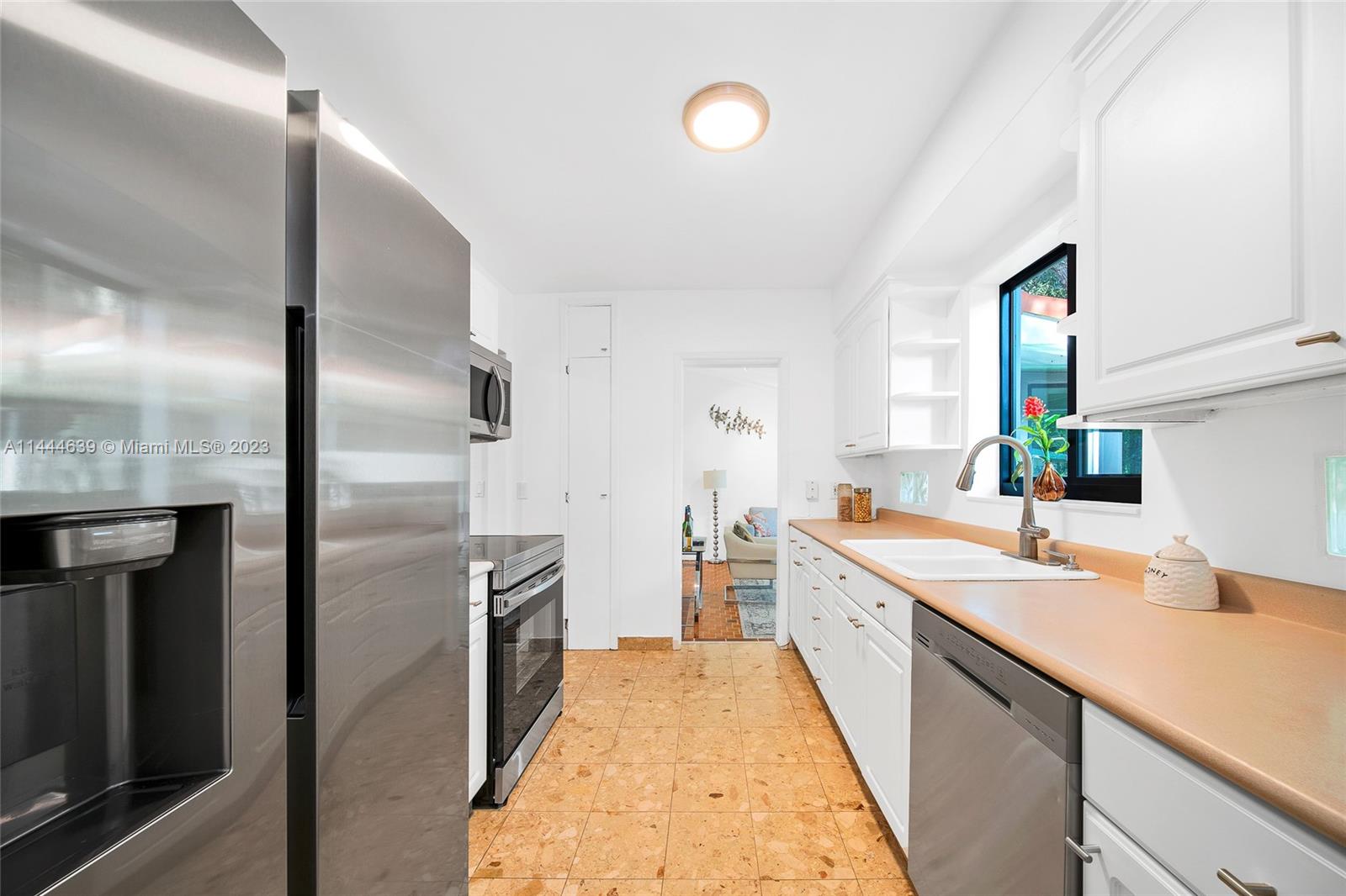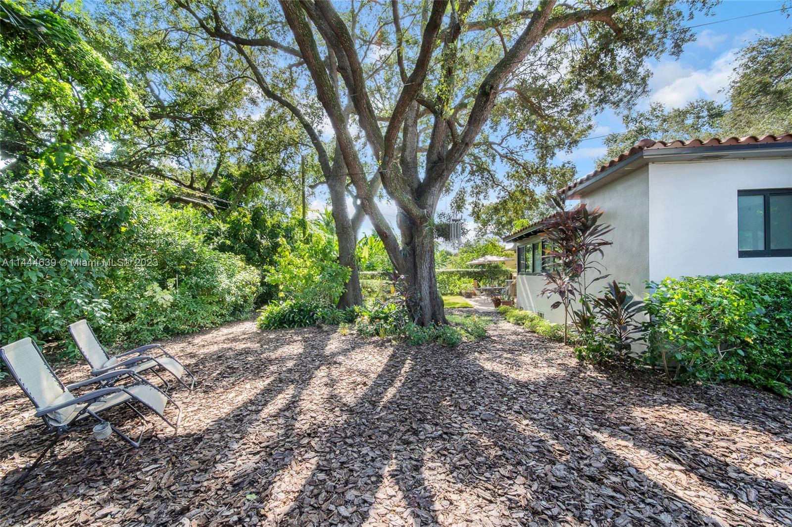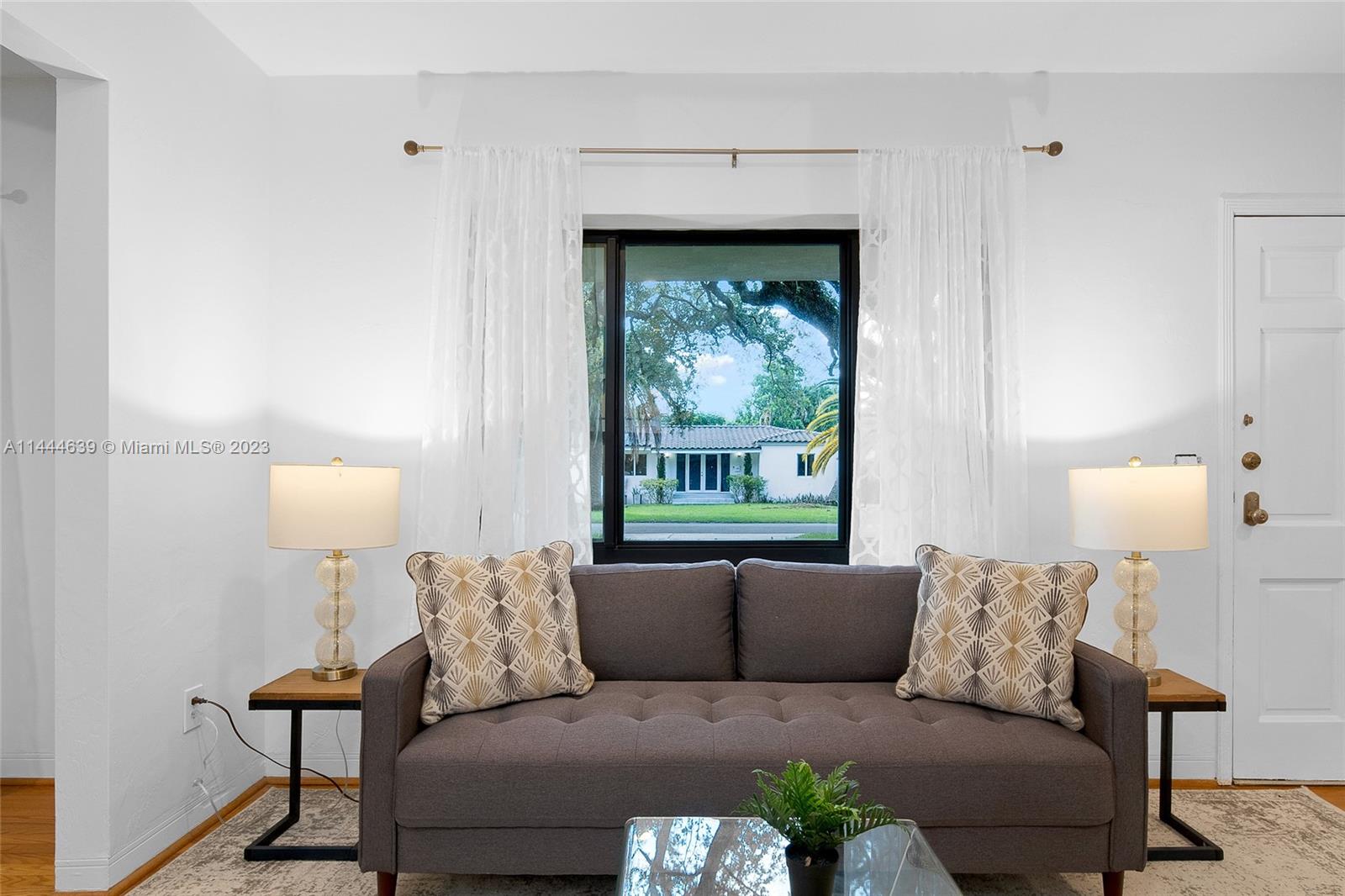 Welcome to Six Oaks, in the heart of Miami Shores. You’ll feel like you’re living in your own private sanctuary in this meticulously maintained and smartly updated early mid-century home, surrounded by six breathtaking majestic live oak trees. Enter into desirable open flow living with natural hardwood floors, working fireplace, separate dining room, generous kitchen and grand rear media-sun room opening to the lush rear gardens. A stately starter home or clever down-sizer, with two spacious bedrooms, two full baths, and a one car garage. Updates include new tile roof, upgraded electrical, impact windows-doors and brand-new appliances, with plenty of upside! Tranquility awaits in this must-see home on a quiet tree-lined cul-de-sac, a few blocks to downtown Miami Shores in a non-flood zone.