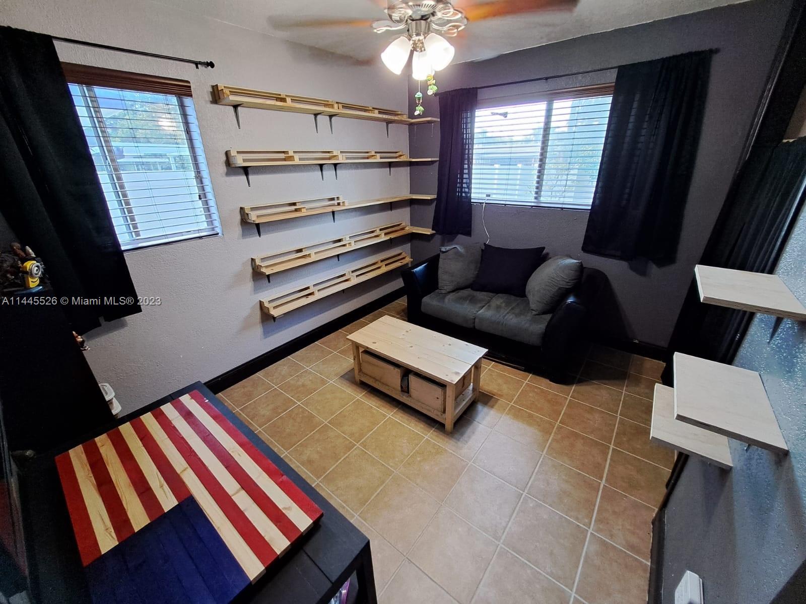 Lovely 2/1 with a circular driveway and plenty of room for addition and a pool. This house has an Open Floor plan with a Granite countertop in the Kitchen. Tiled throughout with entrance and bar with laminate floors. Bathroom with marble vanity top. All windows have hurricane shutters. The fridge and Microwave were replaced 2019. The roof is 2 years old (6/28/2021). The Gutters were replaced in 2021. HVAC system is 3 Years old (9/15/2020). The water heater was replaced in 2014. New White Vinyl Privacy Fence installed -4/20/2021. The Lawn Sprinkler Pump was replaced in 2020. Removable fire pit. Very Large backyard with Mango and Avacado trees. Shed in the back does not convey.