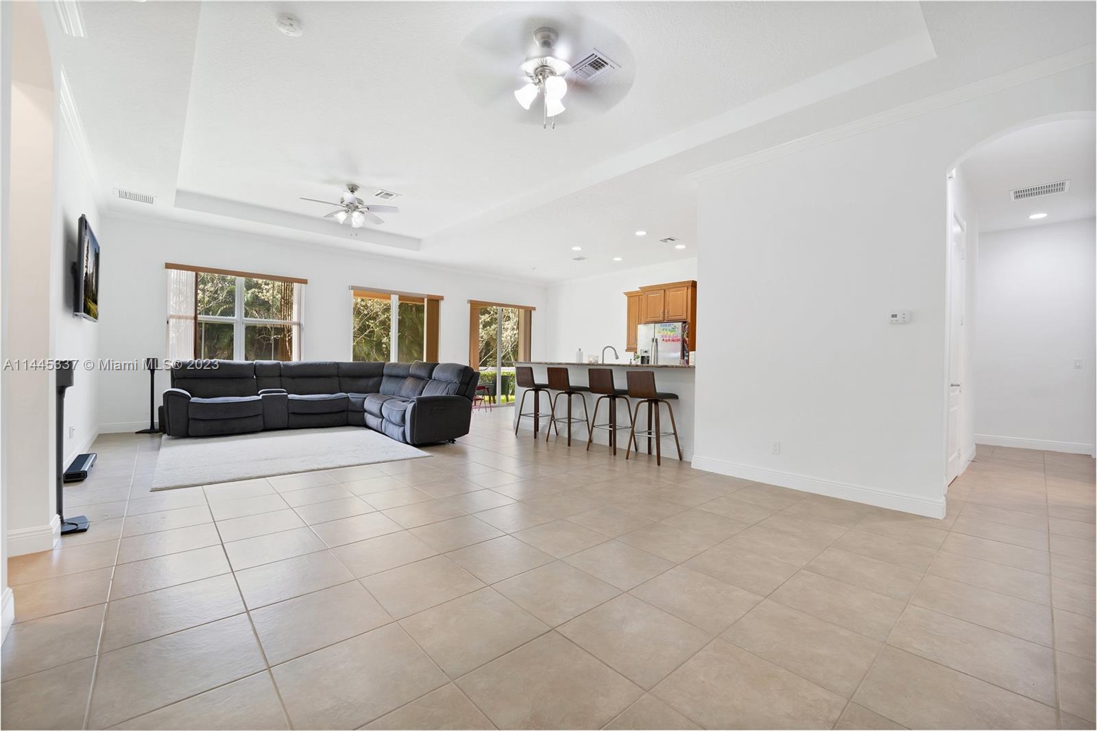 Spacious move-in ready home located in the heart of Davie. Open space living room area and open kitchen with stainless steel appliances. Ceiling fans all throughout the home. Fenced backyard. Master bedroom has walk in his/hers closet, bathroom has his/hers sink, a soaking tub, and stand alone shower. Located on a corner lot surrounded by stunning greenery. Laundry room with washer/ dryer and storage space. Small room at the entrance of the home can be used as an extra bedroom/ office. Seminole Hard Rock Hotel & Casino can be seen from the driveway of the home and it is only a 5 minute drive from the property.