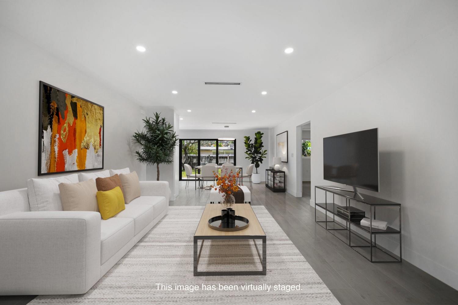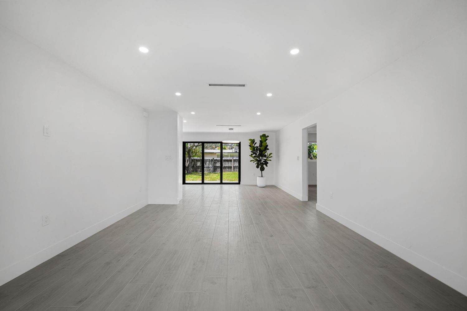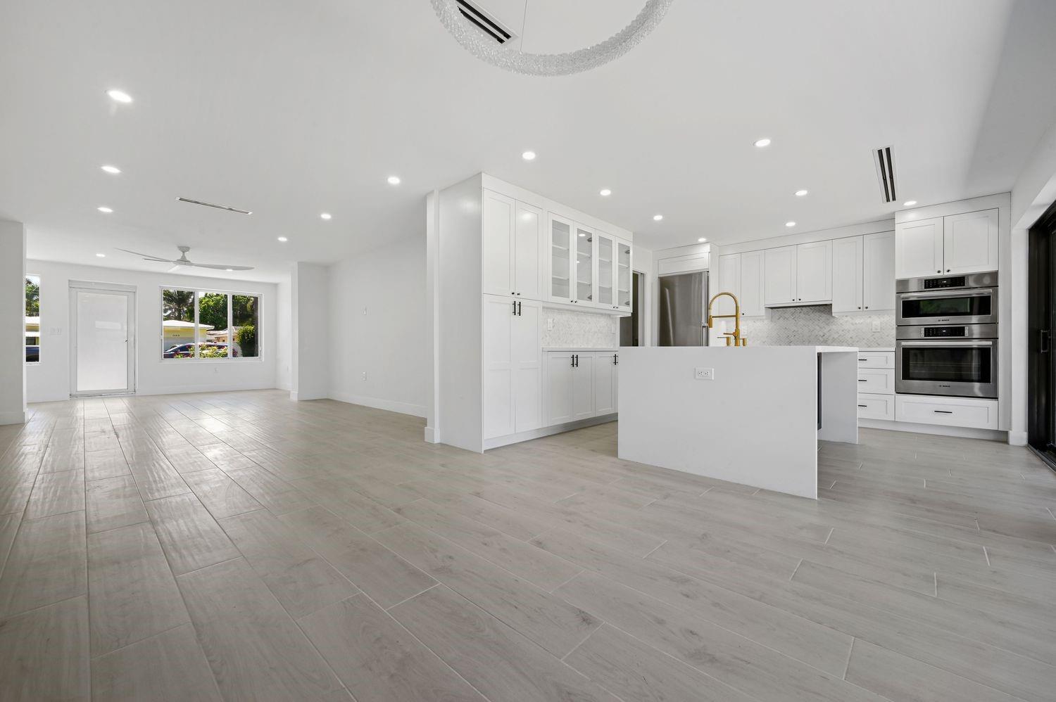This is a Must-See! Mid-century charm loaded with modern luxuries, offering you the best of both worlds. This home has been completely renovated with high-end finishes & fixtures! Step inside to discover wood-like ceramic floors throughout, complementing the open-concept design. The custom kitchen's top-notch appliances make this home an entertainer’s dream. Looking to extend your living space beyond the confines of the interior? Look no further than the two sets of triple sliders that lead to the expansive backyard with plenty of room for a pool! Embrace the Florida lifestyle as you entertain family and friends or create your personal sanctuary. You can rest easy knowing that the Electrical, Plumbing, and HVAC systems were all redone in 2023. (Impact windows and sliders throughout)