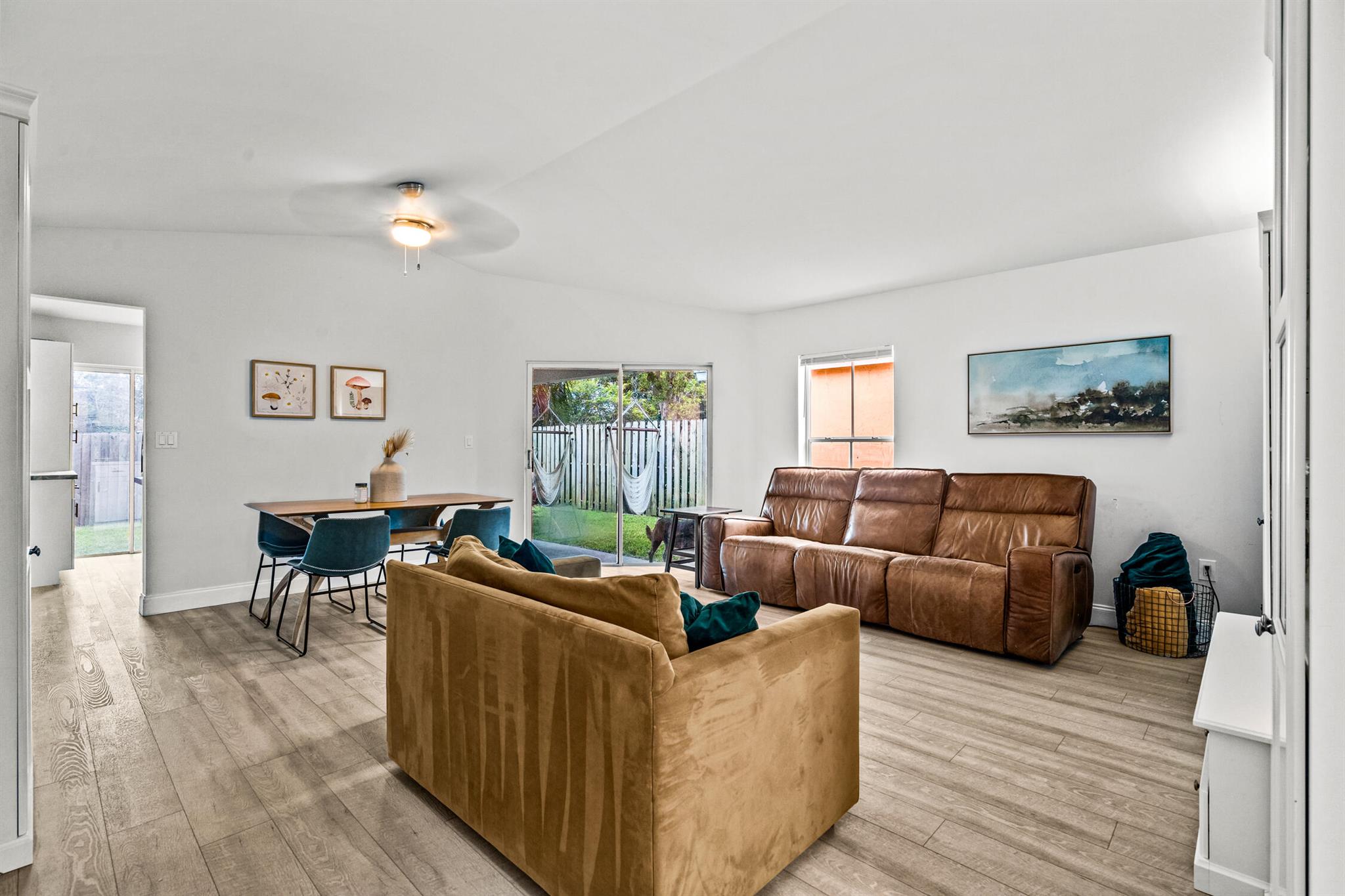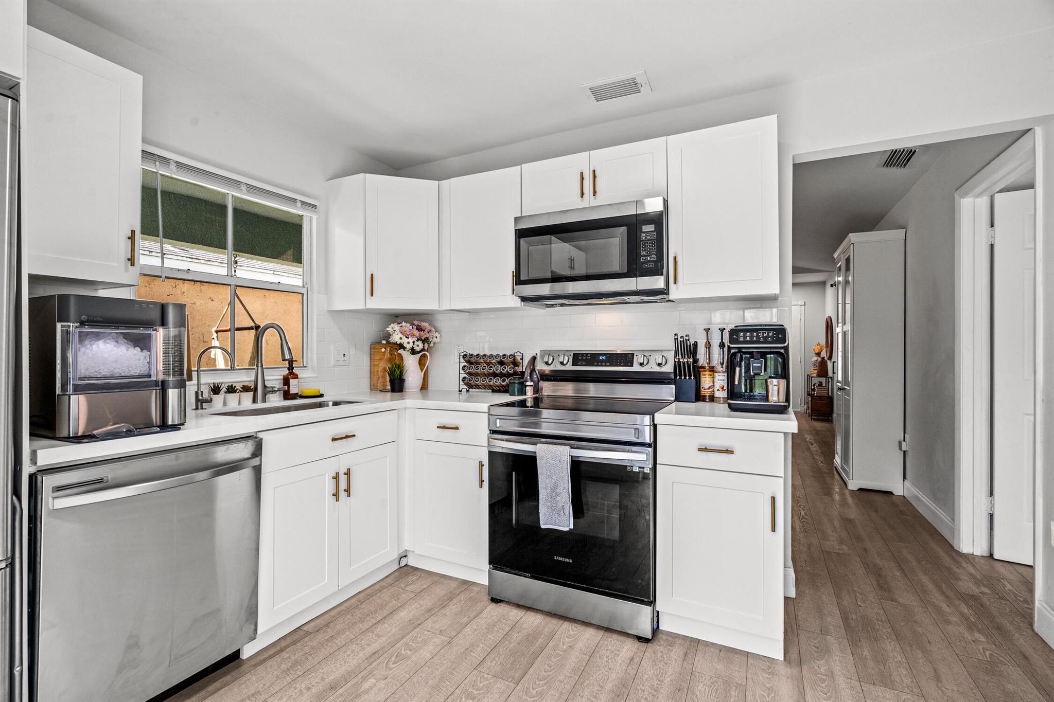 Absolutely charming, fully updated 3 bedroom, 2 bath home in the perfect location in central Davie. Light, bright and meticulously kept, this home is the perfect retreat for your family. This move in ready home features a new roof in 2022, new A/C unit, new stainless steel kitchen appliances and a water filtration system. The tranquil primary bedroom overlooks the spacious yard and boasts a walk in closet and beautifully appointed en suite bath. 2nd and 3rd bedrooms are located in the front of the house for privacy. Luxury Vinyl Tile throughout the home and laundry inside for convenience. Relax in the large, fully fenced in yard with shed and hanging hammocks. Country Creek is a wonderful neighborhood with a community pool, community room, playground and walking trail. Conveniently