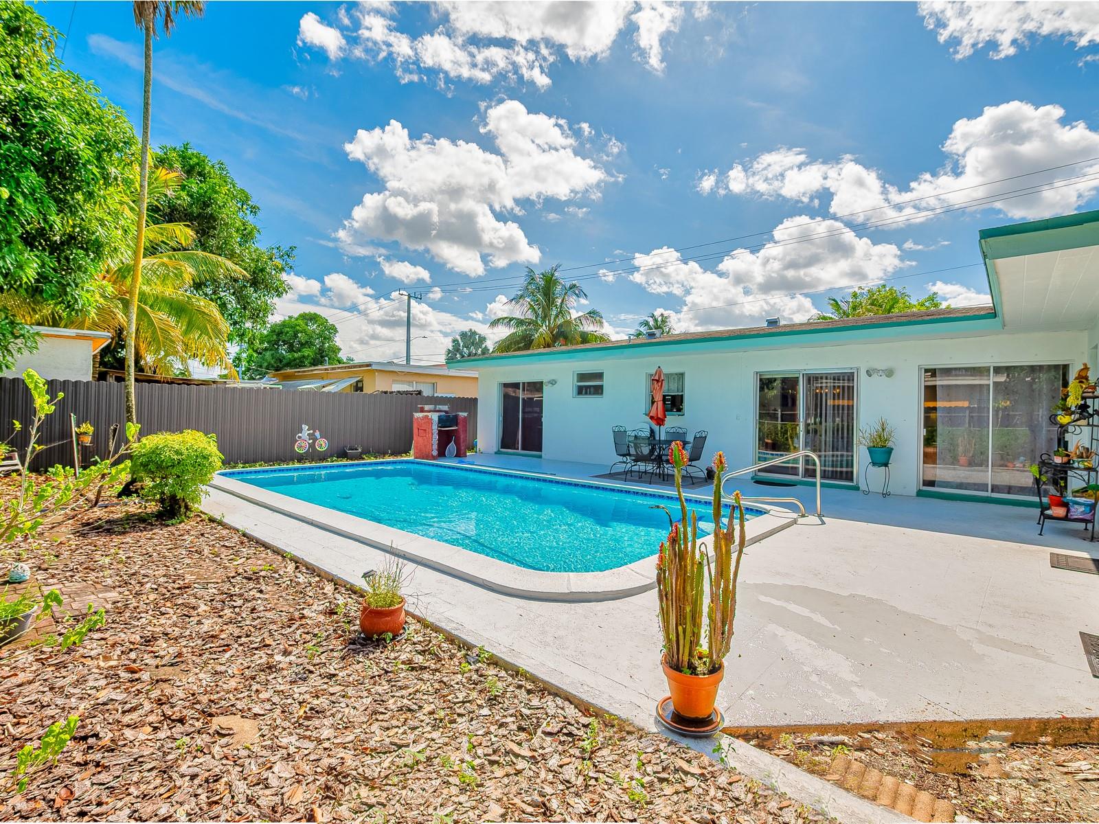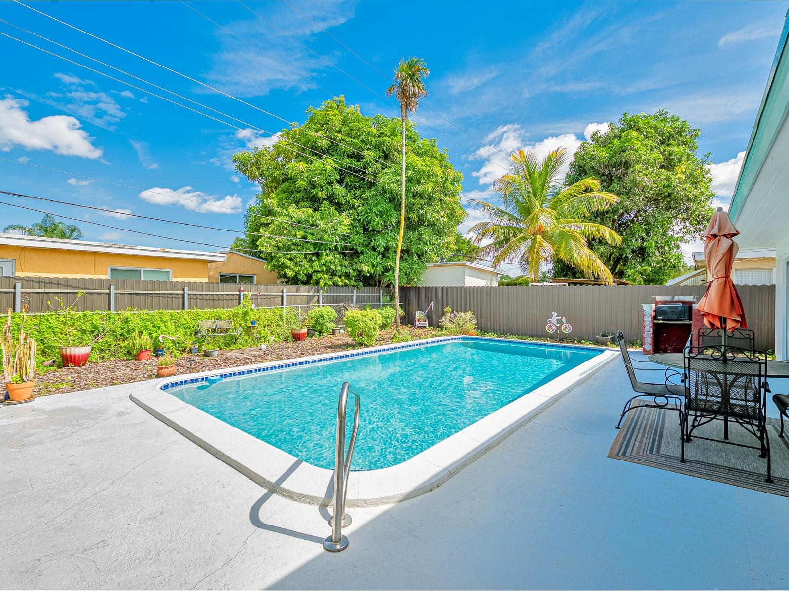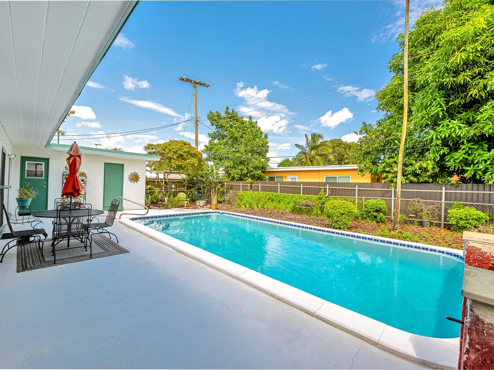 A happy decor of cool & fresh tones welcomes you to this 3/2 family pool home just needing your insight for finishing touches. Kitchen and baths are updated and finished. Home has been well loved and maintained leaving now" happy empty nesters" to move forward leaving this much loved home to your family. Pool area is fun overload, ready for you to make memories. Kitchen pass thru onto patio for pool parties, cabana baths exit from master bedroom onto pool patio. Newer neutral wood like tile throughout home with lament in master bedroom, cabana doors lead onto newly painted patio deck. Colorful Fire bush tree and your own secret garden awaits. "Better than New, Solid as a Rock"
