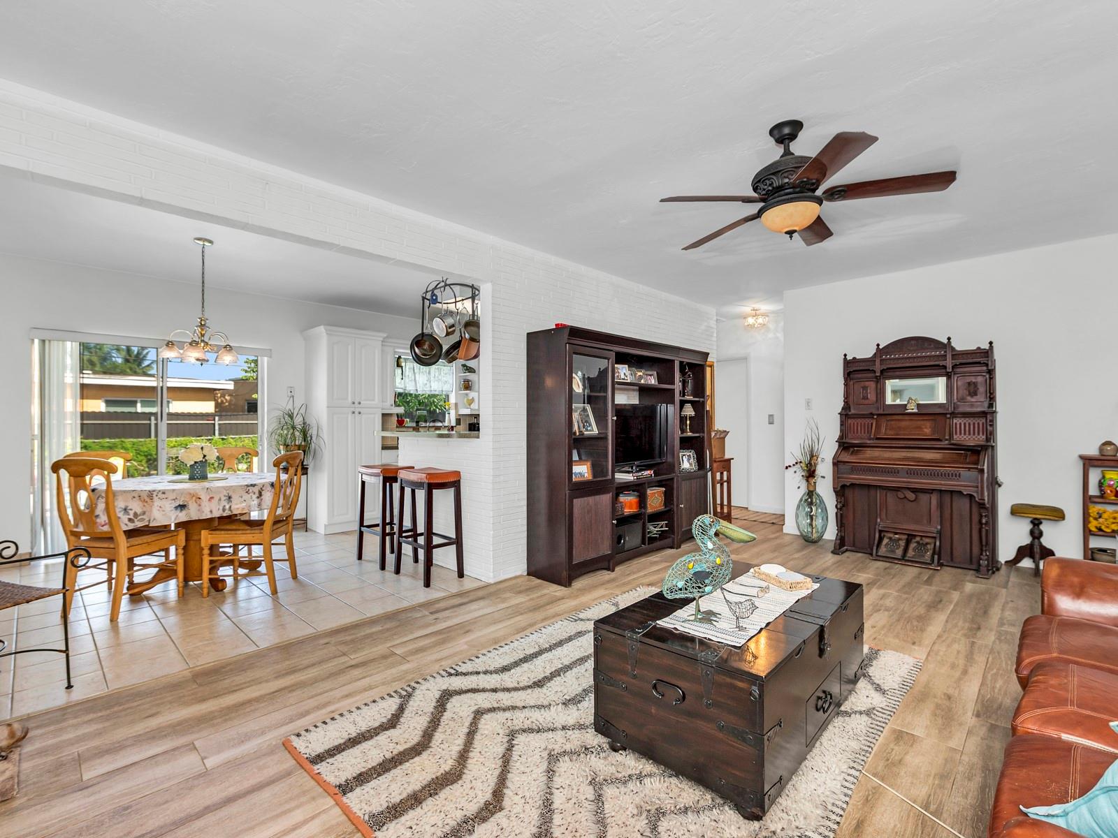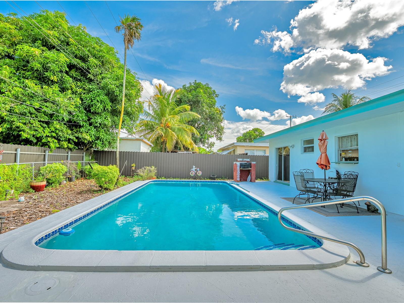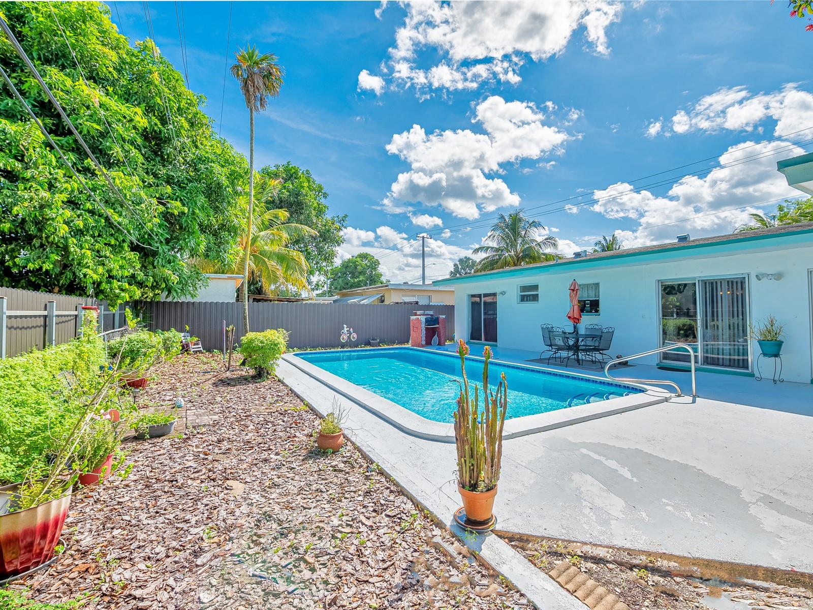 A happy decor of cool & fresh tones welcomes you to this 3/2 family pool home just needing your insight for finishing touches. Kitchen and baths are updated and finished. Home has been well loved and maintained leaving now" happy empty nesters" to move forward leaving this much loved home to your family. Pool area is fun overload, ready for you to make memories. Kitchen pass thru onto patio for pool parties, cabana baths exit from master bedroom onto pool patio. Newer neutral wood like tile throughout home with lament in master bedroom, cabana doors lead onto newly painted patio deck. Colorful Fire bush tree and your own secret garden awaits. "Better than New, Solid as a Rock"