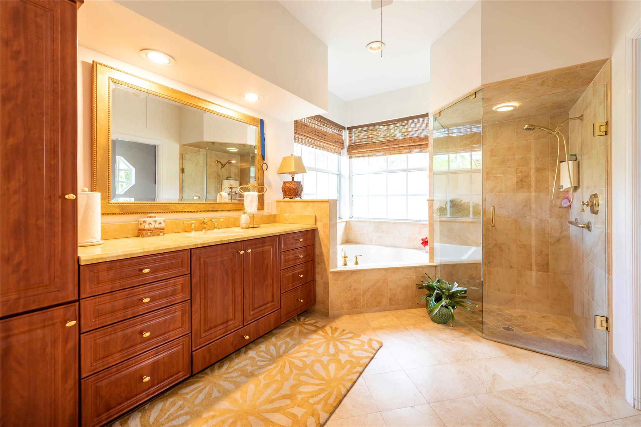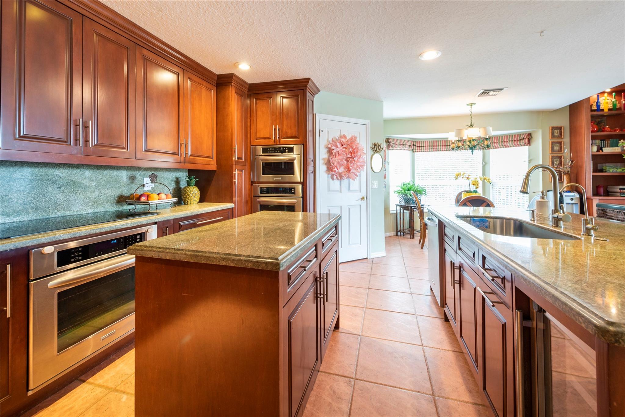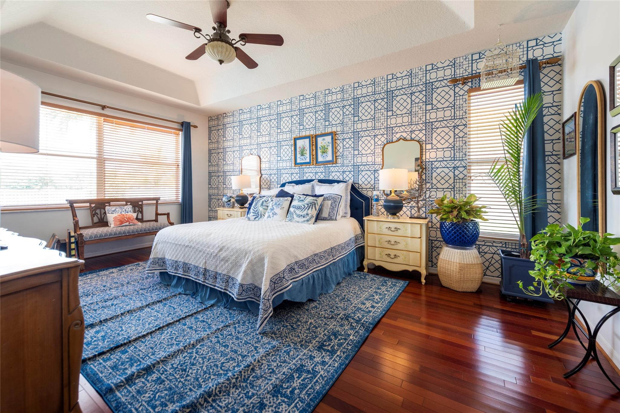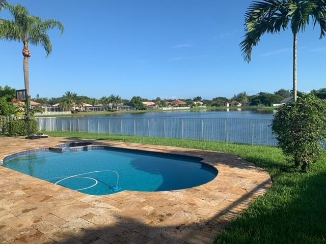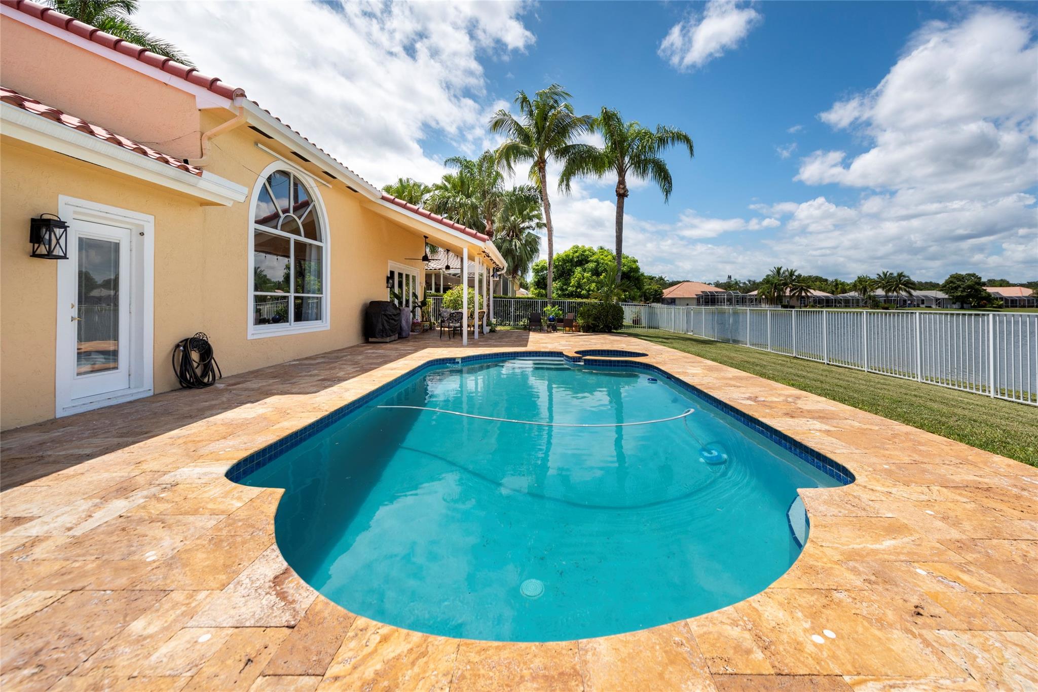 Beautiful 2-story lakefront home WITH PRIMARY BEDROOM SUITE DOWN...NEW ROOF IN 2023. This 5-bedroom, 4-bath, 3-car, Catalina model is rarely available. Large family & living rooms. Stunning, upgraded hardwood kitchen, stainless appliances w/double ovens, granite countertops & cooking island highlight this chef's delight. An executive office (or additional bed) downstairs & a full cabana bath adds versatility to this wonderful model. The split-level upstairs features 3 additional bedrooms, 2 more full baths & a study-loft, making for a perfect kid's retreat. All this coupled with an expansive fenced backyard & lakeside pool/spa. Premium gated community with all "A" schools.