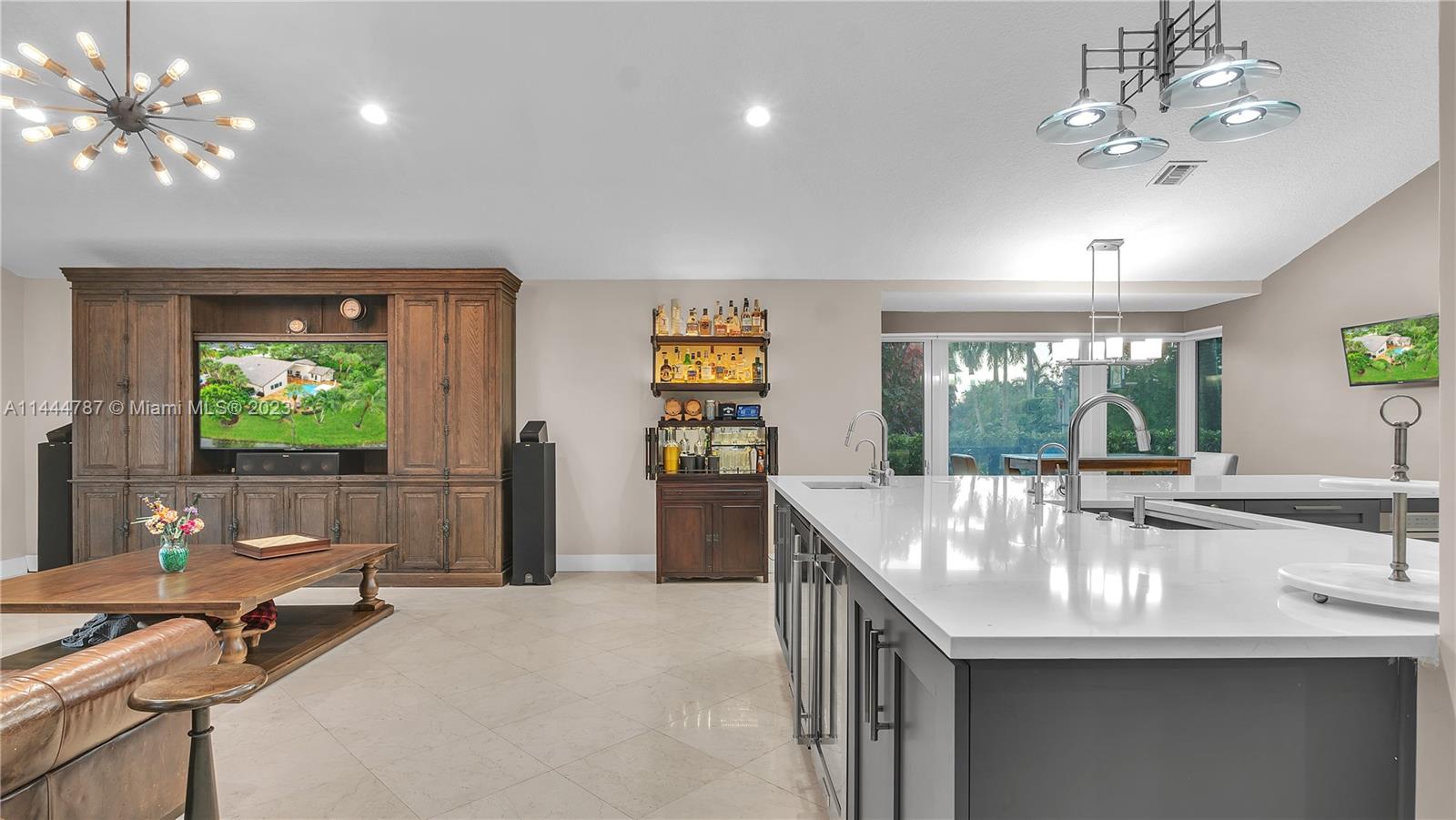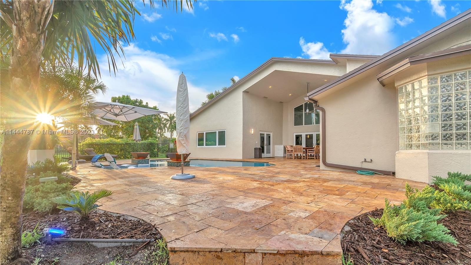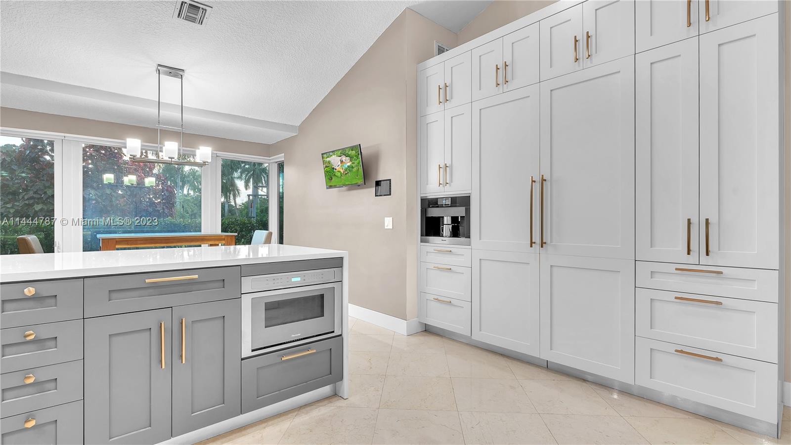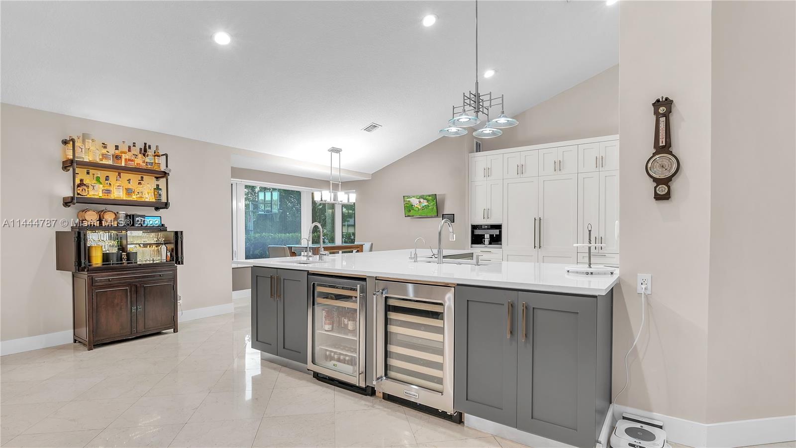 Whispering Pines Stunning Contemporary 5-bedroom/3.5 bath home overlooking a lake on a Builders Acre. This is an Entertainer's Dream! Immaculate home features lush landscaping & outdoor paradise. RESORT style POOL w/heater. AMAZING NEW OUTDOOR Kitchen w/icemaker, refrigerator, warming drawer and more!. UPDATED GOURMET KITCHEN w/quartz counters & marble backsplash featuring THERMADOR Appliances, Miele built-in coffee machine. IMPACT WINDOWS. Marble floors in the main living areas & Hardwood floors in the Bedrooms. OVERSIZE Primary BR overlooking the pool. Ensuite w/ dual vanities & spa-like bath, His & Her walk-in closets. One BR converted to a home gym with 16' RockClimbing Wall! Split plan for one Bedroom with access to full bath. Perfect for Guests! Too many upgrades to mention!