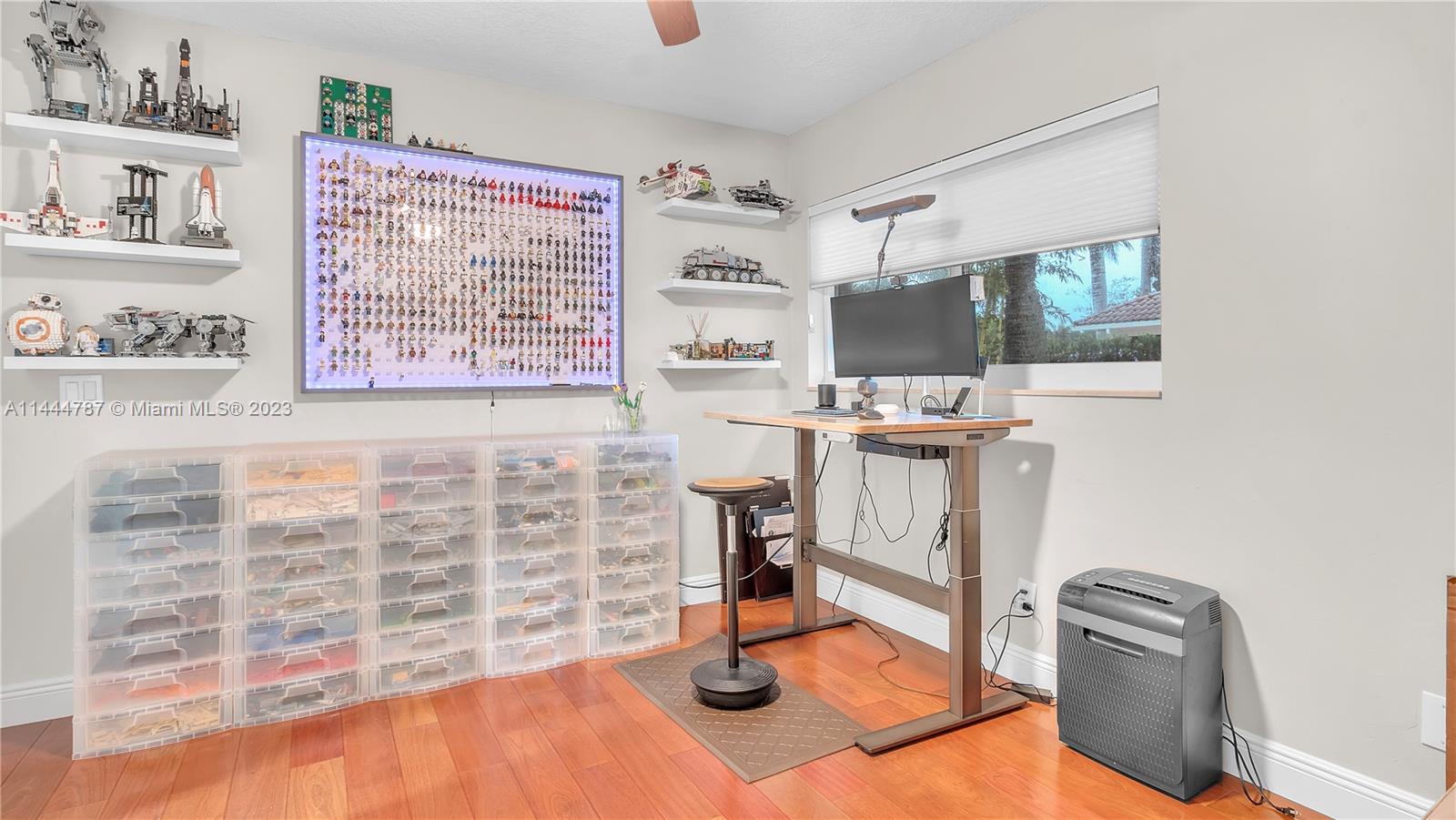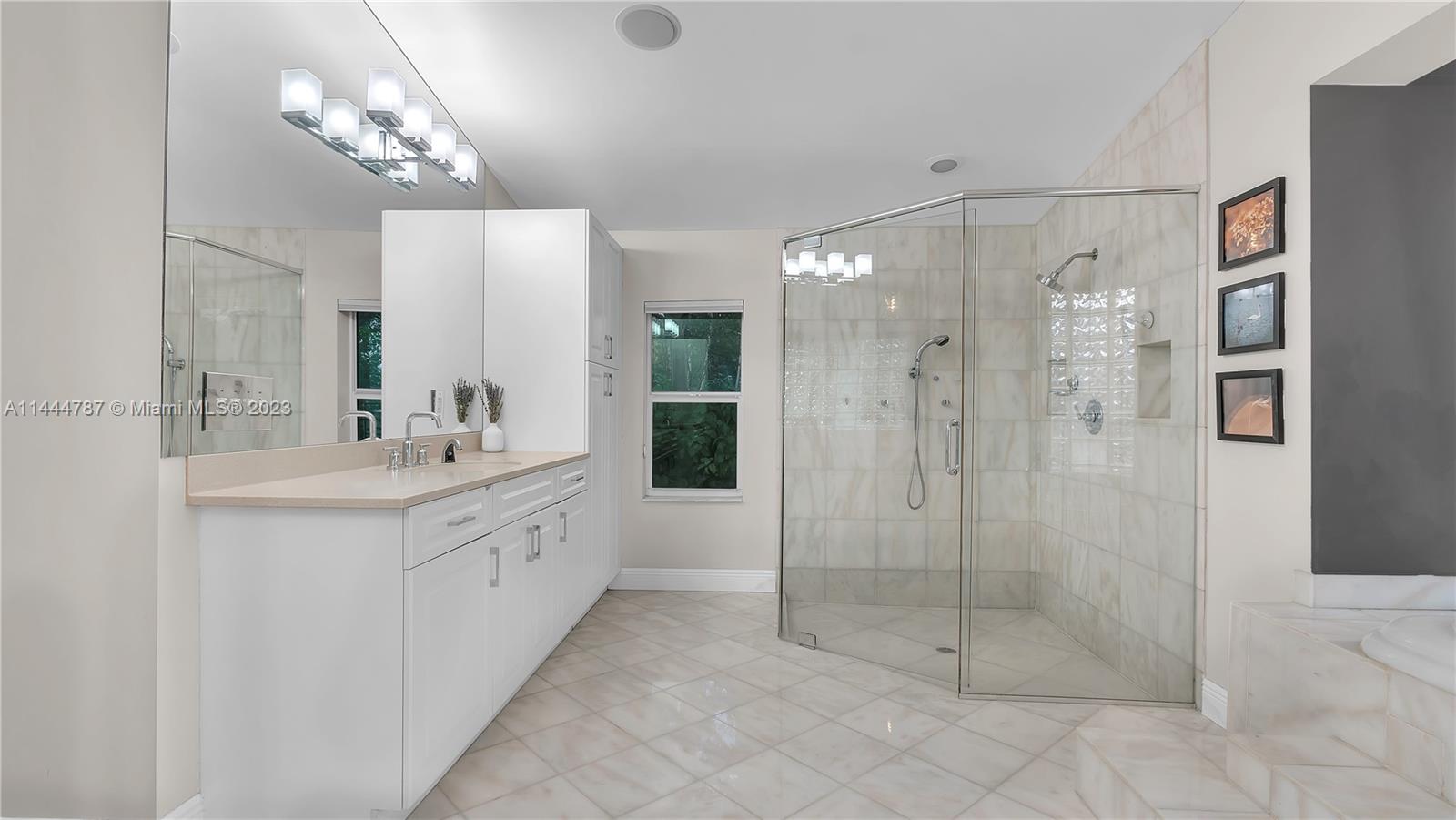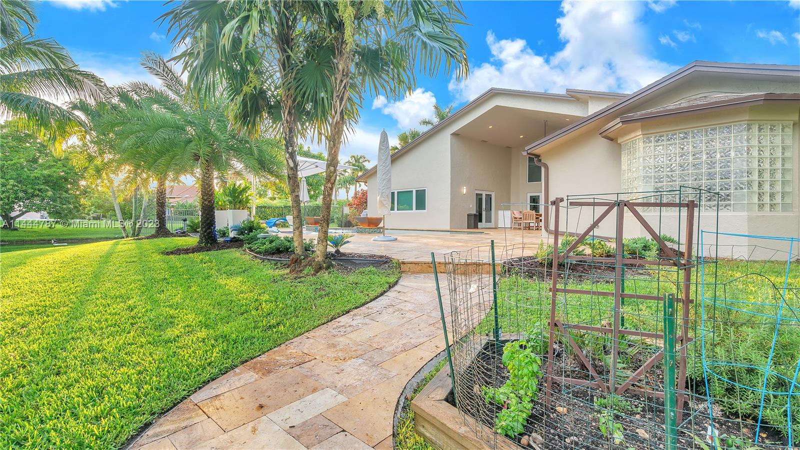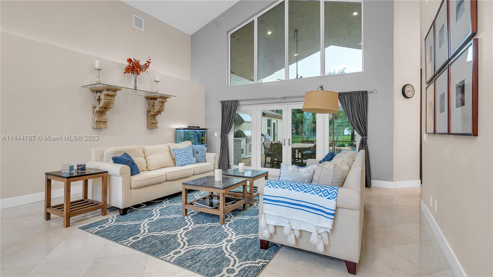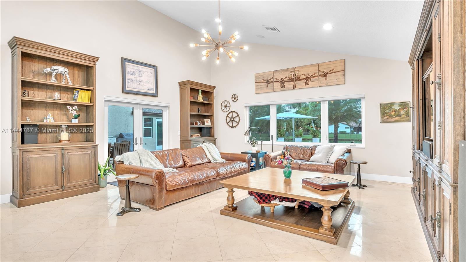 Whispering Pines Stunning Contemporary 5-bedroom/3.5 bath home overlooking a lake on a Builders Acre. This is an Entertainer's Dream! Immaculate home features lush landscaping & outdoor paradise. RESORT style POOL w/heater. AMAZING NEW OUTDOOR Kitchen w/icemaker, refrigerator, warming drawer and more!. UPDATED GOURMET KITCHEN w/quartz counters & marble backsplash featuring THERMADOR Appliances, Miele built-in coffee machine. IMPACT WINDOWS. Marble floors in the main living areas & Hardwood floors in the Bedrooms. OVERSIZE Primary BR overlooking the pool. Ensuite w/ dual vanities & spa-like bath, His & Her walk-in closets. One BR converted to a home gym with 16' RockClimbing Wall! Split plan for one Bedroom with access to full bath. Perfect for Guests! Too many upgrades to mention!