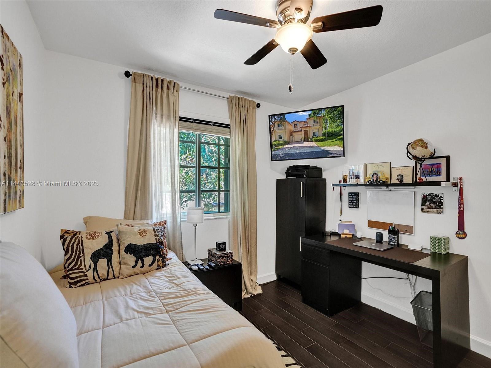 RARELY available 3-bed, 3-bath corner home in the sought-after St. Lucia at Doral, a charming gated community with only 55 residences. This meticulously maintained property offers a fantastic floor plan, including a convenient first-floor bedroom and full bathroom. Enjoy the luxury of new porcelain floors throughout the home's interior and exterior. The kitchen features gorgeous granite countertops, sturdy hardwood cabinets, and stainless steel appliances complemented by a huge pantry. The first floor features a cozy family room, and the second floor has a spacious den for extra flexibility and elegant wood floors. Step outside to an upgraded fenced backyard overlooking a breathtakingly serene lake, perfect for relaxation and entertaining!