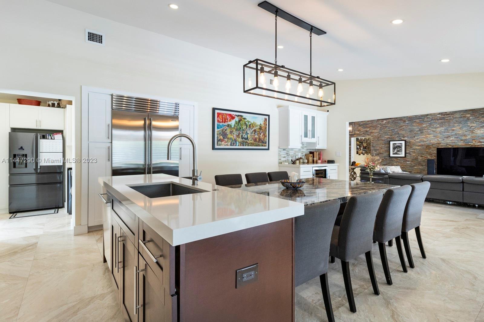 This very special central Pinecrest 4/3 family home is a top-of-the-line remodel with expensive exquisite finishes, excellent taste, and a practical well thought-out floor plan. All work fully permitted and approved and customized within the last 10 years including: metal roof, CGI impact glass windows and doors, marble and porcelain floors, vaulted ceilings in great room, plantation shutters, large laundry room and more. Gorgeous large kitchen w/Wolf & Subzero appliances, Cambria quartz, and tons of cabinetry and storage. Beautiful new bathrooms including a master bathroom fit for the most discerning buyer. Fully rebuilt pool-patio area with special non-slippery Ivory Pearl marble floors (that do not get hot in the sunshine!) and plenty of yard space too. All Pinecrest schools.