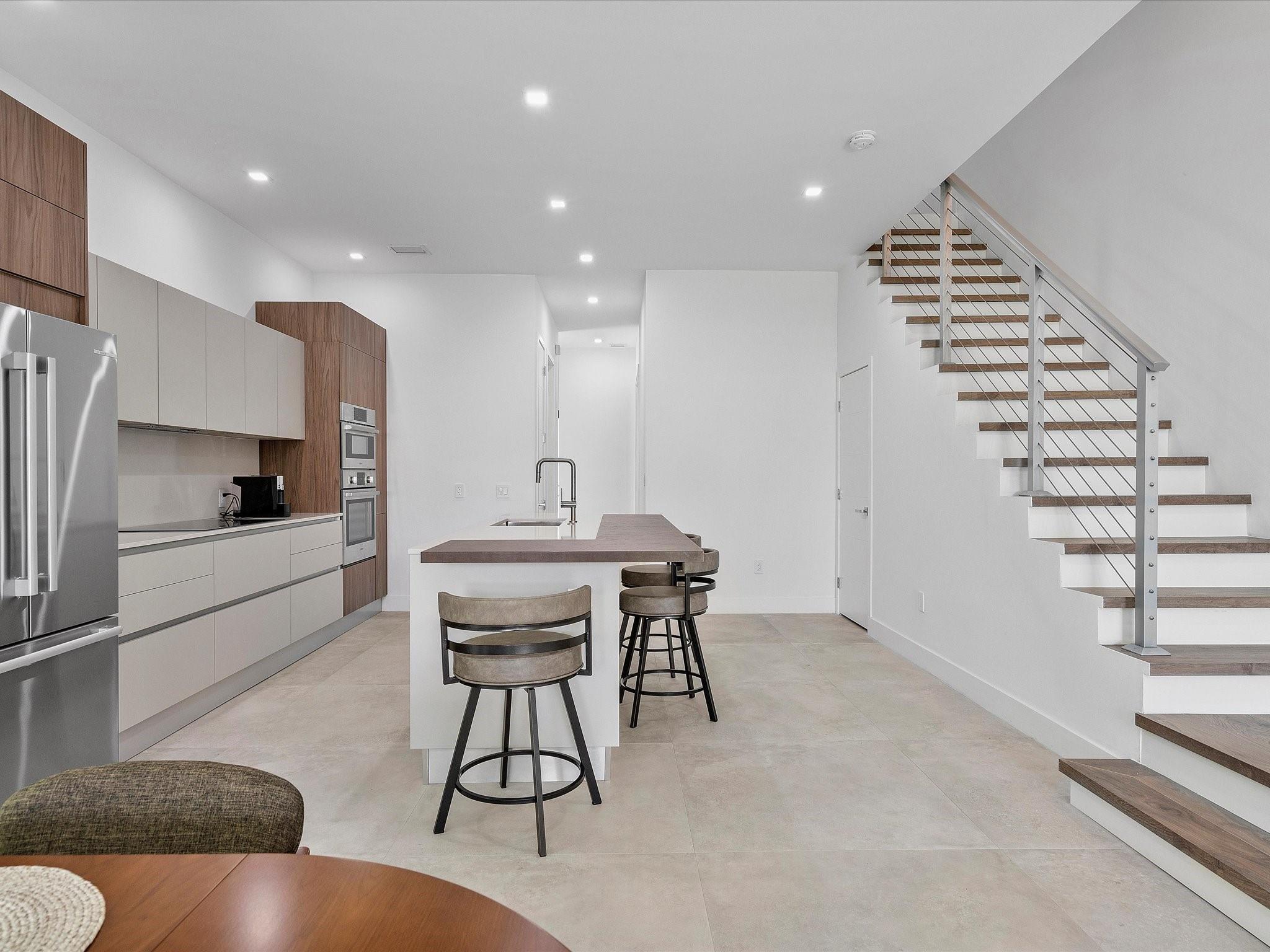 New Construction End-Unit 3 Bedroom 4 Bath Plus Office/Den Townhouse in Tarpon River. Sellers never moved in so everything is brand new! Features ensuite in every bedroom, rectified porcelain tile, open floor plan & full bath on the 1st level. The kitchen is custom designed by Scavolini w/quartz countertops, Bosch appliances & pantry. Primary Suite has room for a seating area, a large covered patio & two closets. Each bathroom has floating cabinets & rainfall showers tiled to the ceiling. Enjoy the outdoors on one of the balconies, covered patio or spacious backyard that has room for a pool. Tarpon River, named one of Florida's Best Neighborhoods with restaurants, coffee shops & lots of parks. Here you're only minutes to the beach, Las Olas, Downtown, the airport shopping & more! No HOA