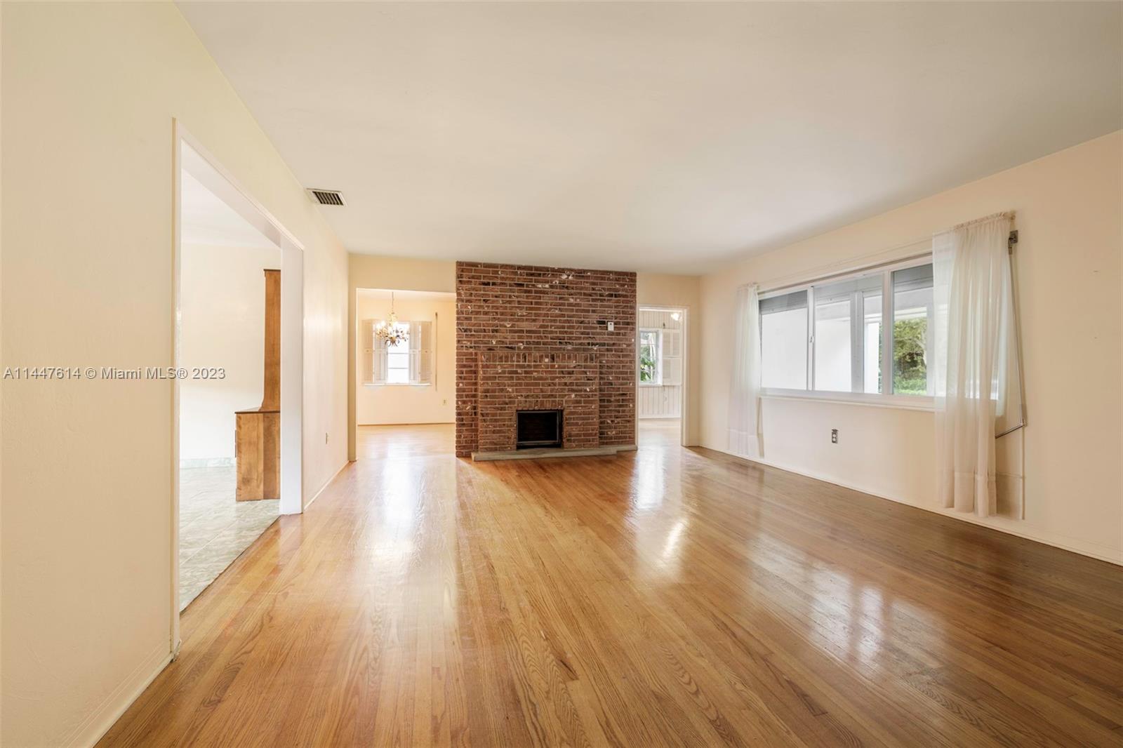 Lovely mid-century home on a quiet, tree-lined street in Miami Shores- a lush residential neighborhood just minutes north of Downtown Miami. Light-filled living spaces feature wood & Cuban tile flooring. Spacious formal living with brick fireplace + formal dining and family rooms. Additional home features include: large kitchen/ w snack bar, laundry room, 1 car garage + 2 car carport & complete storm protection (impact + shutters). Expansive, fenced back yard (8625 SF lot) with wood deck, ideal for outdoor living & dining. Ample room to expand or add a pool. Walking distance to shopping & dining in the Miami Shores Village district with quaint churches, library & tranquil parks.