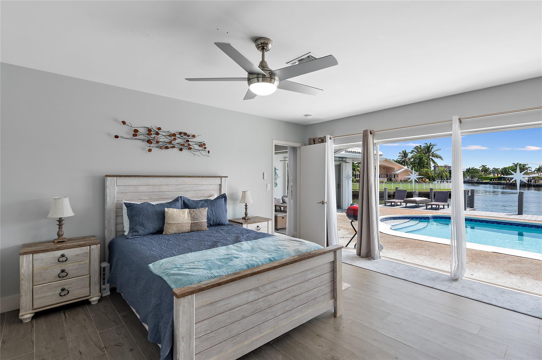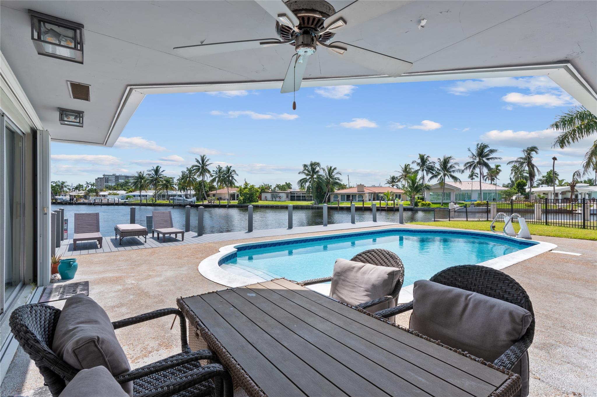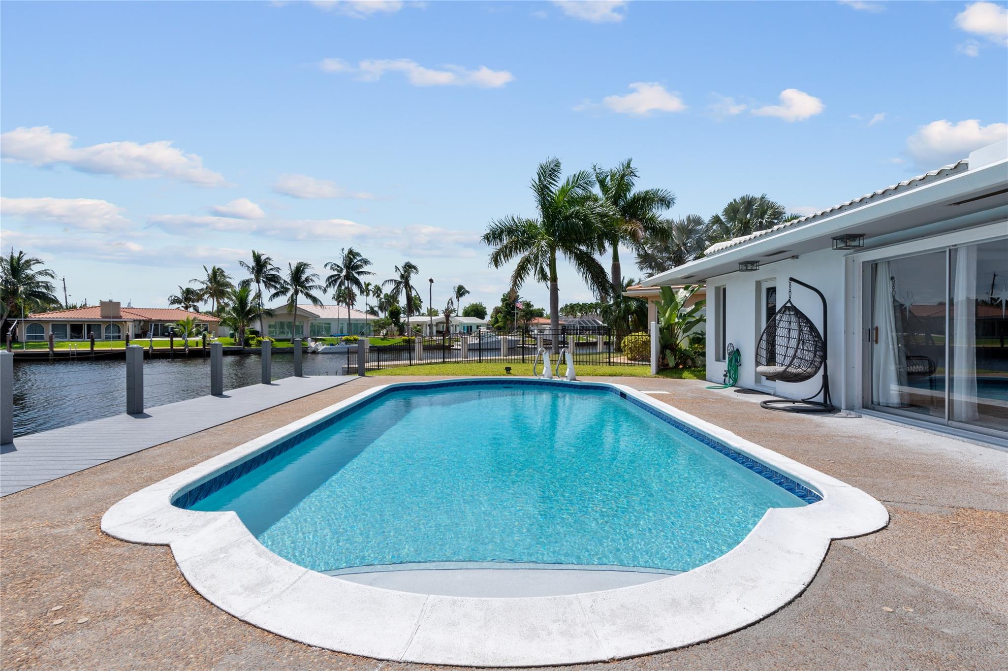 Beautifully updated 3 bedroom, 3 full bathroom waterfront pool home with a 2 car garage located on a wide canal in Cypress Lake Estates. Enjoy 110 feet of waterfrontage with a serene wide water view. This home features an open modern kitchen with quartz countertops, white cabinets, and stainless steel appliances. Roof was replaced in 2020. Electrical, plumbing and AC have all been updated. Newer tile flooring thoughout, bathrooms have been updated with new tile, vanities, lighting and fixtures. Spacious backyard with plenty of green space around the pool area, perfect for entertaining. This home is located on a cul de sac. One fixed bridge at Federal Highway.