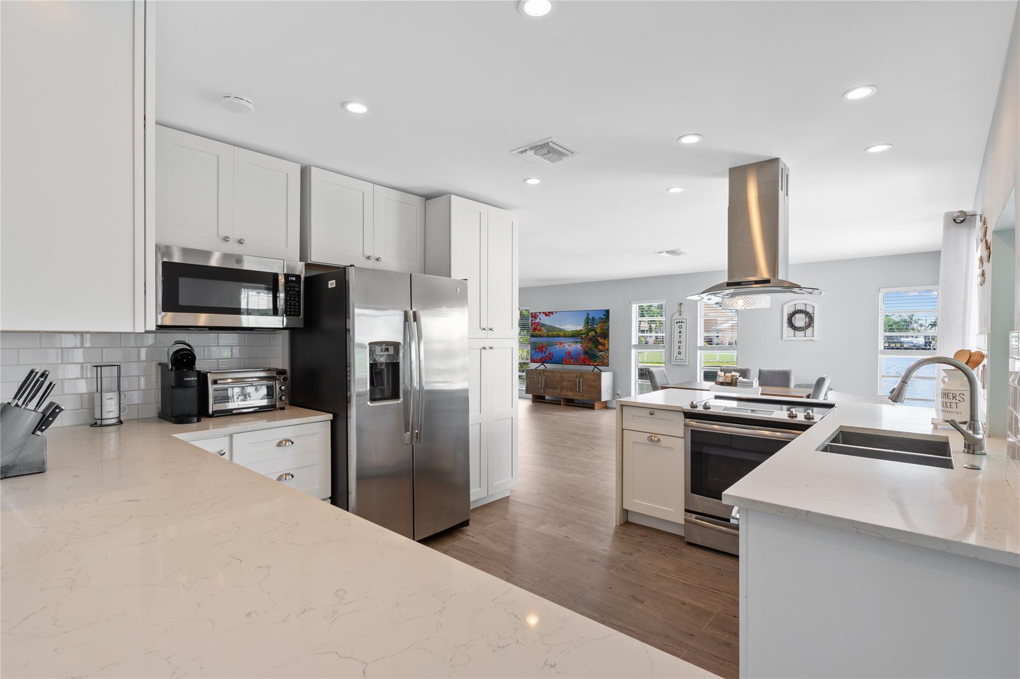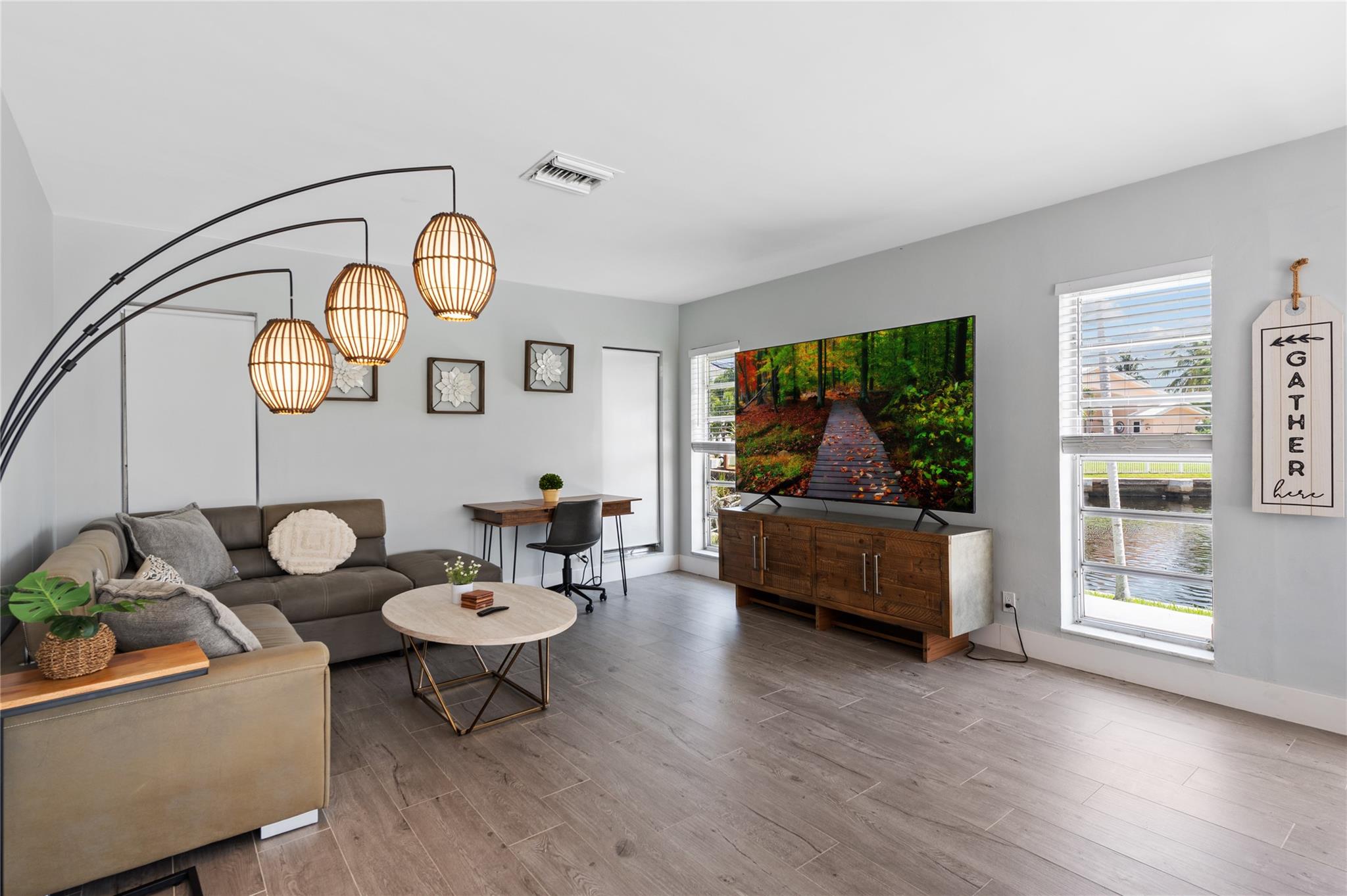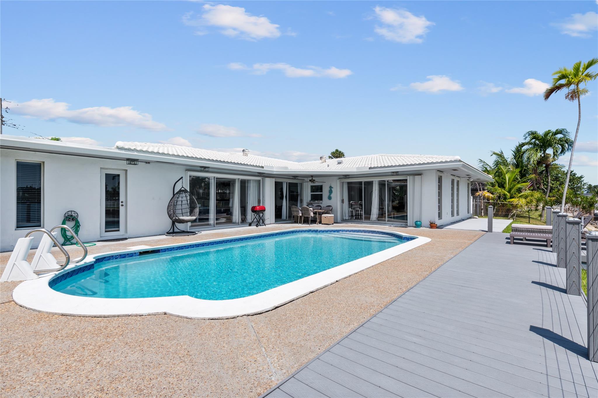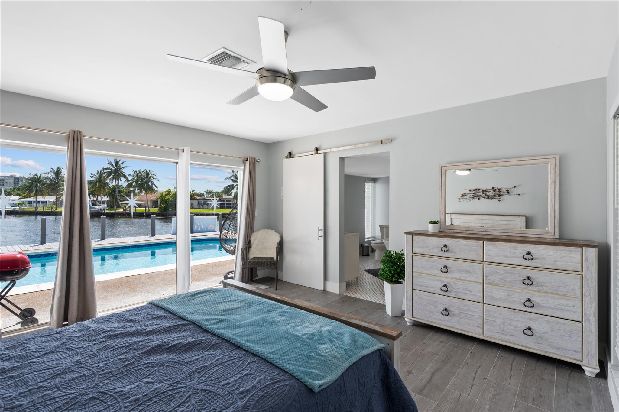 Beautifully updated 3 bedroom, 3 full bathroom waterfront pool home with a 2 car garage located on a wide canal in Cypress Lake Estates. Enjoy 110 feet of waterfrontage with a serene wide water view. This home features an open modern kitchen with quartz countertops, white cabinets, and stainless steel appliances. Roof was replaced in 2020. Electrical, plumbing and AC have all been updated. Newer tile flooring thoughout, bathrooms have been updated with new tile, vanities, lighting and fixtures. Spacious backyard with plenty of green space around the pool area, perfect for entertaining. This home is located on a cul de sac. One fixed bridge at Federal Highway.