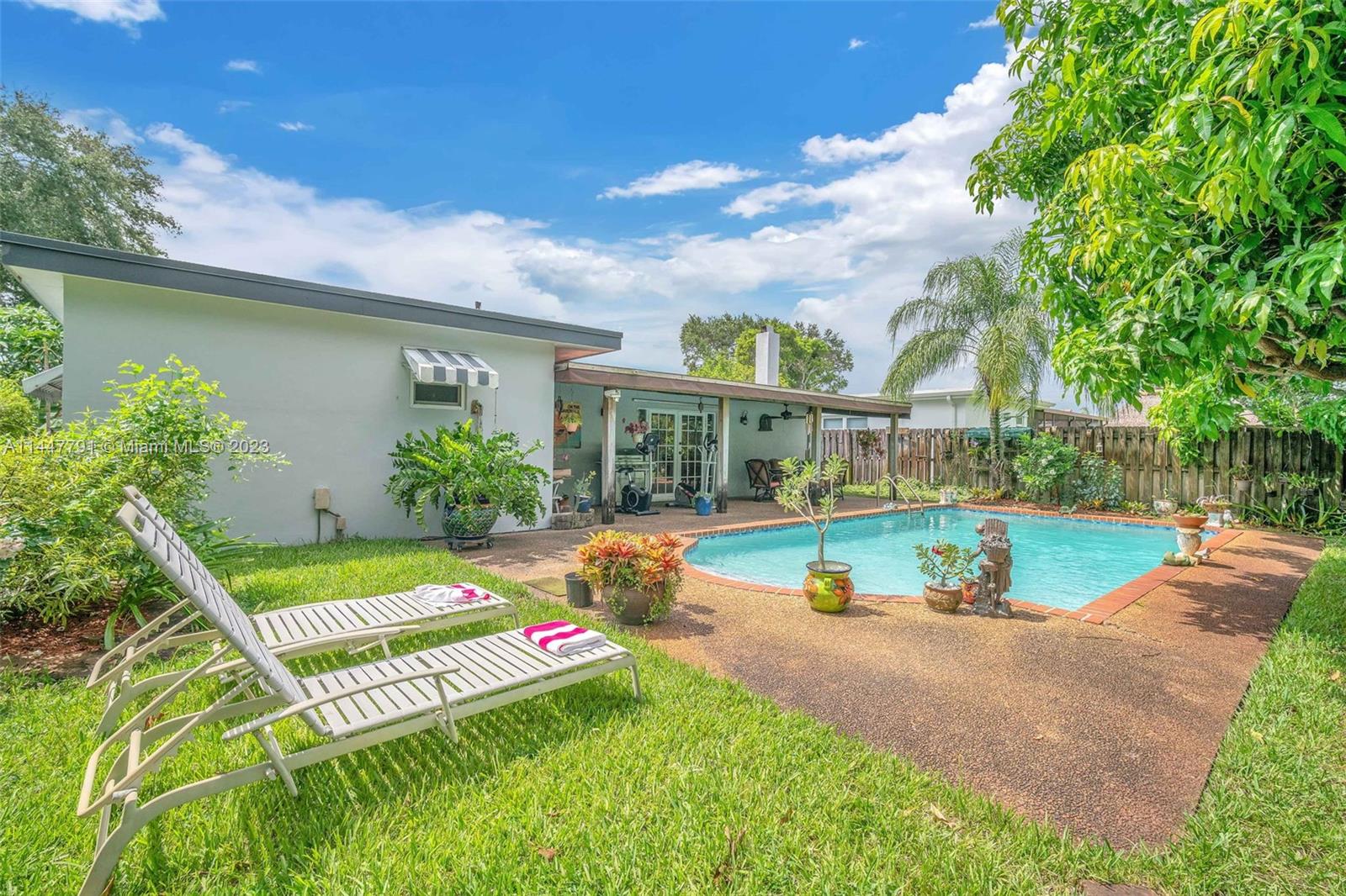 This gorgeous home is located in the desirable Hollywood Hills, offering three bedrooms, two bathrooms, a family room, NEW CENTRAL AIR (2024), and a spacious 328 SQFT great room with a working fireplace. The kitchen has been recently updated with beautiful white cabinets, granite countertops, and stainless steel appliances, providing a modern and sleek look. Additional features include a laundry-utility room, over 250 SQFT of covered patio, privacy fence, and two-car garage. The home has impact windows and a tile roof, making it storm-ready. The location is very convenient, within walking distance of schools, shops, and restaurants. You will be just minutes away from the beach and Hard Rock Hotel. This home is perfect for a buyer who appreciates spaciousness, comfort, and modern amenities.
