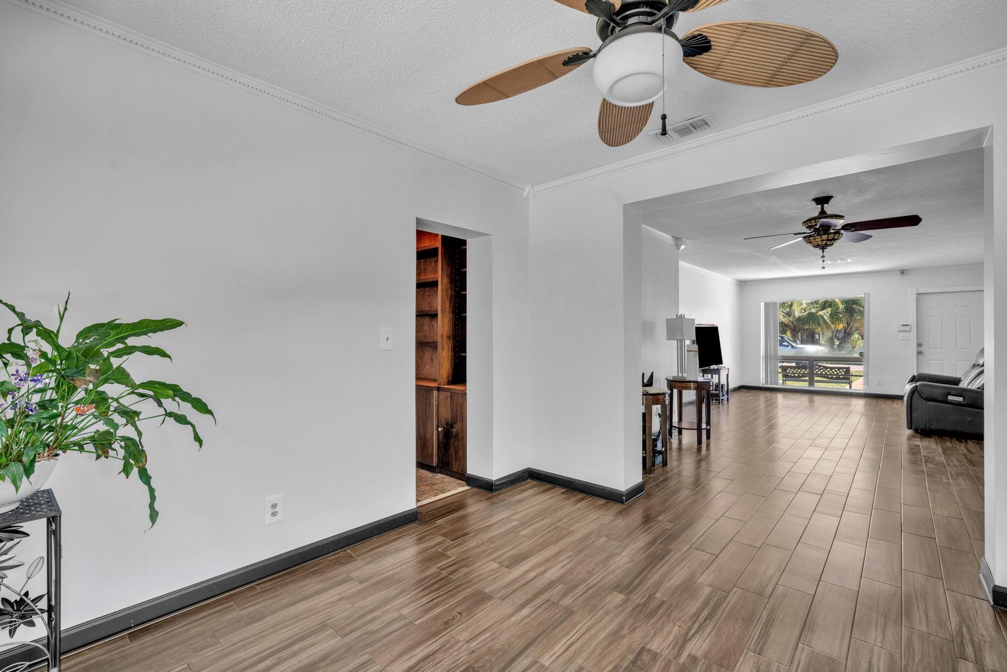 Bright floor plan with spacious living room, dining room that all opens to the eat-in kitchen w/ stainless steel appliances. Entertain from the kitchen or den that overlook the covered porch while your pets run around in backyard with room for a pool & guests enjoy themselves in the open floor plan. Relax & enjoy a glass of wine under the shade and the privacy of your fence backyard and extended patio. both bathrooms redone in 2015, tile floor and laminated throughout. Accordion shutters. No aluminum wire, newer wire through home. NO HOA ready for your family or potential Airbnb/Vrbo investment. Centrally located puts you minutes to Hard Rock Hotel/Casino, publix, I-95, TY City Park & major shopping & restaurant plazas off the amazing Hollywood Hills! 15 min from the beach*VA/FHA approved*