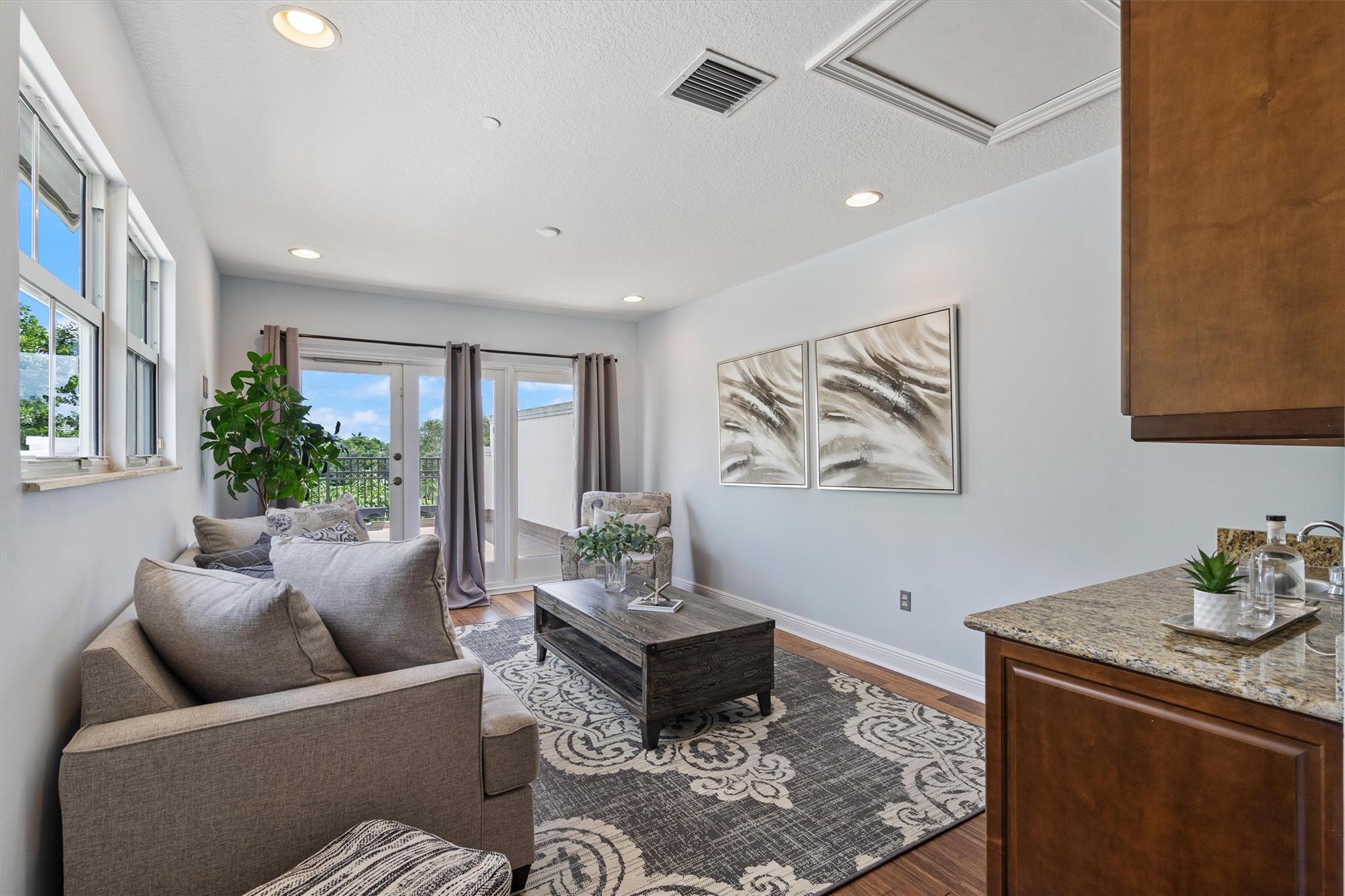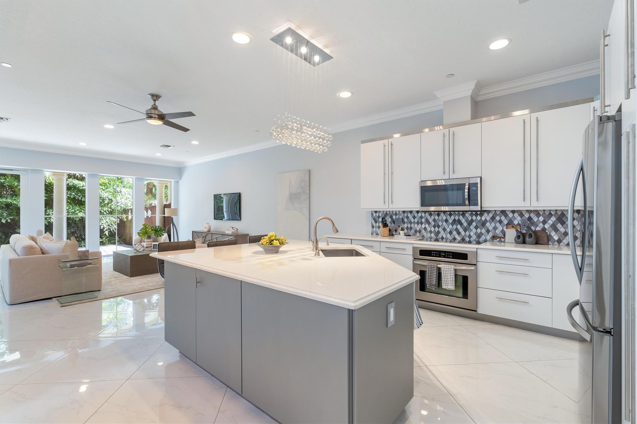 Immaculate 3500 sq ft townhome tucked within the Coral Ridge community/Bayview School District. Modern, renovated kitchen w/clean lines, SS appliances, white cabinetry, oversized island w/quartz counter seating + storage. Sunlit end unit w/hurricane impact windows/doors. Tri-level design w/private elevator. Spacious Primary suite w/private balcony, expansive walk-in closet, updated bath w/dual sinks, frameless shower enclosure. Second floor includes additional en suite bedroom w/walk-in, laundry room + office/loft. Cozy, third floor bed/bath plus loft/media room/office. Catch the sunrise from your east-facing rooftop terrace or dine al fresco on the ground level private patio. Driveway parking for up 4 cars + 2CG. One mile from Ft. Laud Beach. Minutes from dining, fitness, shopping + park.
