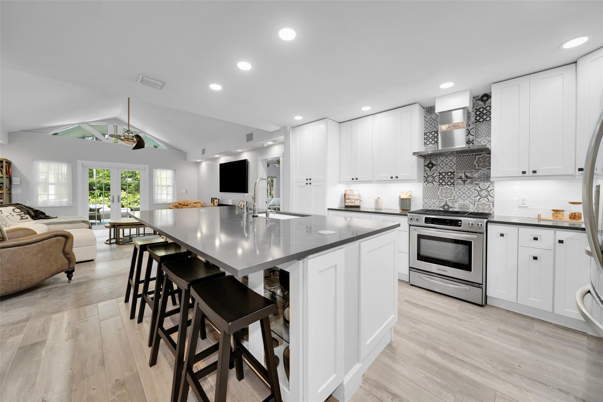 Key West meets Victoria Park!! Feel the character the second you step on the property. Set behind lush tropical landscaping sits this expanded and restored beauty with a gorgeous family room off a new gourmet kitchen with high end appliances and quartz counters, high ceilings, French doors, large master with a big, beautiful bath with steam shower and a custom heated freeform pool with attached spa set in tropical privacy bordered by an abundance of gorgeous mature plantings. New roof, all impact windows and doors, set on a corner lot in a great single family location…walk everywhere!!! Close to everywhere you want to be. Come see!!