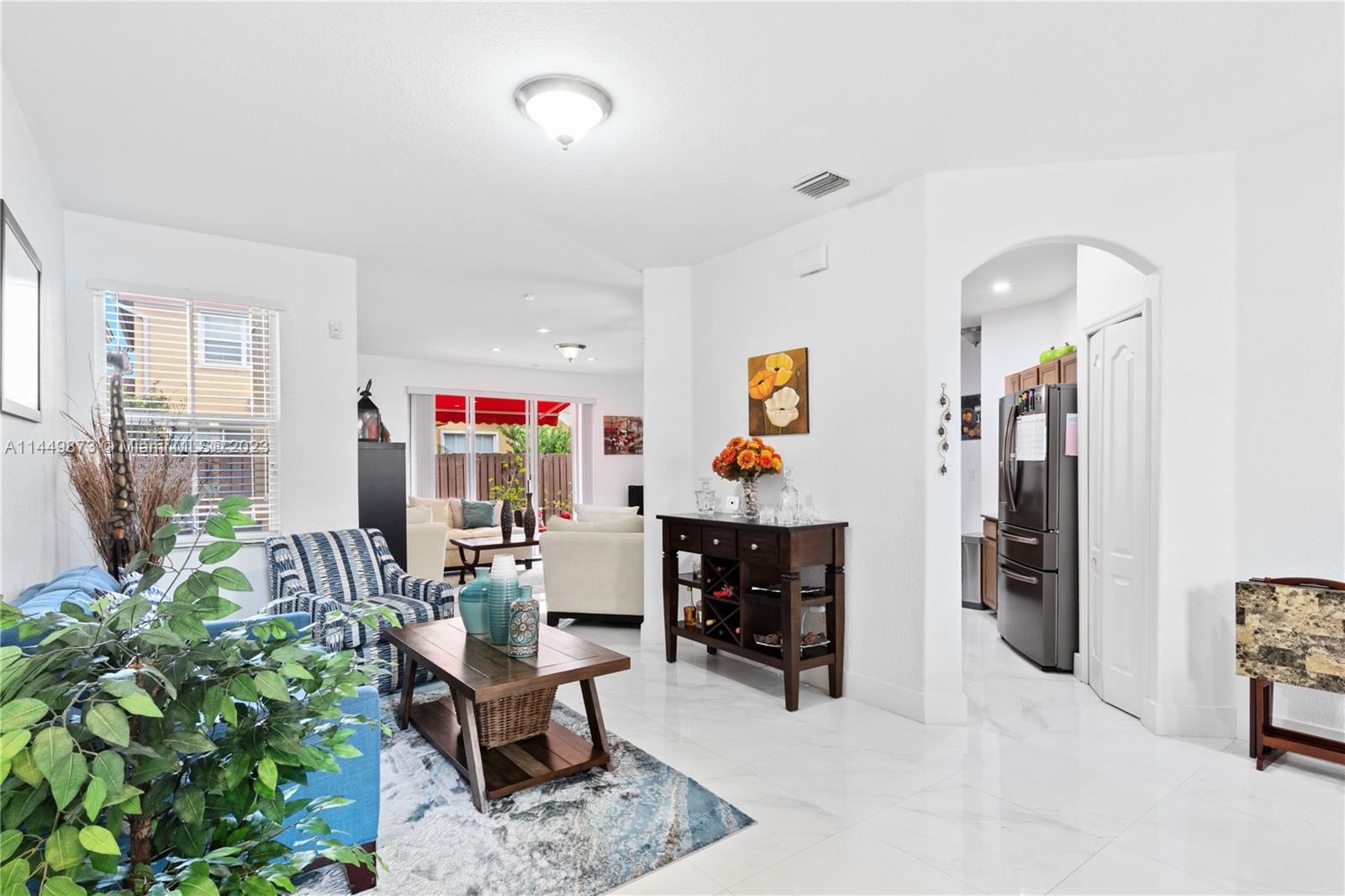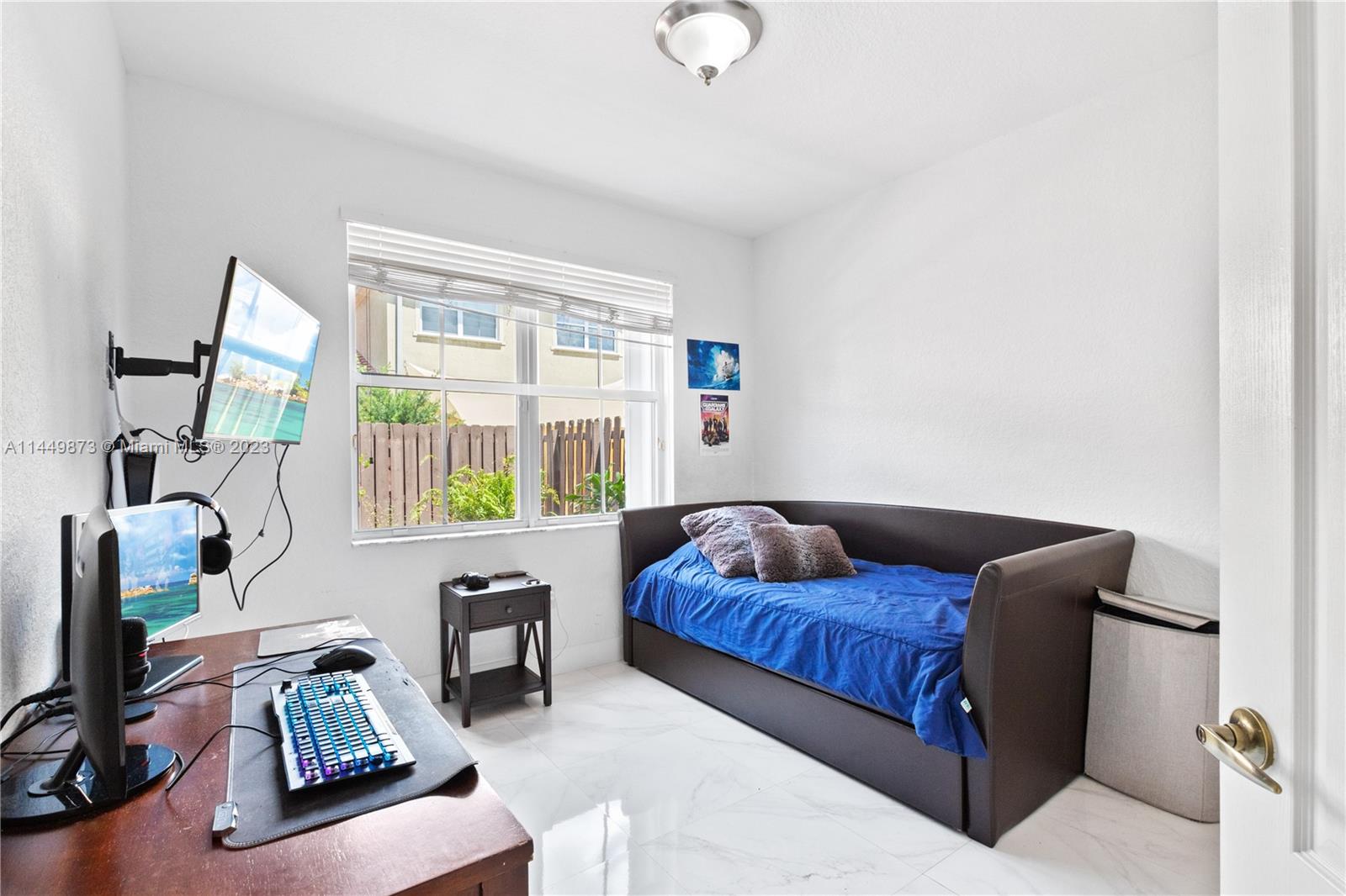 This modern townhome offers 4 bedrooms, 3 baths, with a convenient 1 bedroom and bath on the first floor. The property features elegant porcelanato flooring throughout and a beautiful kitchen with granite counters and a new refrigerator, Comfortable bedrooms, built-in closets for ample storage, laundry room, 2 car garage, patio, accordion shutters. This community offers a range of amenities, including a pool and gym. Plus, it's located in a top-rated school district, making it ideal for families.
