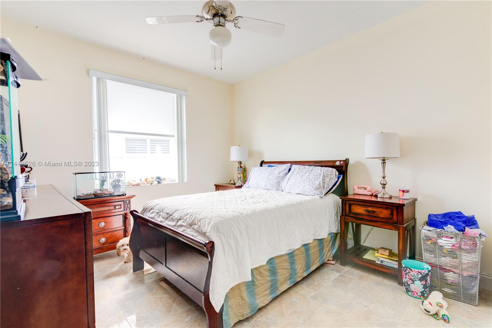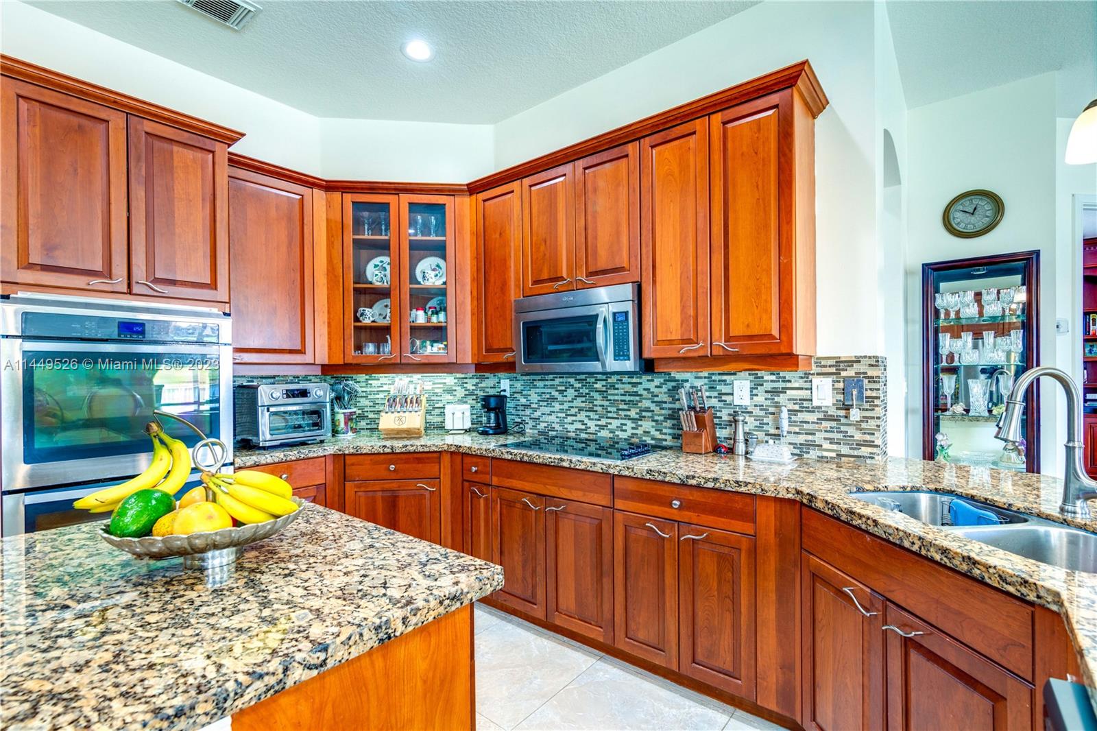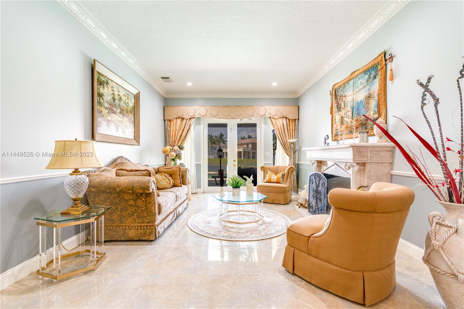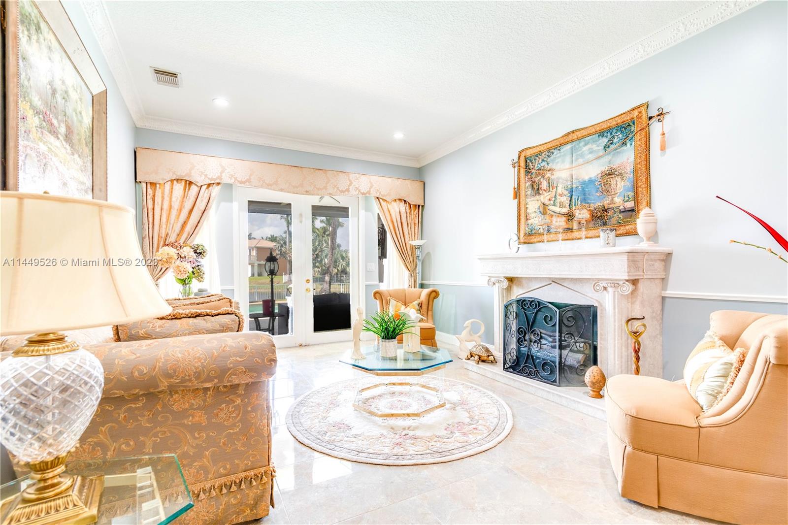 Amazing 4 Bed/3 Bath home located in the gated community of Windsor Palms. Enjoy beautiful lake views, heated swimming pool in a fenced backyard with 2 mango trees. One of the baths is connected to the pool patio. Primary Bath has dual vanities and sinks, bidet, separate tub and shower. This home includes a full house generator, solar panels to heat the pool and home theater system installed in family room. One room converted into home office with floor to ceiling wood bookcase. Stainless steel kitchen appliances (double oven) and granite counter tops, ceramic tile through out the home. 3 car garage, the doors replaced in 2023, Accordion shutters, Electric Porch Awning, Water Heater in 2020, Plumbing replaced in the home 2022.