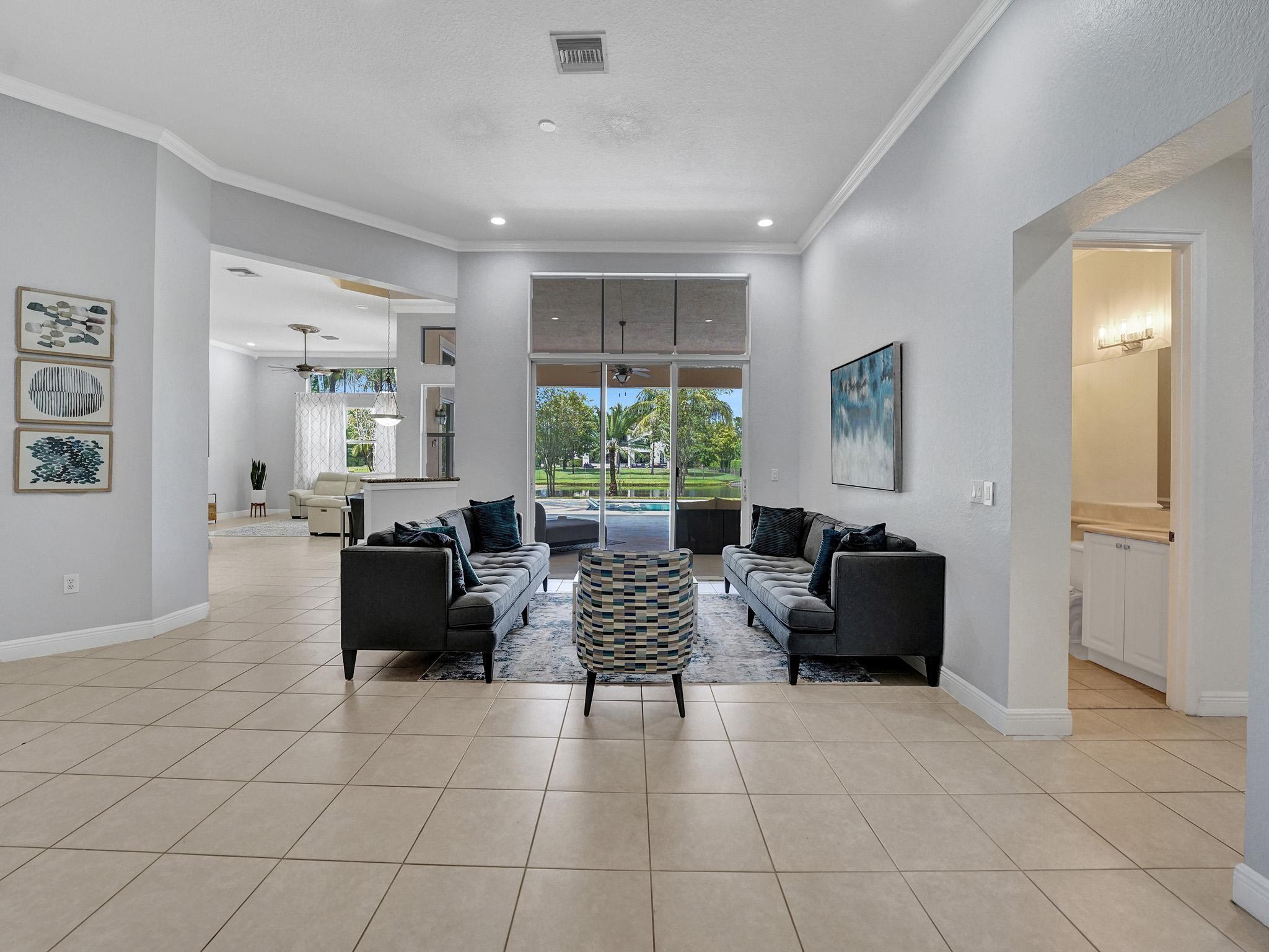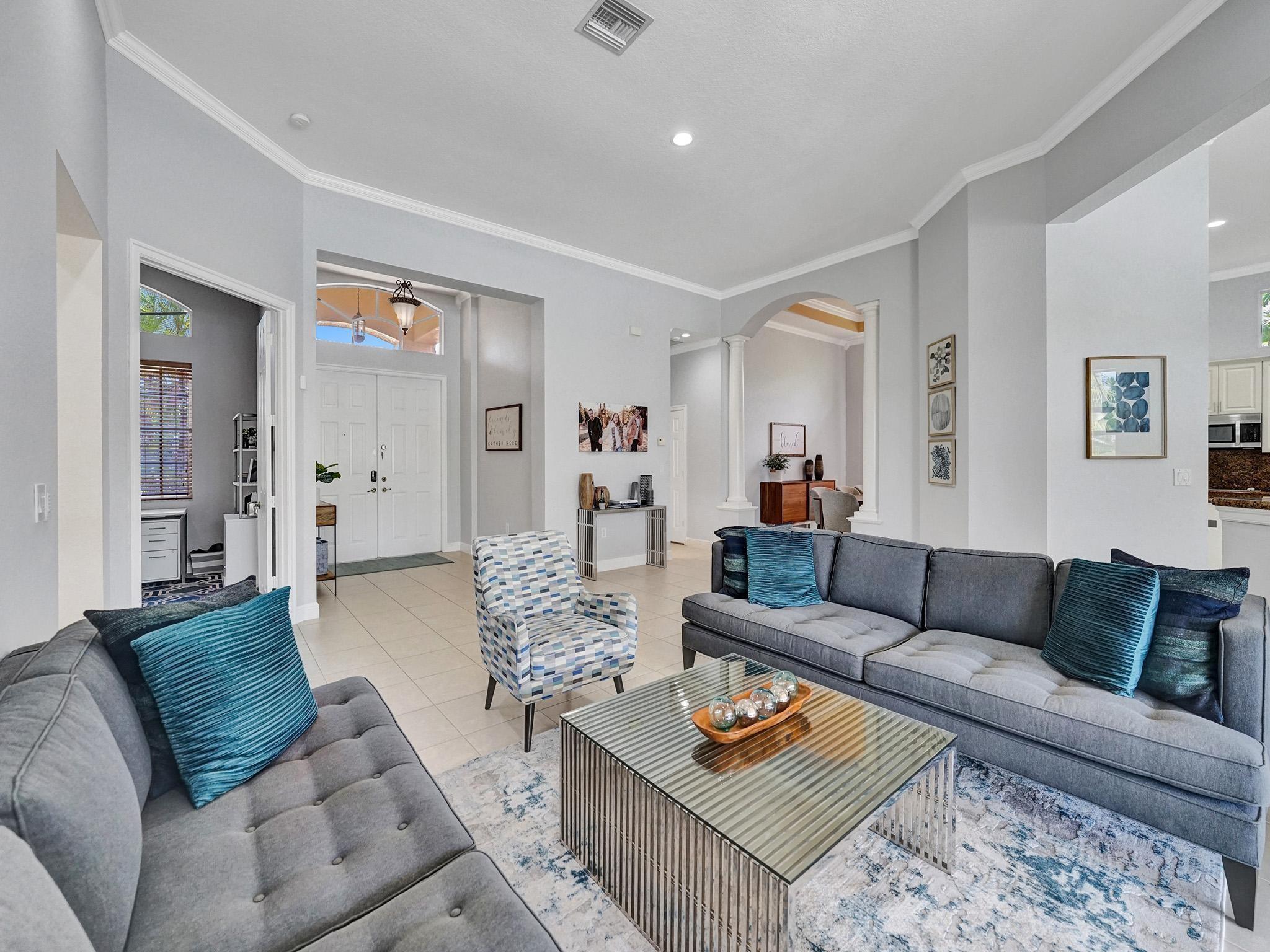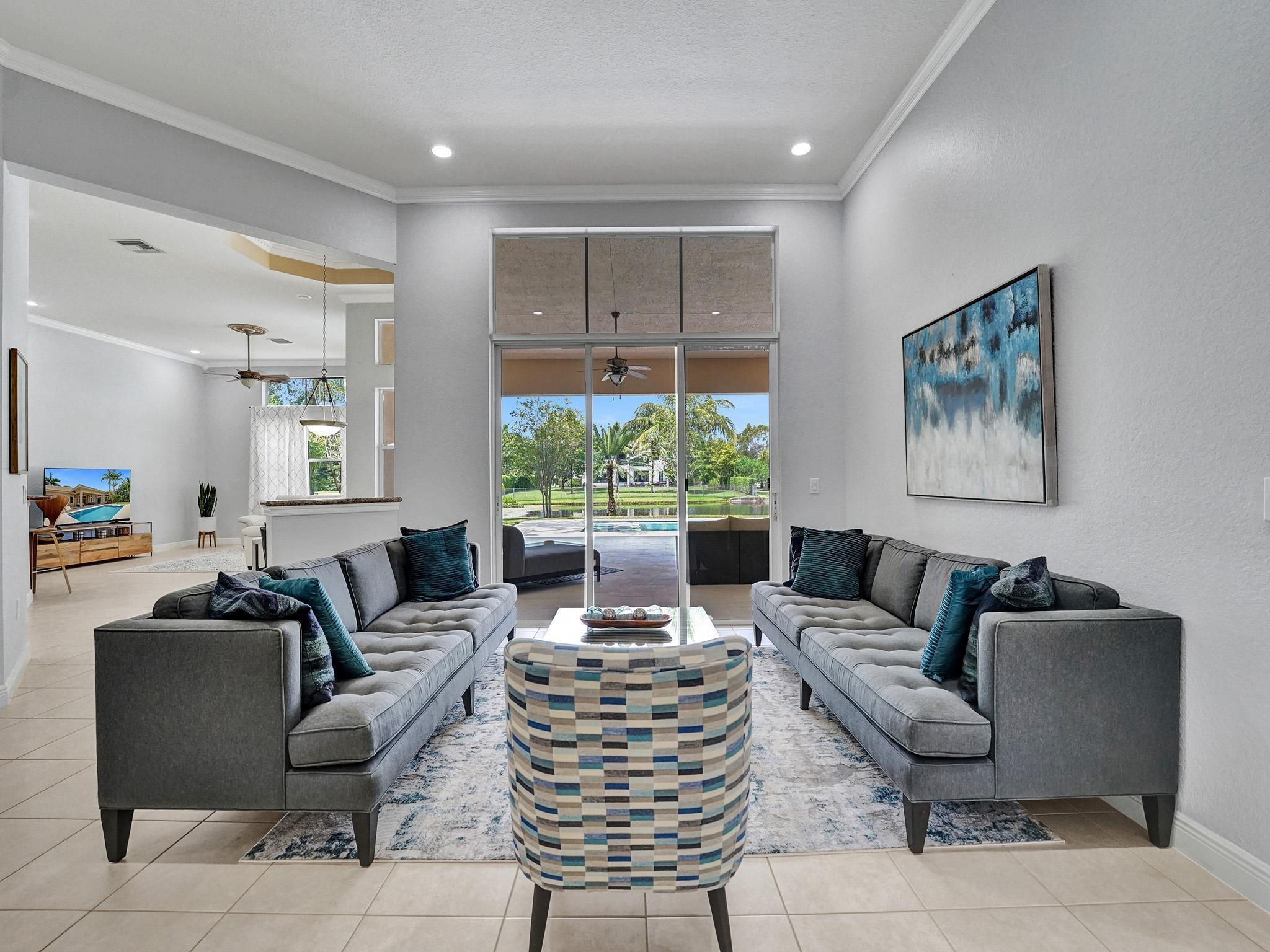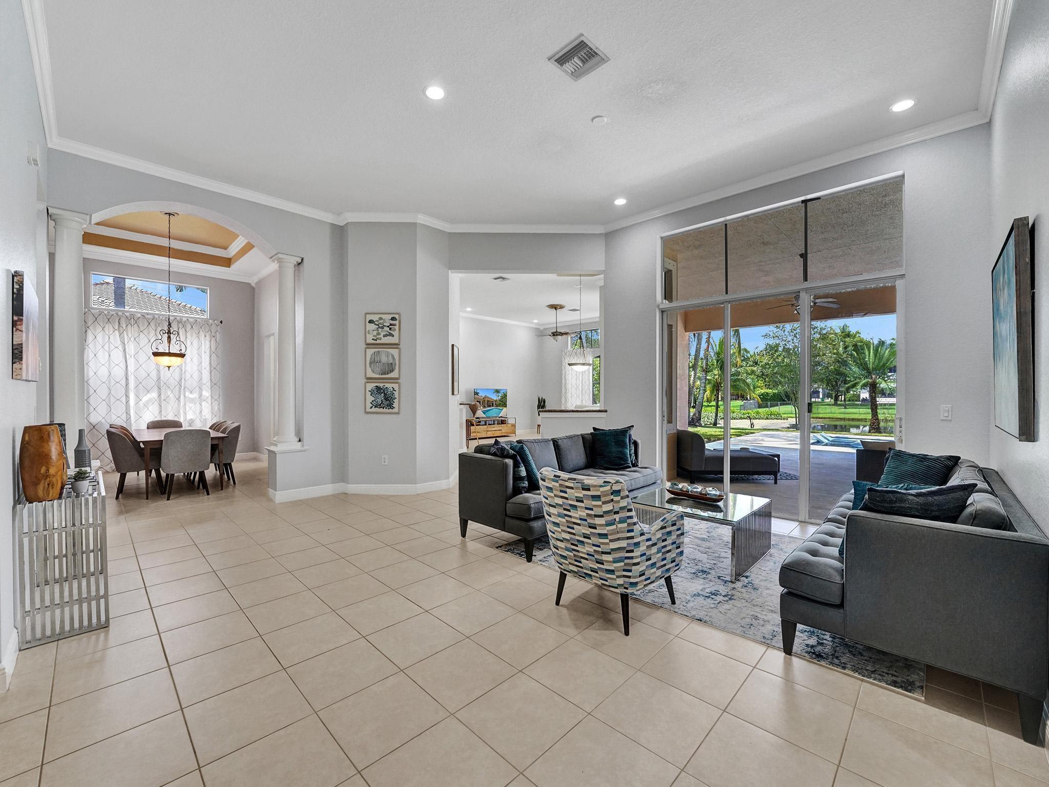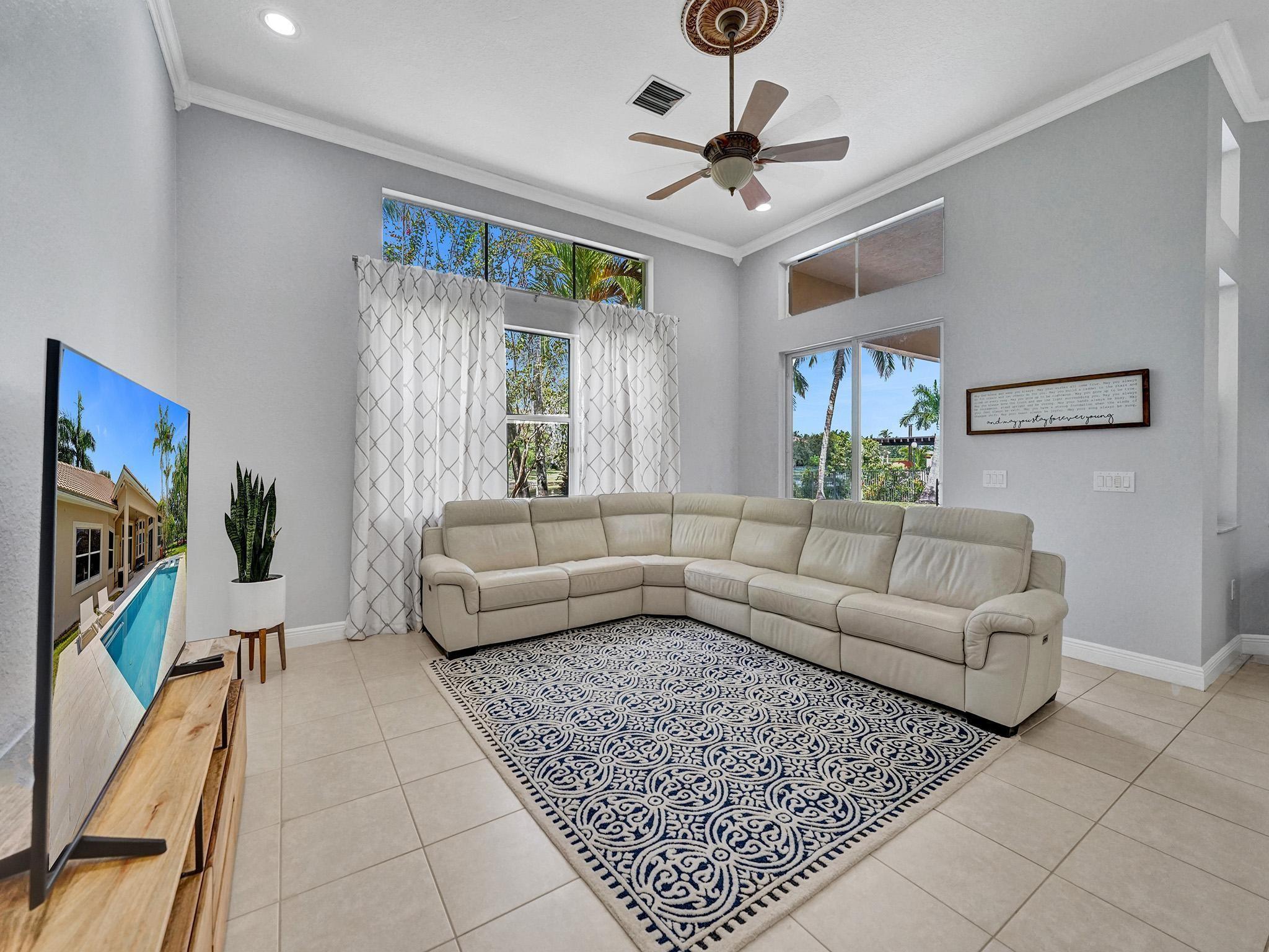 This fantastic 4000 square foot, 3 bedroom, 3 bathroom home with an office/den is a rare find in the highly sought-after gated community of Riverstone. The office can easily be used as a 4th bedroom and the home is on an almost 30,000 square foot lot! It features high ceilings, an open floor plan, a new salt water pool, tile and wood flooring throughout, AC done in 2015 and 2021, a large formal dining room, and a new sprinkler system in 2021. The community also has tennis courts, basketball courts, sidewalks, and playgrounds. It is located with quick access to highways with plenty of shopping and entertainment! Large home on a large lot is becoming challenging to find in Broward. Don't miss your opportunity to live in this incredible community!
