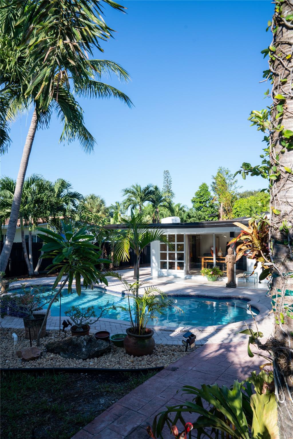 Welcome to the pinnacle of South Florida living! This 3-bedroom, 2-bathroom home, nestled in one of Broward County's most desirable neighborhoods, embodies modern elegance and relaxation. The heart of the house is the stylish kitchen, featuring a generous center island with seating for 6-7 guests, ideal for family gatherings and entertaining friends. Outside, your private tropical paradise awaits, complete with a sparkling courtyard pool and tranquil waterfall, surrounded by lush garden greenery. Both bathrooms have been meticulously updated and fully remodeled, offering contemporary style and comfort. This property epitomizes the South Florida lifestyle, providing a secluded haven for entertaining and unwinding. Your own Tropical Oasis located a stone's throw away from Wilton Manors!