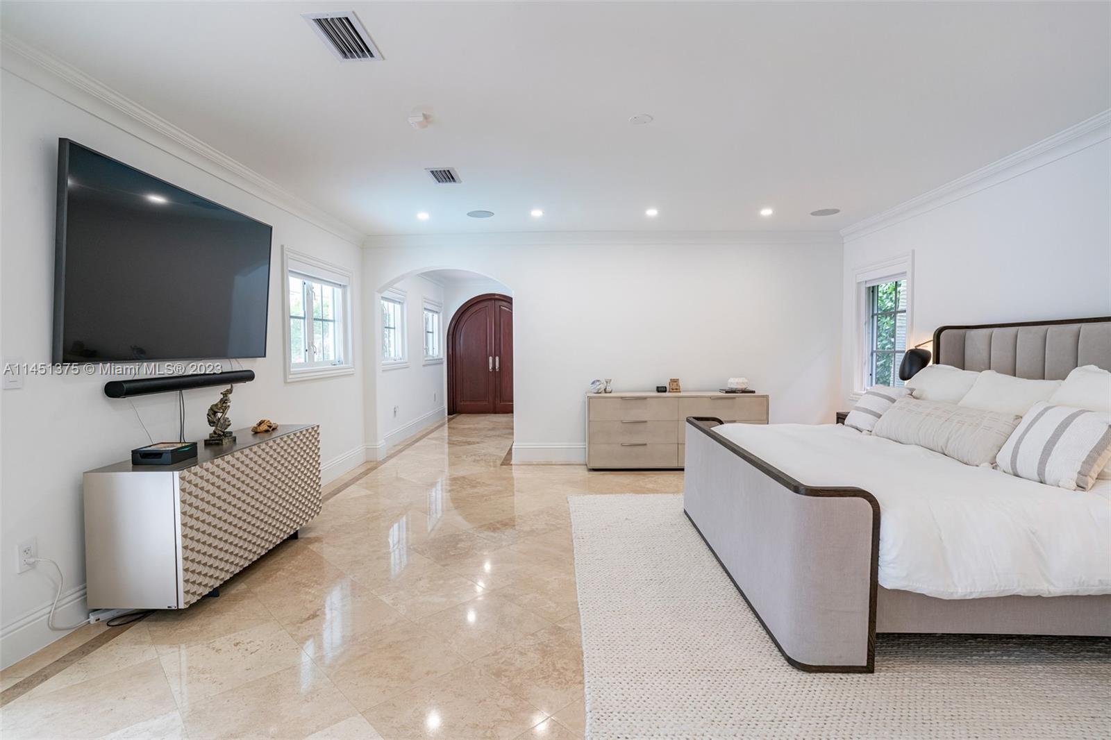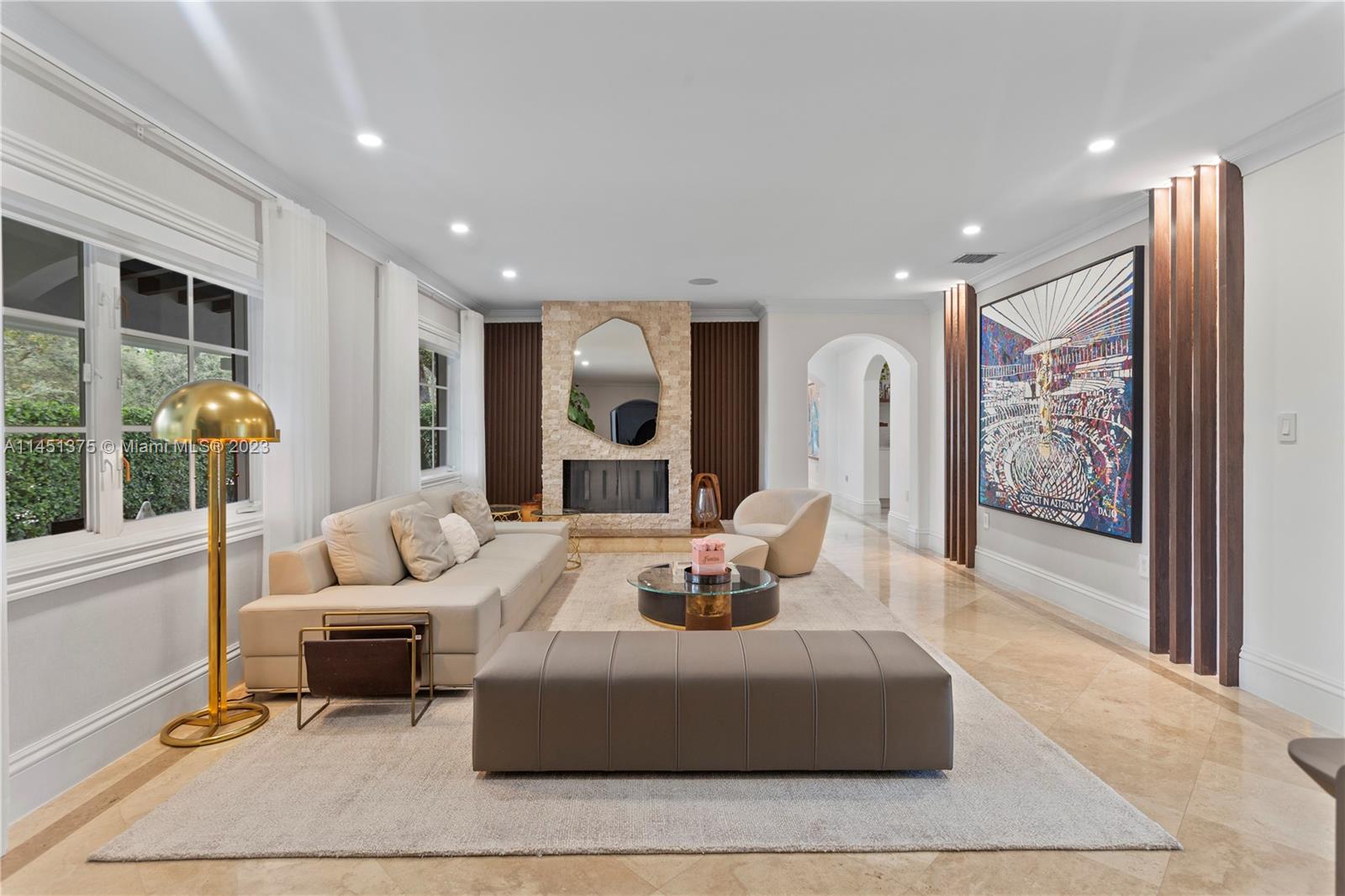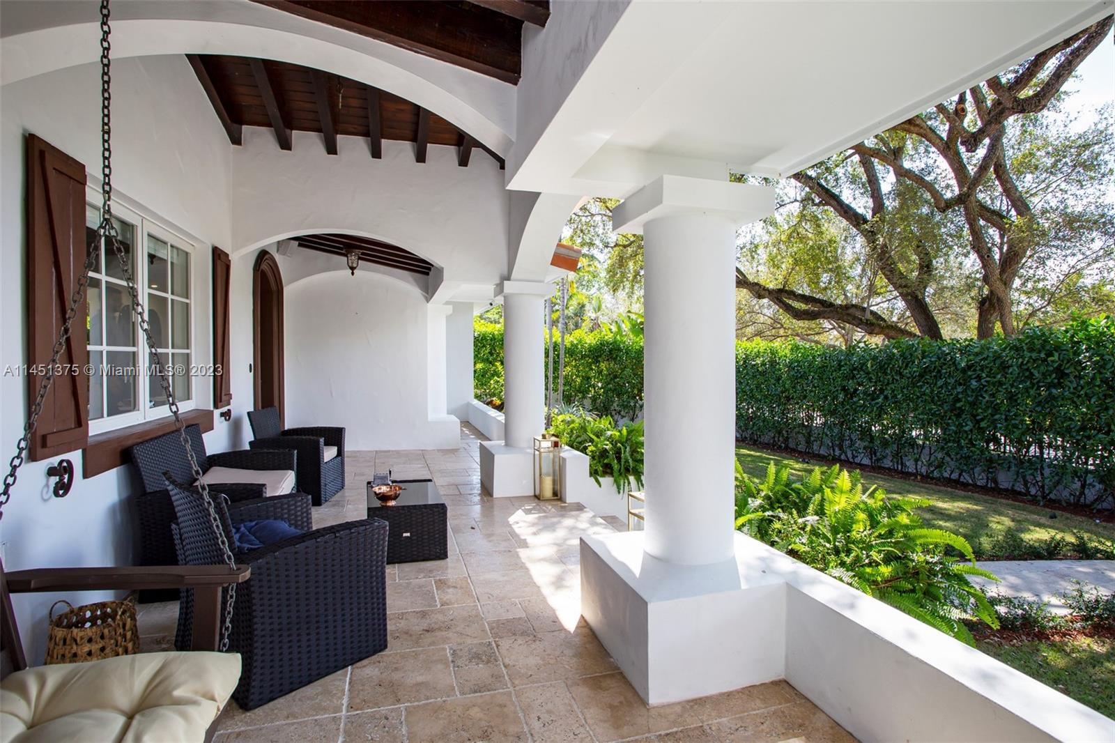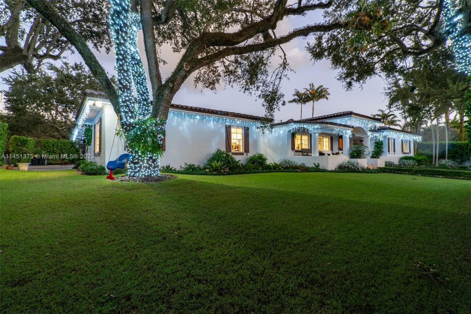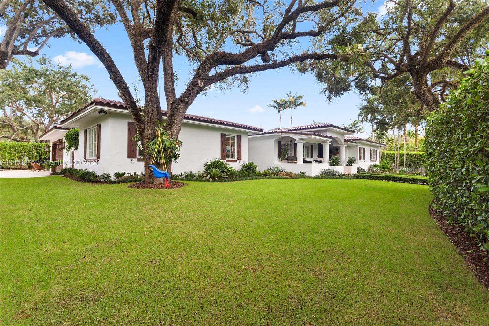 Welcome to your One-Story Mediterranean Tropical Retreat in the heart of Coral Gables! As soon as you enter the gates to this estate, you're greeted with a spacious and private front yard with beautiful Oak Trees. The perfect place to relax on your front porch and enjoy the view of your mature landscaping. The 5,087 SF estate features 5 ensuite bedrooms w/ oversized formal dining room, updated kitchen w/ breakfast nook overlooking the pool, & family room w/ telescopic doors that lead to your pool - this is the PERFECT home to entertain. Impressive primary suite with seating area / den, large custom built closet & elegant bathroom. Sonos speakers, electric blinds, & cameras throughout the home. Brand New Roof. Close to Riviera & Biltmore Golf Course.
