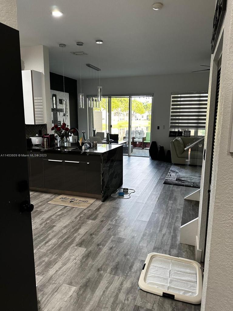 Spectacular lake view townhouse conveniently located in guard gated Silver Falls. It has 3 bedrooms upstairs /2.5 bathroom and 1 car garage - 2 cars driveway. The master bedroom has a huge walk in closet and bathroom with two vanities, roman tub and shower. Spacious open floor plan with tile downstairs and laminate upstairs. Community has a pool , clubhouse, fitness center, tennis and basketball courts and playground. HOA covers amenities & roof. Per HOA minimum of 650 credit score required for purchase. Roof 2005 , AC 2015 and water heater 2020. Accordion hurricane shutters.