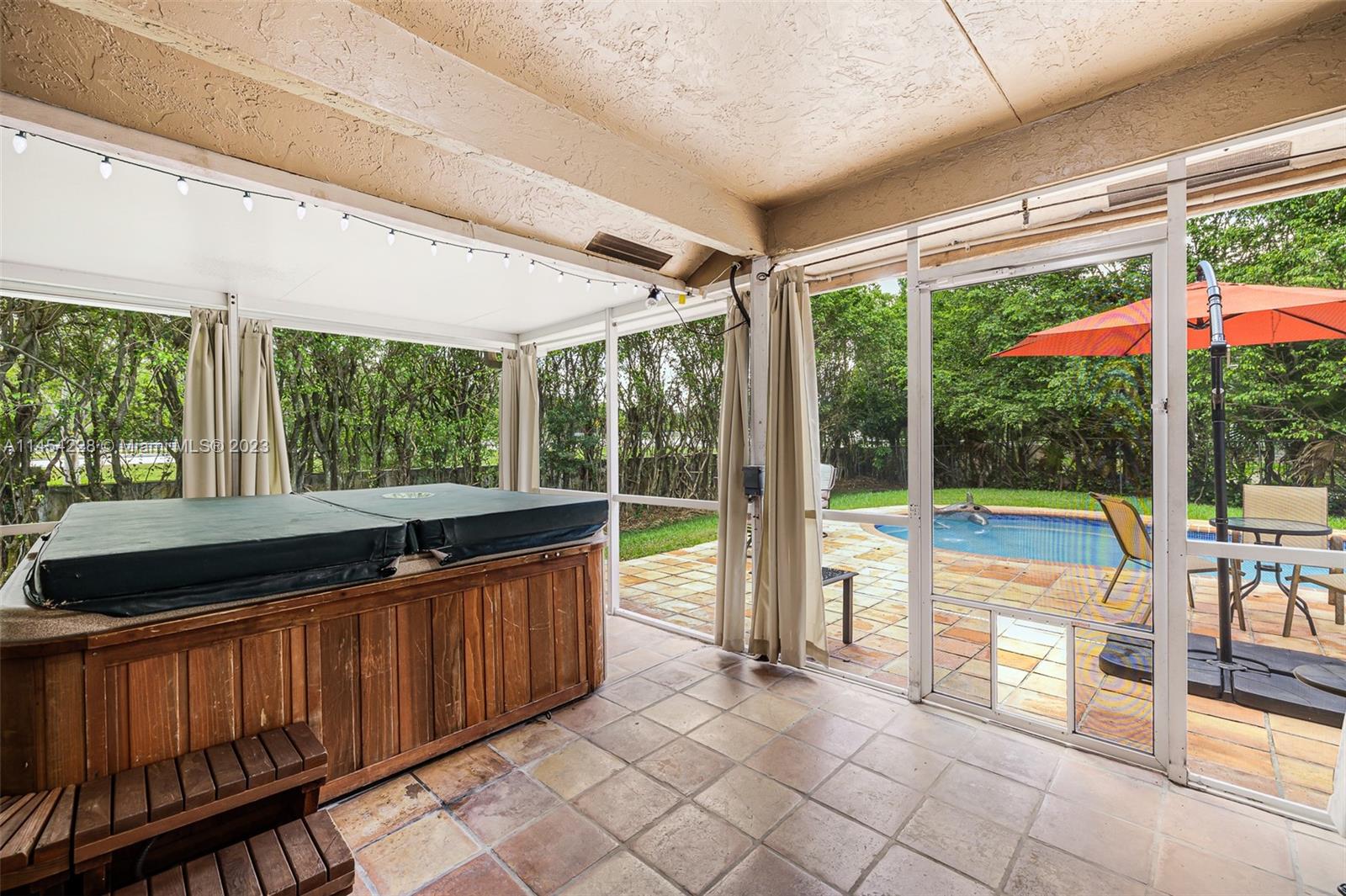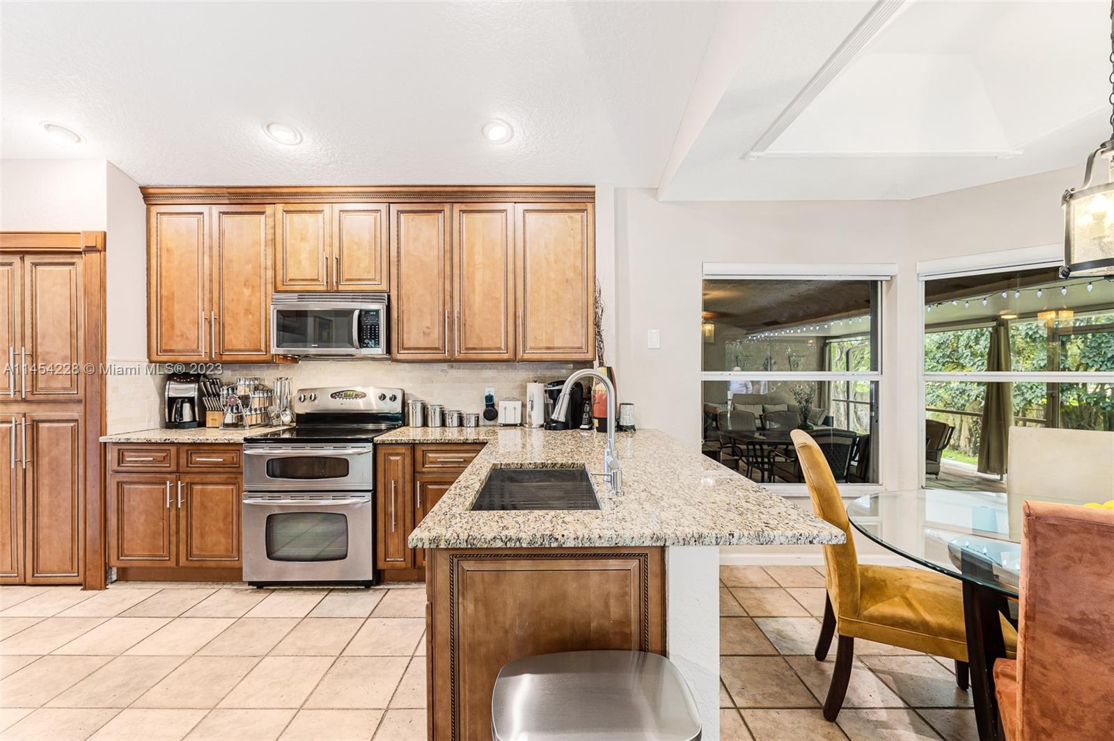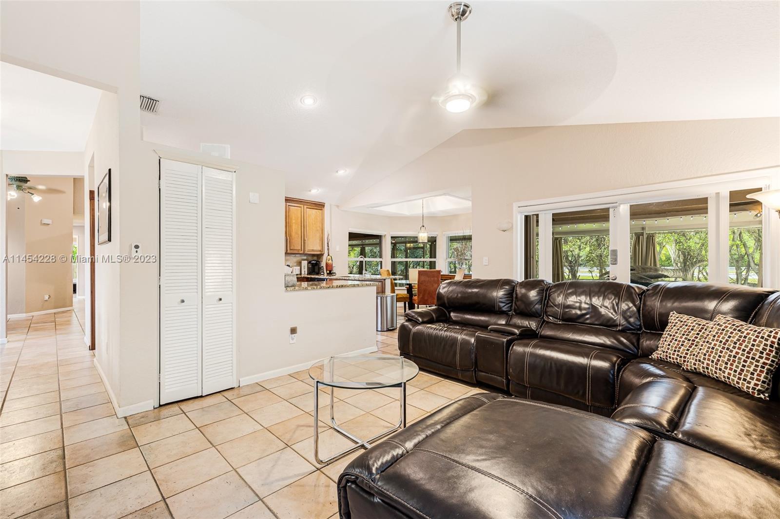 Lovely Pool Home in Davie Country Estates that sits on a builders half acre in the center of the cul-da-sac. Walk in you have a 4 Bedrooms, 2 Bathes, updates Kitchen with wood cabinets, Granite counter tops, family room, breakfast area, office, separate laundry room with sink, 2 car garage. Great covered patio for entertaining which is 50' long. Outside you have your pool and plenty of room for anything else. Roof was replaced 2016. Only 20 homes in the community.