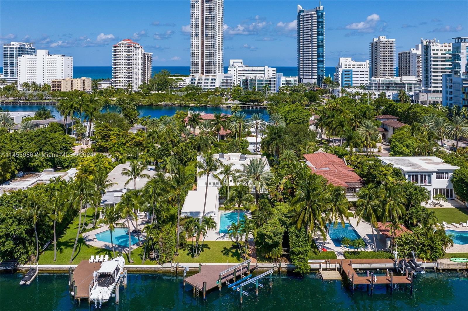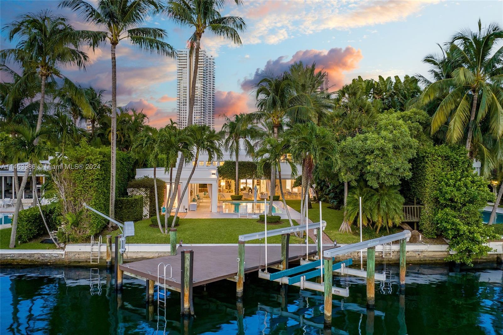 Palm Beach Meets Miami Beach! This beautiful Contemporary waterfront home sits on a lushly manicured, 16,200 SF west facing lot on guard-gated Allison Island! Inside the newly renovated modern & bright interiors you'll find large living spaces w/ dramatic double height ceilings, gourmet kitchen, family room, a 1,000 SF primary suite w/ attached office, massive 1st floor VIP suite & 3 large guest bedrooms w/ newly renovated en-suite baths. The outdoors is a tropical oasis w/ a large covered loggia & outdoor dining w/ retractable screens , resort style pool, & dock w/ boat lift. With 75 feet of WF & easy access to the bay this property is ideal for boaters. The home’s Western exposure will capture colorful sunsets over the water. Property is equipped w/ a 3-car garage & gated motor court.