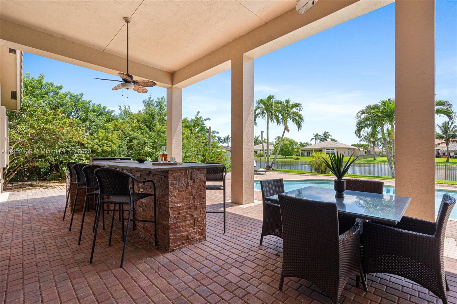 WELCOME TO RIVERSTONE IN DAVIE FLORIDA! THE WATERFRONT RESIDENCE-5 MODEL IS SITUATED ON A BUILDER'S ACRE. THE ONE-STORY MODEL OFFERS A SPLIT FLOOR-PLAN. ENCOMPASSES 4 BEDROOMS, 4 BATHROOMS INCLUDING A CABANA BATH PLUS OFFICE. THE OUTDOOR SPACE FEATURES A POOL, EXTENDED COVERED LANAI WITH A BUILT-IN BAR & GRILL . THE HOME HAS ACCORDION SHUTTERS THROUGHOT FOR HURRICAINE PROTECTION. 24-HOUR GUARD GATED COMMUNITY WITH TENNIS COURT, BASKETBALL COURT, PARK, ZONED FOR A+ RATED SCHOOLS, JUST MINUTES FROM THE AIRPORT & MAJOR HIGHWAYS. HOME IS WELL KEPT BUT TRADITIONAL. PRICE IS FIRM.