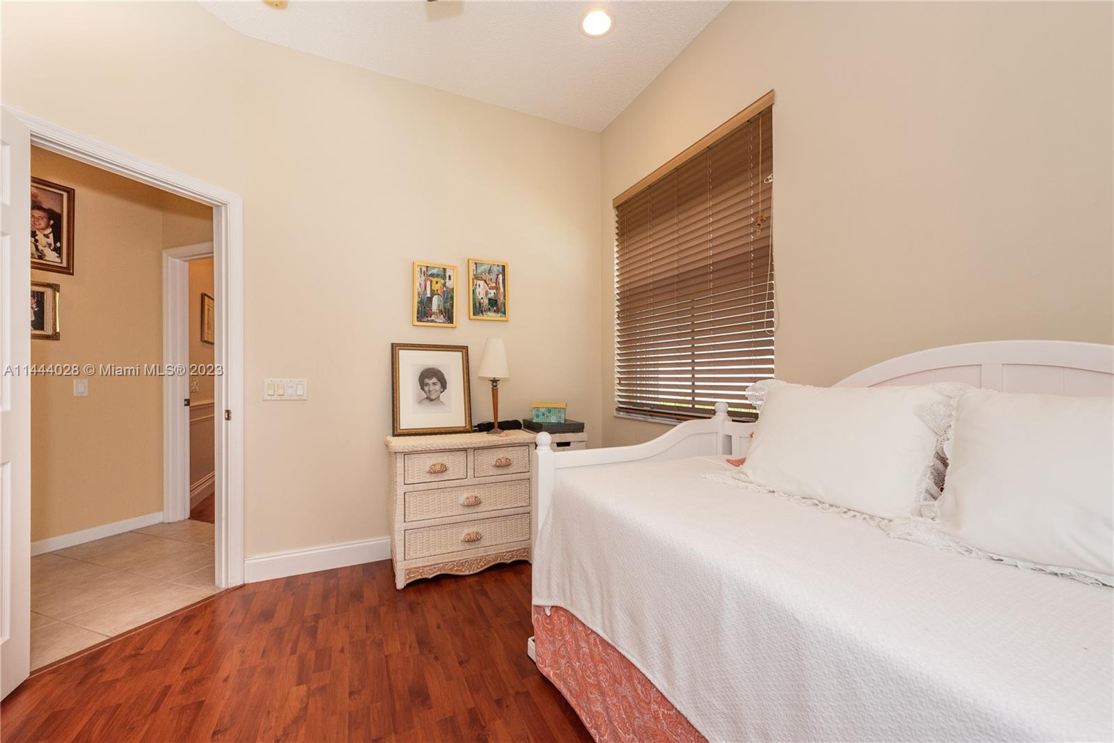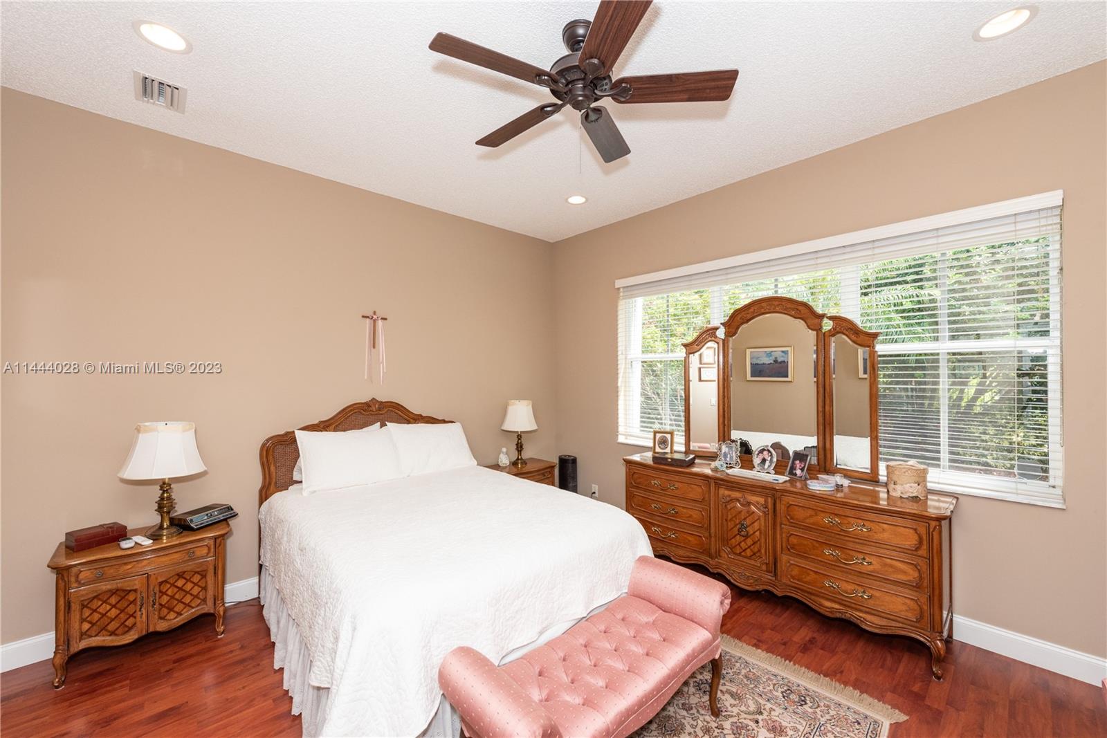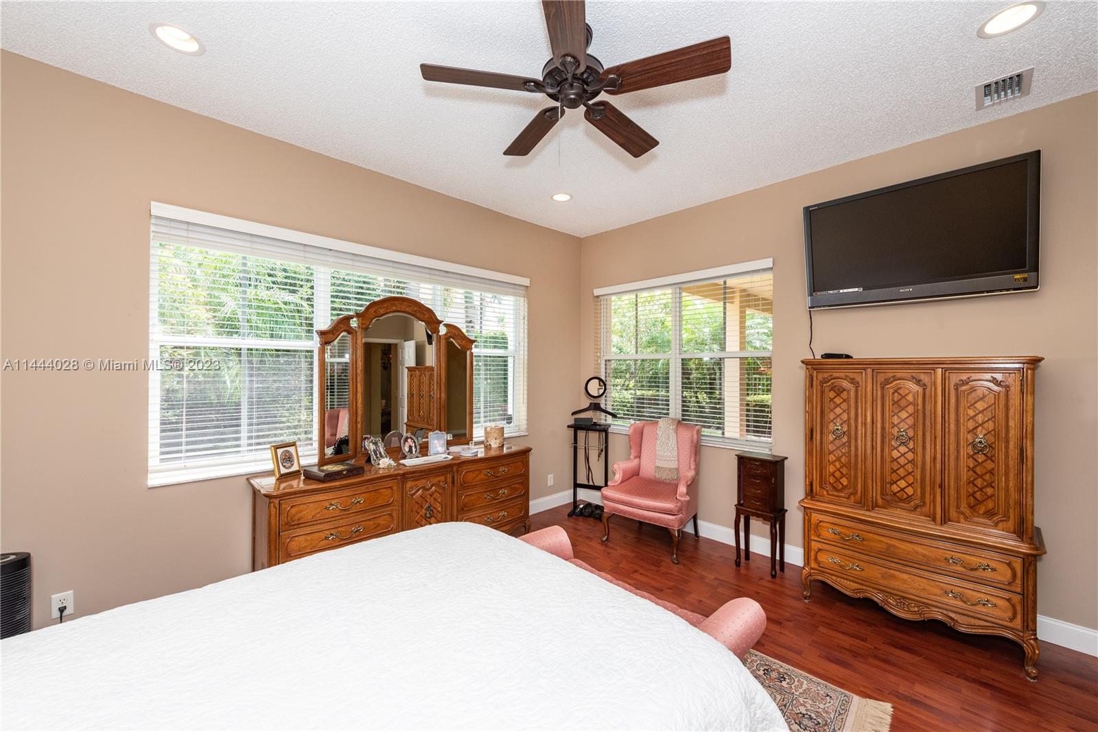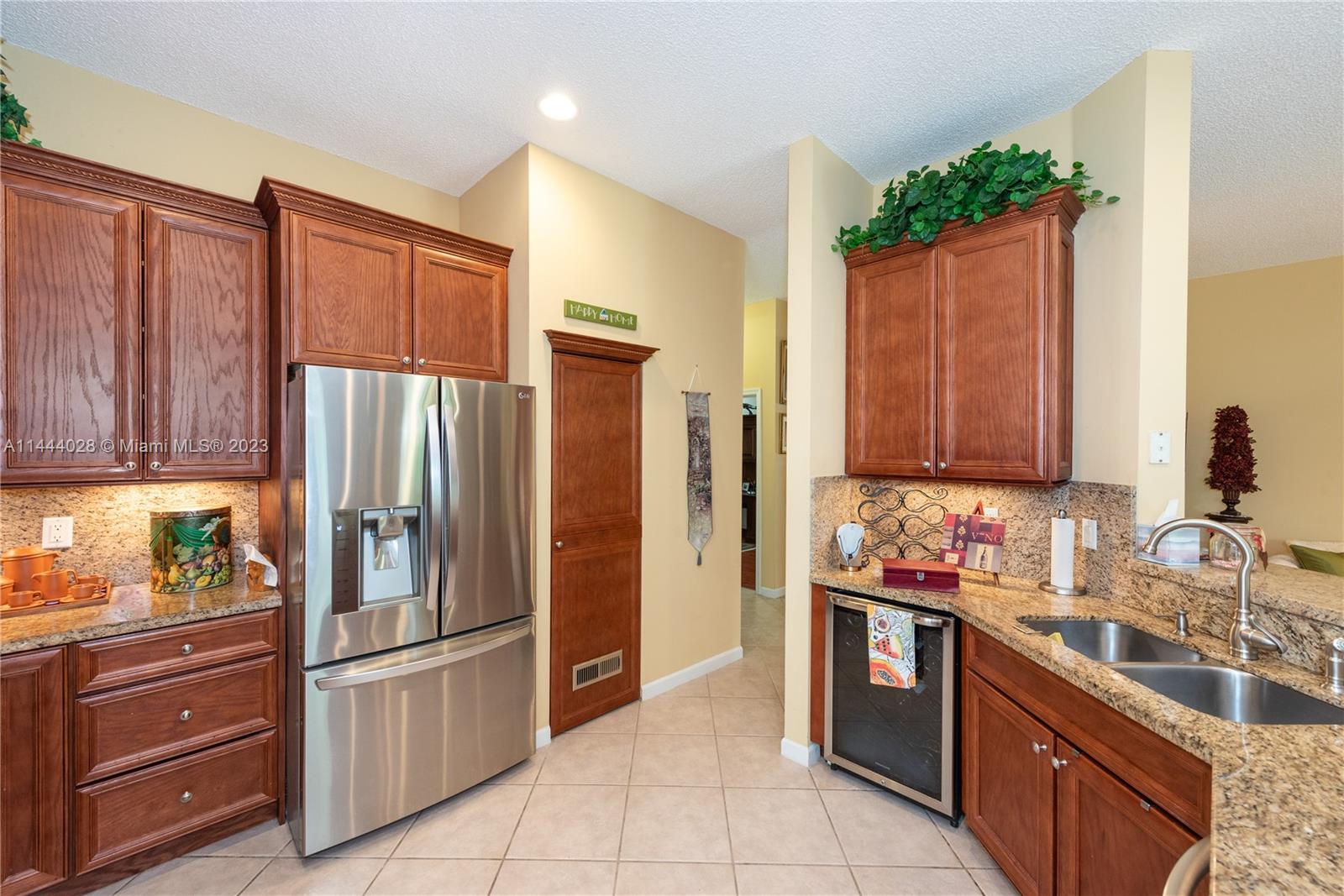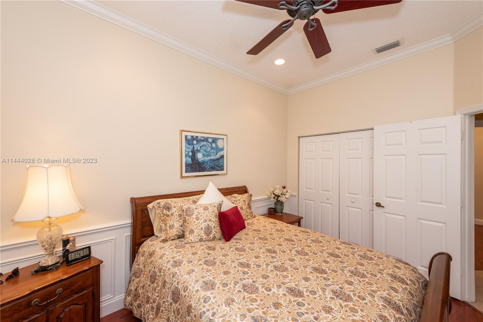 Savanna is one of Weston's highly desirable gated communities. This impeccable home is move-in ready, with a superb layout for entertaining. The living, kitchen, and family rooms are all integrated with bright, ample areas facing the beautifully landscaped backyard, which you can access through two different sliding doors. The backyard features a large overhang paved area with fan. The house has a split floor plan with 2 AC's, lots of light and a 4th bedroom that has been converted into an office. The kitchen has solid wood cabinets, granite counter tops, and stainless steel appliances. The laundry room is under AC with a utility sink. Accordion shutters. A+ Schools, some of the best in Broward County.No Association Approval required.