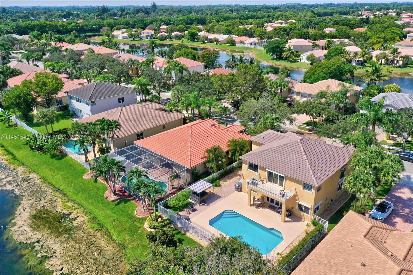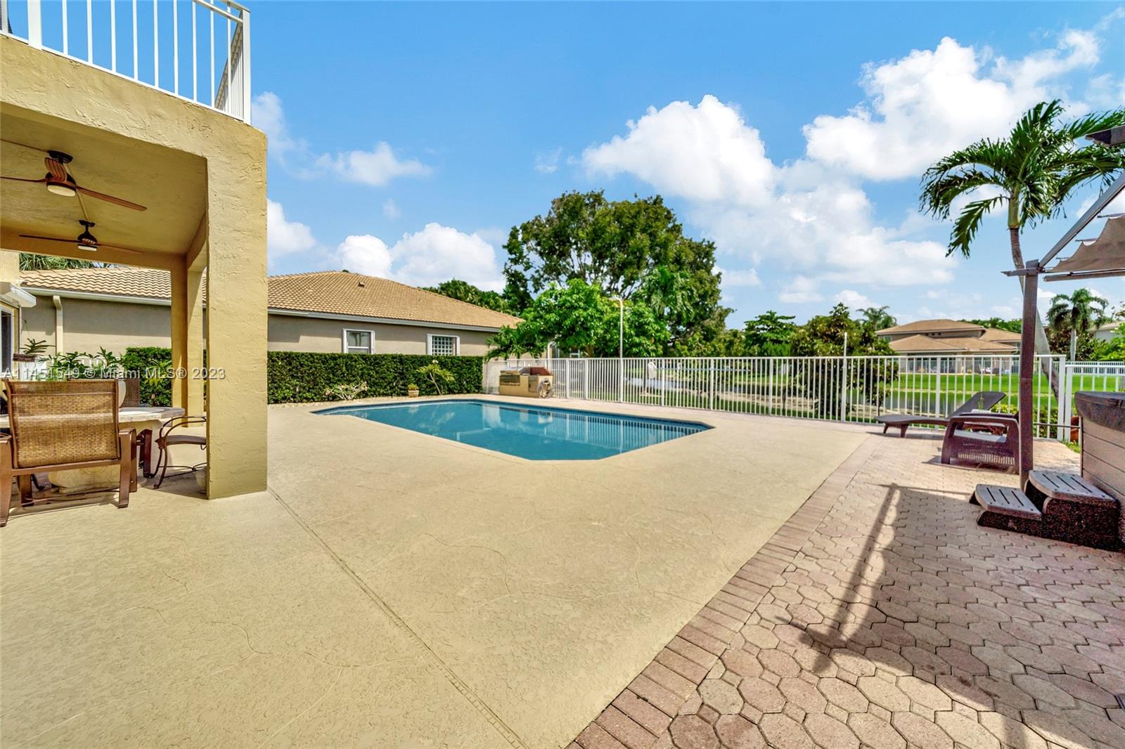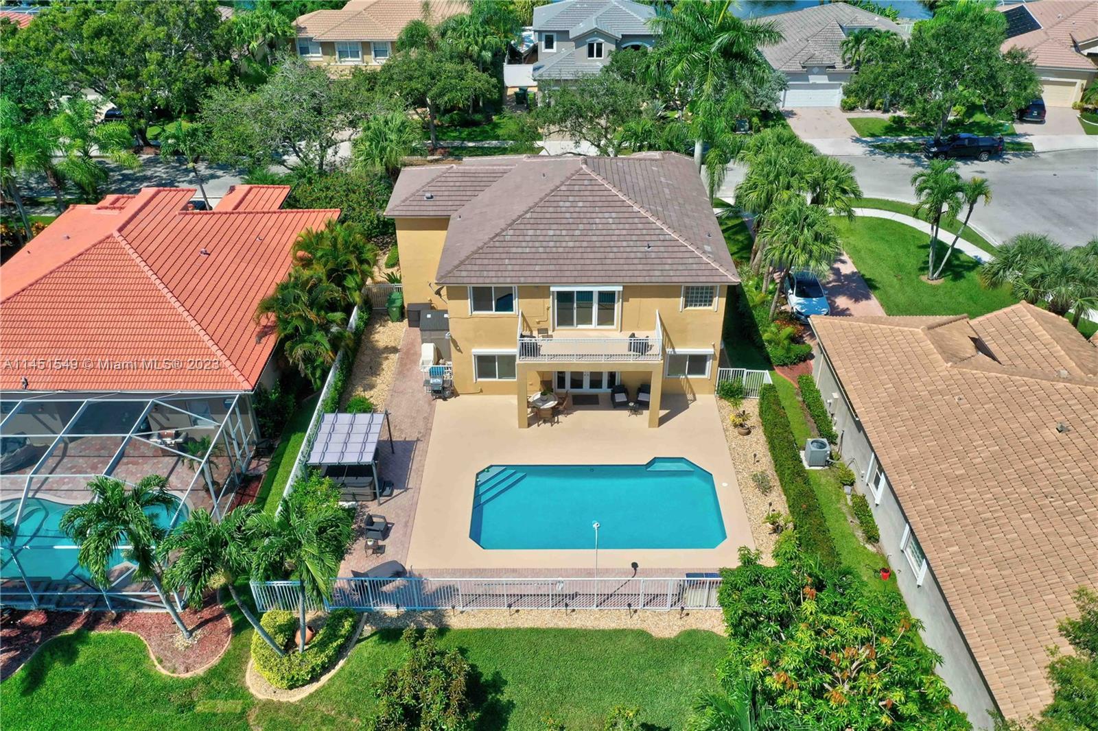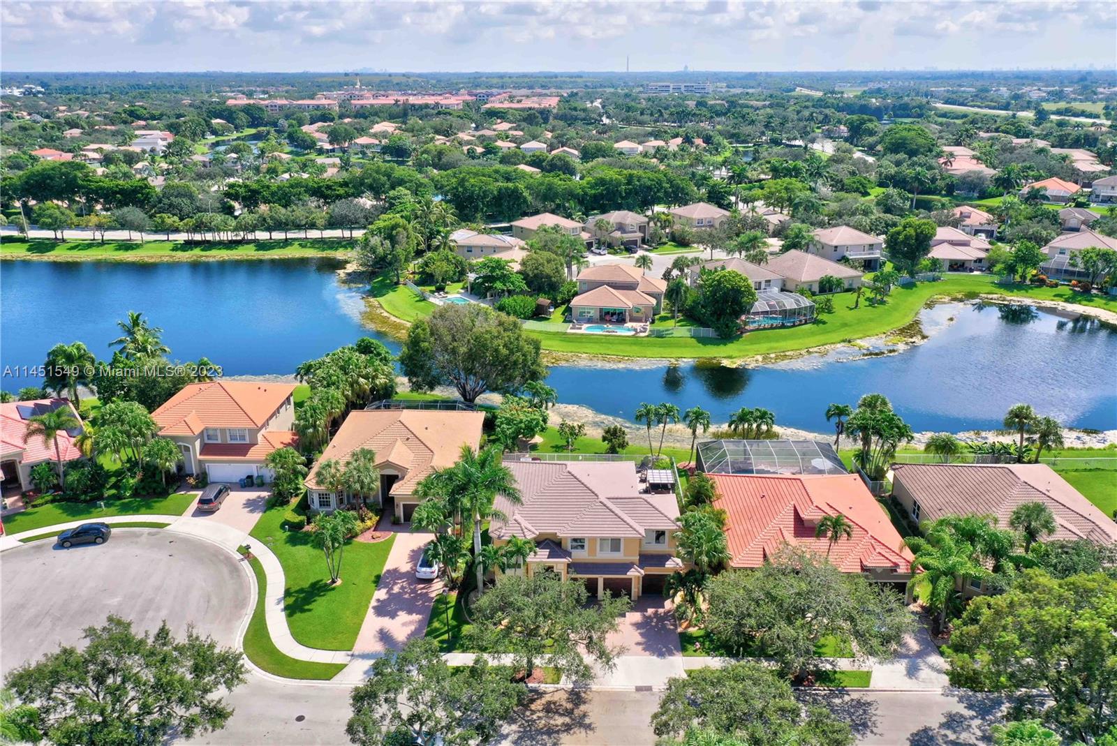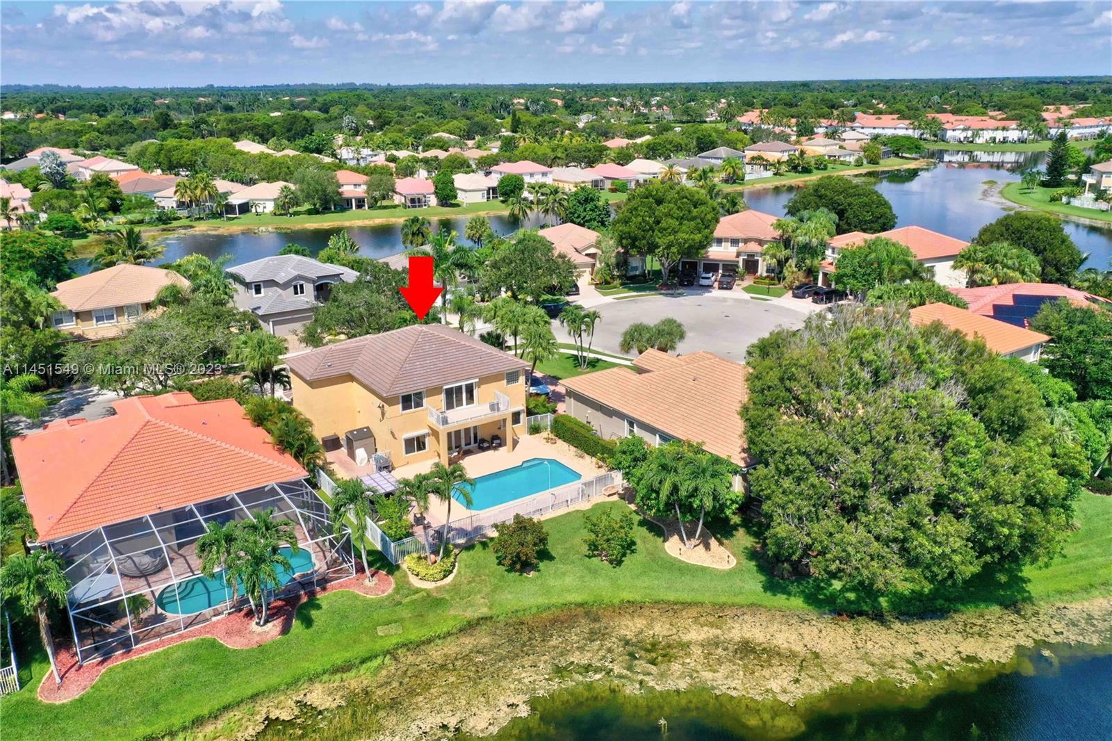$25,000 BUY DOWN CREDIT paid buy Seller - Welcome to luxurious living in Weston's Emerald Estates! This stunning 5-bedroom, 3-bath home, tucked away in a tranquil cul-de-sac, offers modern updates, a chef's kitchen, and elegant baths. The primary bedroom boasts a private terrace with serene lake views. Marble floors, a 3-car garage with epoxy floors, and brick paver driveways add to the charm. Safety is ensured with security cameras and monitors installed inside and out as well as 24/7 gated security, and the HOA covers landscaping, cable, internet, gym access, and alarm monitoring. A new roof and impact windows provide peace of mind. Your oasis awaits outside with a pool, spa, and outdoor kitchen. Don't miss out! Schedule your showing today!