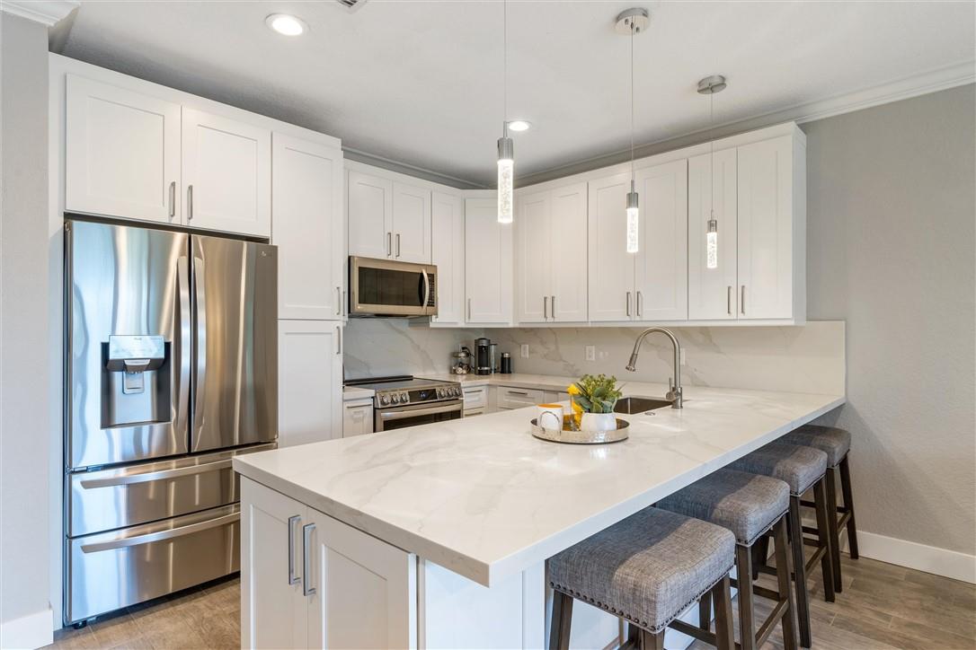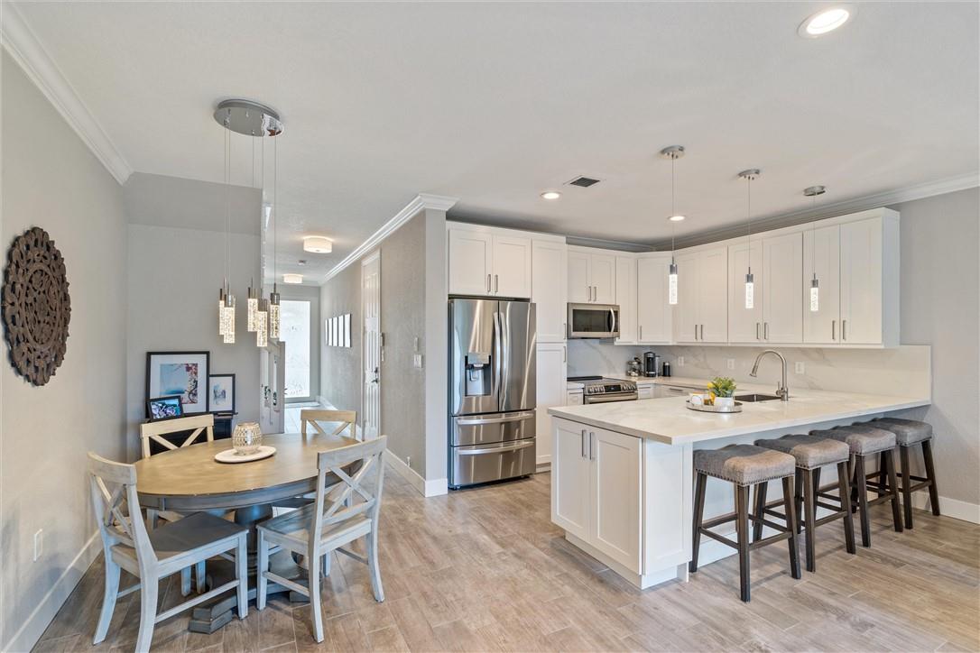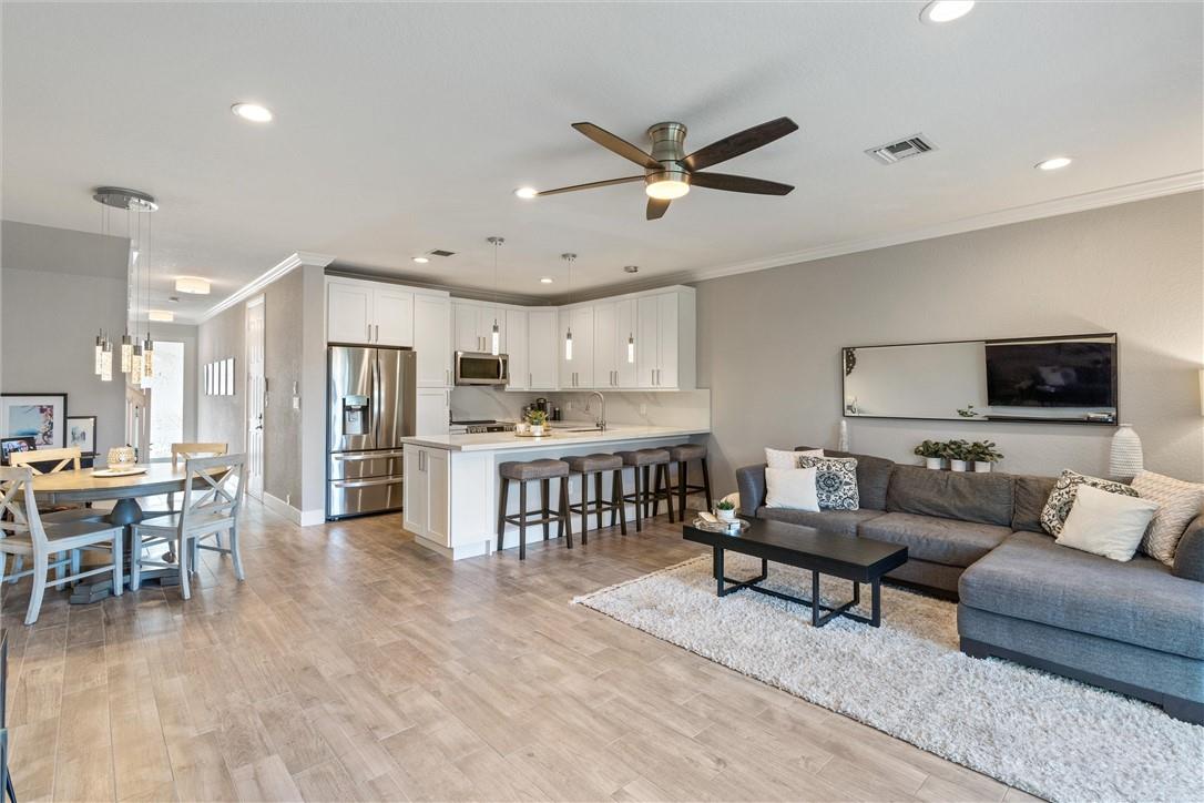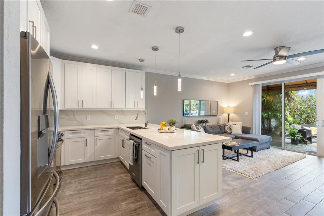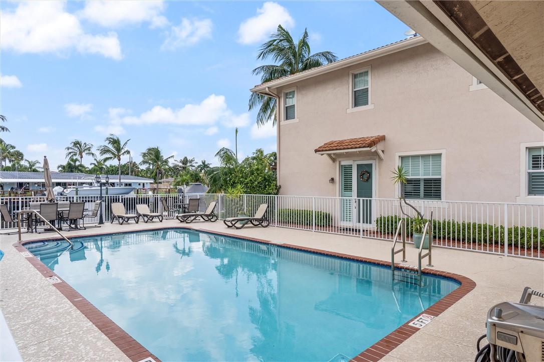 This is THE ONE...a true boaters dream! Completely upgraded 3 bed, 2.5 bath townhome in gated community with PRIVATE slip for 32' ft boat! NEW modern open kitchen w/ white shaker cabinets, stainless appl., quartz counters & oversized bar area w/ seating for 4! Spacious living/dining area overlooking fenced back yard w/ patio area perfect for entertaining! Oversized primary BR w/ walk-in closet & bath w/ dual sinks, lg. shower & jacuzzi tub! Upgrades incl. new wood-like tile on 1st floor, crown molding, upgraded lighting & fans & more! Impact glass thru/out! All bedrooms and W/D upstairs! WF community pool & private docks! Two pets allowed up to 60 pounds! Centrally located to the restaurants, shopping & the beach! You must see this home before it's gone!