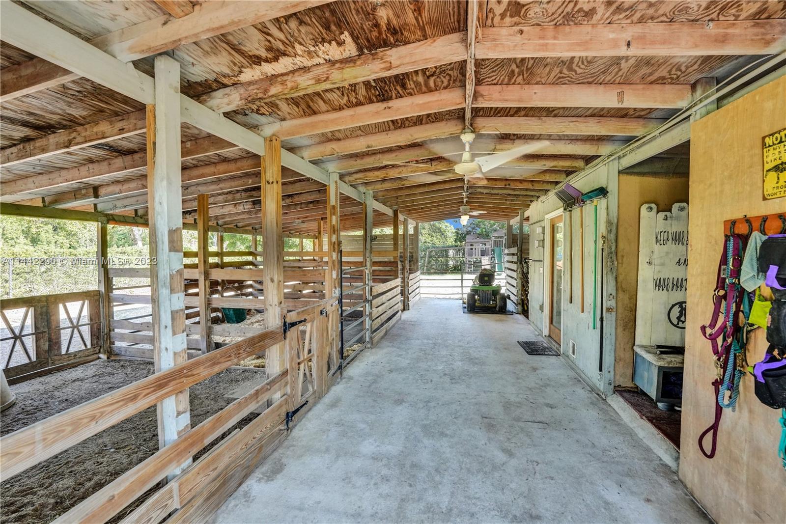 What an amazing find in the heart of west Davie in the middle of the Davie Recreational Trails System. The possibilities are endless - move right in or there is plenty of space to add a 4th bedroom & 3rd bathroom with over 2,400 sf of living area. Huge 36,000 sf+ lot boasts a center aisle barn with electric, water & metal roof with 4 stalls, tack room and hay/storage room & large paddock area. If horses aren't your thing this can easily be converted to an incredible work shop, man-cave, etc. The home interior features tastefully updated kitchen and bathrooms, tile floors and crown moldings throughout. Hurricane impact windows. Huge covered back patio perfect for family gatherings and entertaining. Great school system. Super easy access to I75, 595, shopping, restaurants and more!