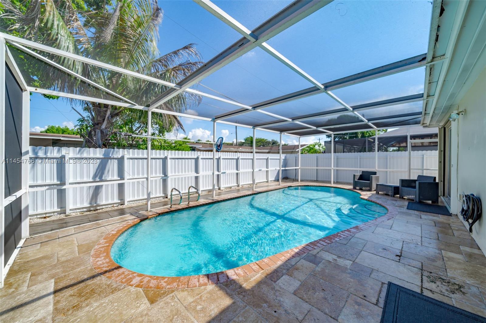 AMAZING THREE BEDROOMS, TWO BATHS ONE STORY HOME WITH A BRAND NEW 2023 METAL ROOF, NEW A/C UNIT, AND NEW LG WASHER AND DRYER. THIS PROPERTY FEATURES A SPACIOUS OPEN FLOOR PLAN THAT FLOWS SEEMLESSLY TOGETHER. THE FAMILY ROOM ALLOWS FOR INDOOR/OUTDOOR LIVING. KITCHEN HAS GRANITE COUNTERTOPS AND STAINLESS-STEEL APPLIANCES INCLUDING A GAS RANGE/OVEN. NEWER WATER HEATER 2019. ACCORDIAN SHUTTERS AND NEW ALUMINUM FENCE FOR PRIVACY. FRESHLY PAINTED INTERIOR & EXTERIOR WITH INCREDIBLE CURB APPEAL. THIS BEAUTIFUL HOME HAS A BIG YARD WITH AN ENCLOSED SPARKLING SALT WATER/HEATED POOL GREAT FOR ENTERTAINING. SECURITY CAMERA SYSTEM INCLUDED. NO HOA. EXCELLENT LOCATION, CLOSE TO SHOPS, RESTAURANTS, PARKS AND EASY FREEWAY ACCESS.