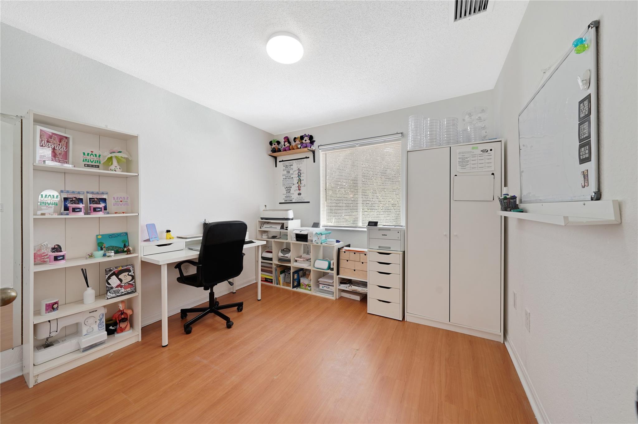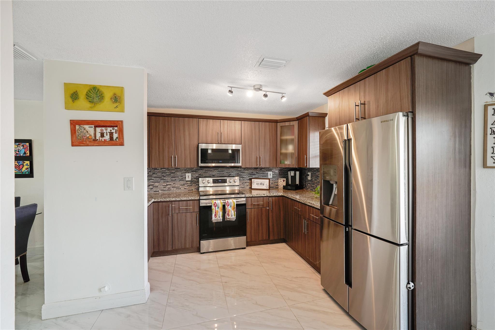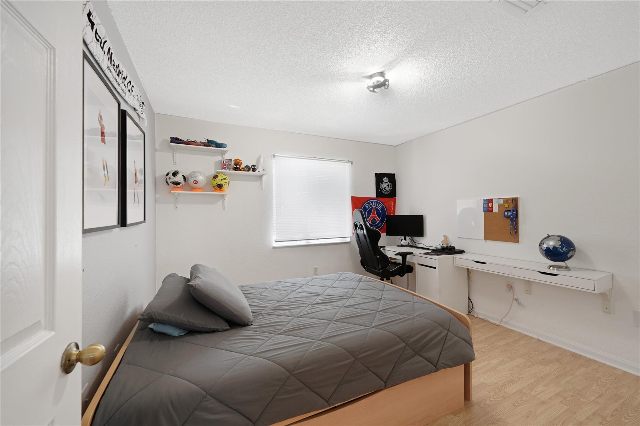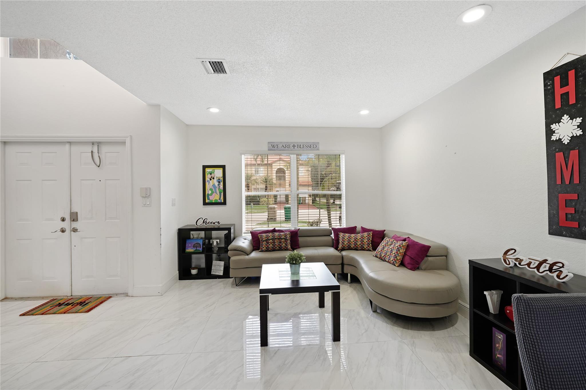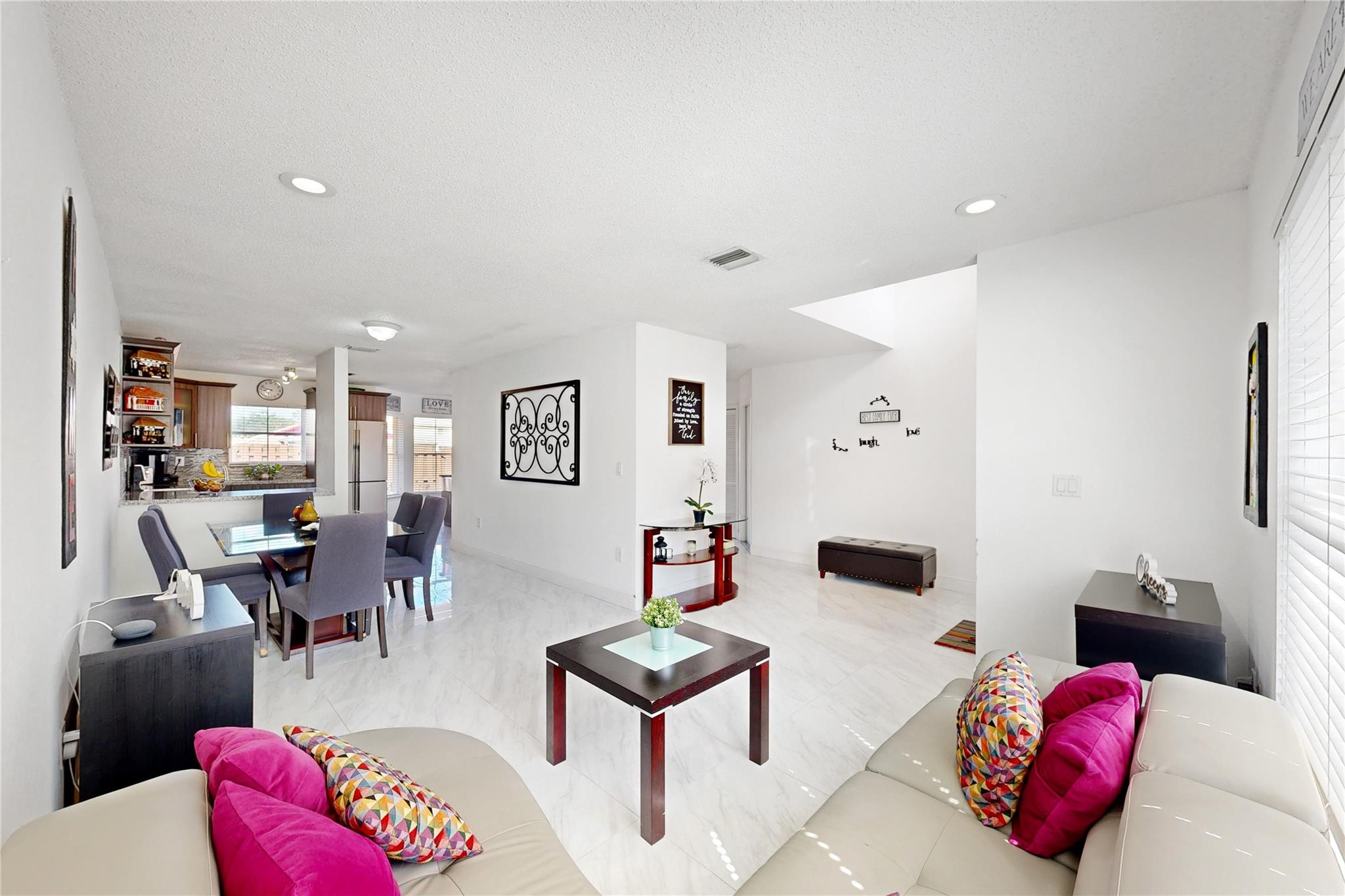 Nestled in the gated community of Poinciana Parc, this beautiful 4BD 2.5BA townhome epitomizes modern elegance & comfort. With nearly 2,000 sqft of living area, & remodeled in 2018, the home showcases new bathrooms + a stylish kitchen adorned with granite countertops, dark wood cabinets, & Samsung appliances. The first floor boasts stunning tile floors. The second level features chic laminate flooring. Additional highlights include an attached 1-car garage, a private fenced patio, a 2016 AC unit, & full-panel hurricane shutters for peace of mind. Residents enjoy the security of a guard-gated entrance, a community pool, & a children's playground. All within a central location offering easy access to local amenities, shops, restaurants, the Sawgrass Mall, & IKEA. Equal Housing Opportunity.