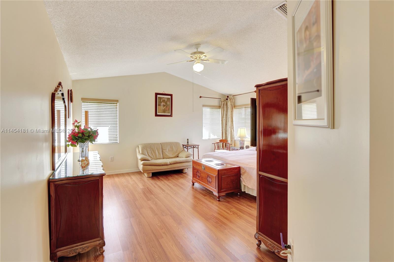 Elegant single family home centrally located in the heart of Doral. The house close to community center, which has pools, kids playground etc., with open view in the front and paved spacious yard at back. Recently installed solar panel for the energy efficiency. Volume ceiling, spacious family room, open kitchen, formal dinning area, 4 spacious bedrooms, 3 full bathrooms, and 2 car garages, it has it all. Great location, easy access to highways, parks, restaurants and shopping centers, it also surrounded by good schools.