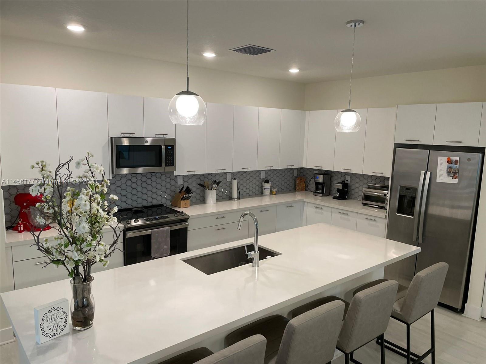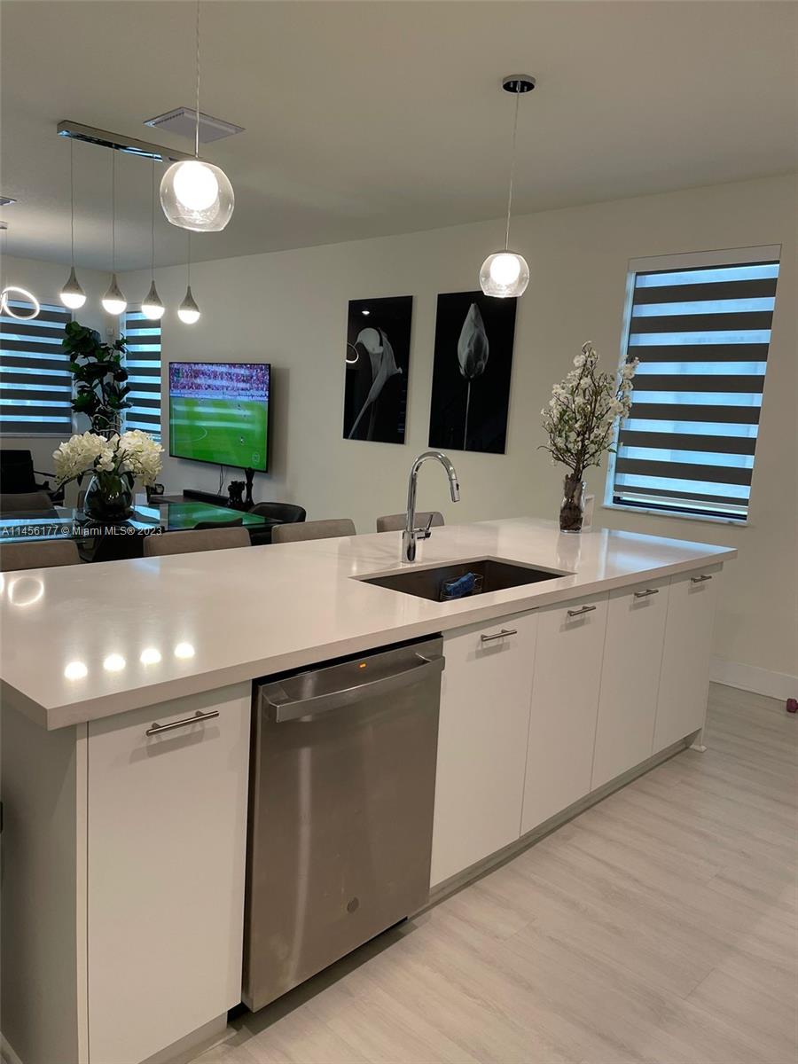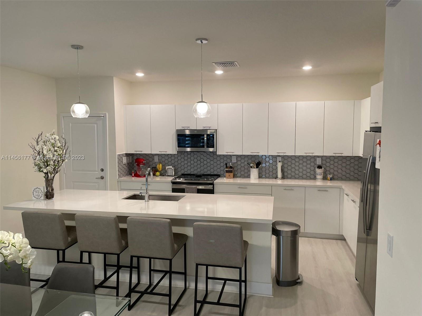 4 Bedroom and 2.5 baths corner townhome, wood waterproof floor, Railings stealing steel, stainless steel appliances, all windows with blinds, washer and dryer, A/C system. Beautiful white kitchen Cabinets, Quartz top, Backsplash, walk-in closet, double car garage and balcony. Private Club House, Gym, playground, swimming pool, game room, 24 hours security.