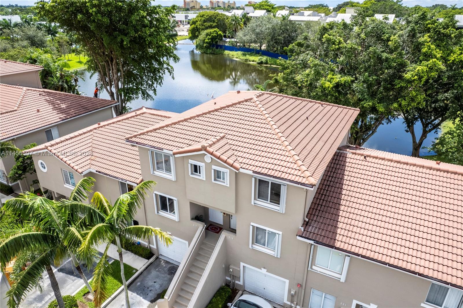 Beautifully upgraded three bedroom townhouse with three bathrooms and a one car garage with a peaceful view of the lake and overlooking the million dollar Estates of Botaniko. Master bedroom and third bedroom each have its own private bathroom. Very low HOA monthly fee which includes the lawn care. Accordion Hurricane shutters. All rated "A" schools. OK to rent after closing. No Association Approval required! Excellent for investors or for a family to enjoy a ready to live home.
