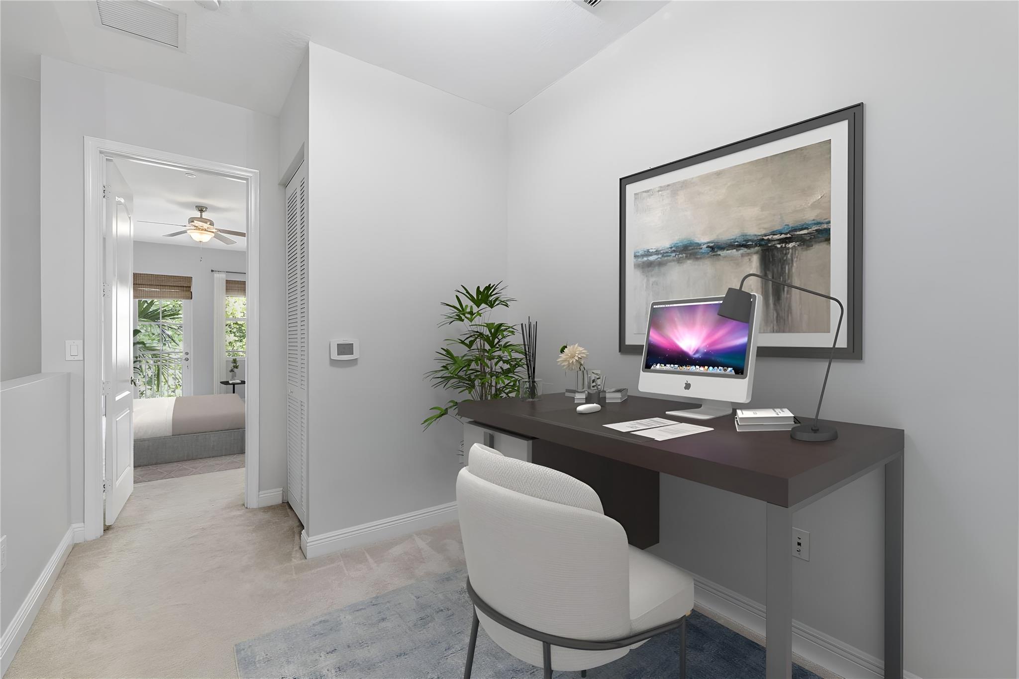 Move-in ready, oversized 2 BD/2.5 BA townhouse + den/loft located in the cozy Sailboat Bend neighborhood and walking distance to Downtown FTL. Highly desirable corner unit features high ceilings & extra windows with tons of natural light, impact windows, fresh paint & carpet, 2021 WH & 2018 AC with transferable warranty. First level features eat-in kitchen with breakfast area & SS appliances, large living room, formal dining, half bath, walk-in laundry, & balcony. Second level has a den/loft, 2 large bedrooms w/ ensuite bathrooms, & private balcony in primary. Pet-friendly community w/ Key West-style architecture & tons of nearby parks. Prime location near I-95/595, shopping, dining, beaches, & Las Olas. One assigned parking spot with plenty of street & guest parking, can rent first year.