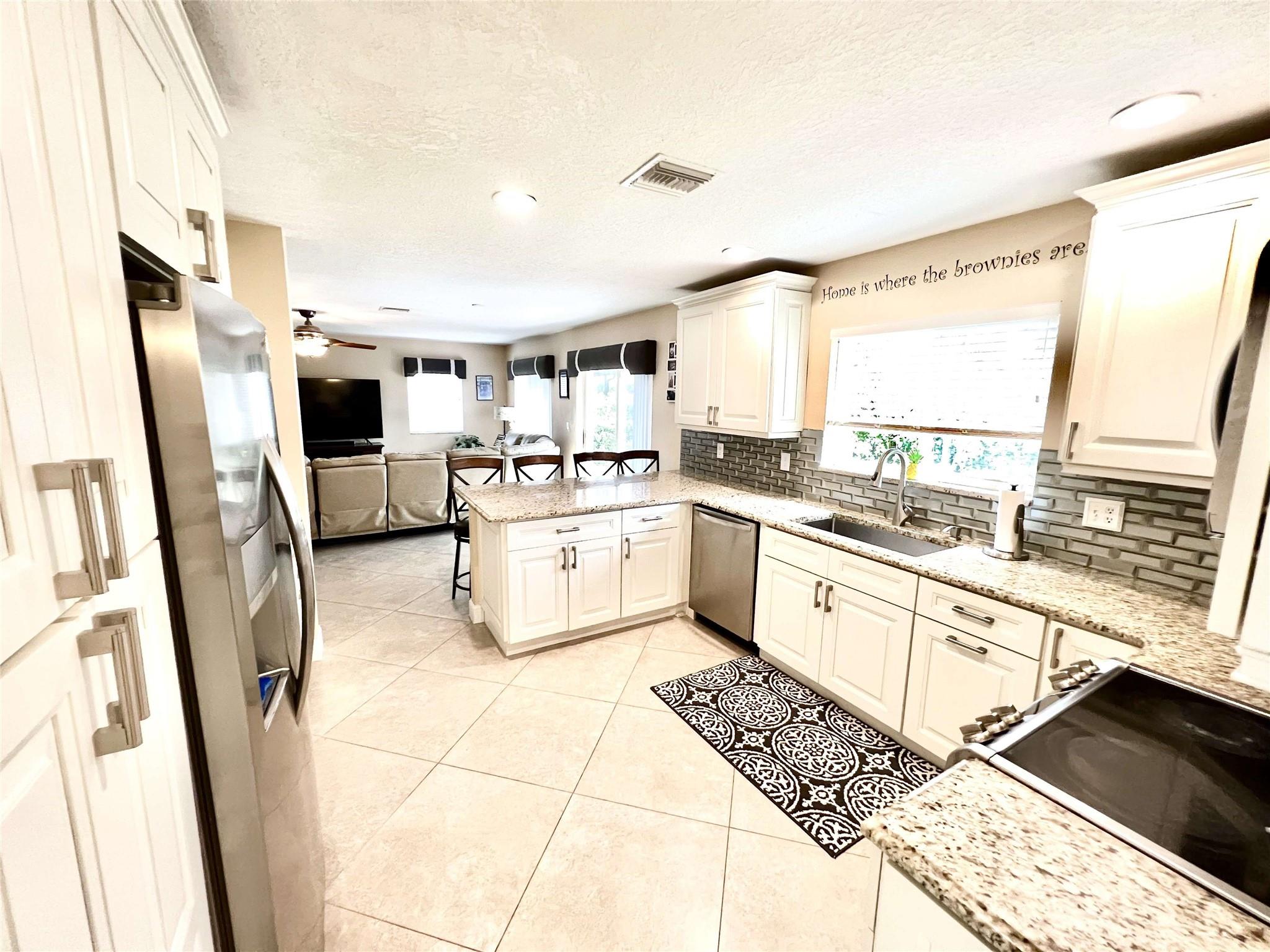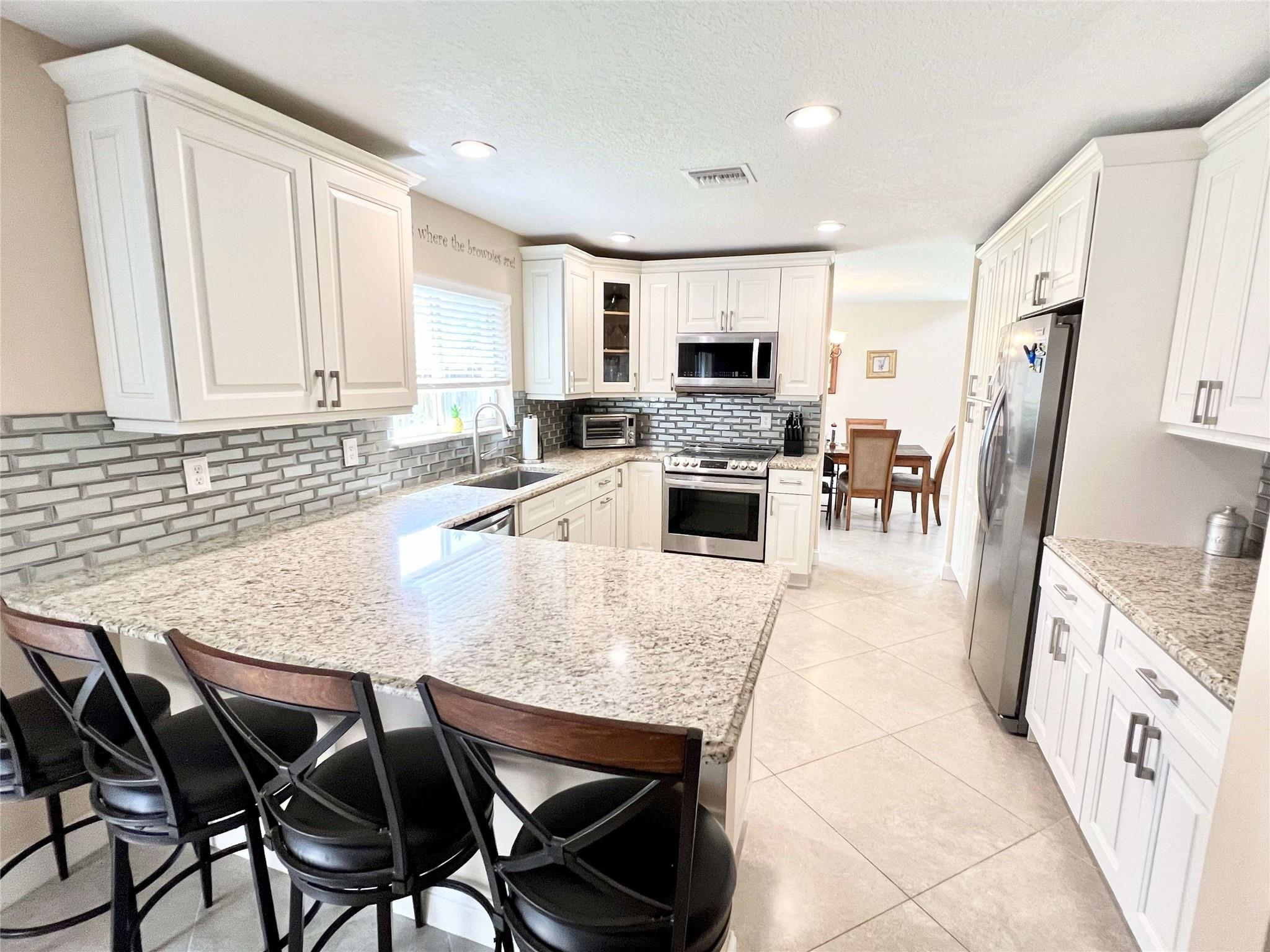 Exquisite 4/3 home in the beautiful family-friendly neighborhood of Harmony Lakes Estates. The updated modern interior features a renovated kitchen with solid wood cabinets and granite countertops. Floors updated with extra-large porcelain tiles downstairs and wood panel flooring upstairs. Extra high-volume ceilings, new roof installed in 2023, and exterior freshly painted. This community offers a low HOA and A+ schools. Community pool, racquetball court, basketball court, tennis courts, tot lot, gazebos and more! Property sold AS-IS with right to inspect. Don’t miss out on this one before it’s gone!