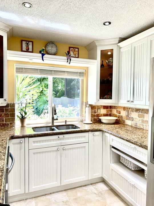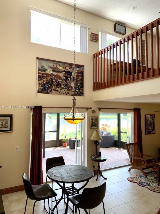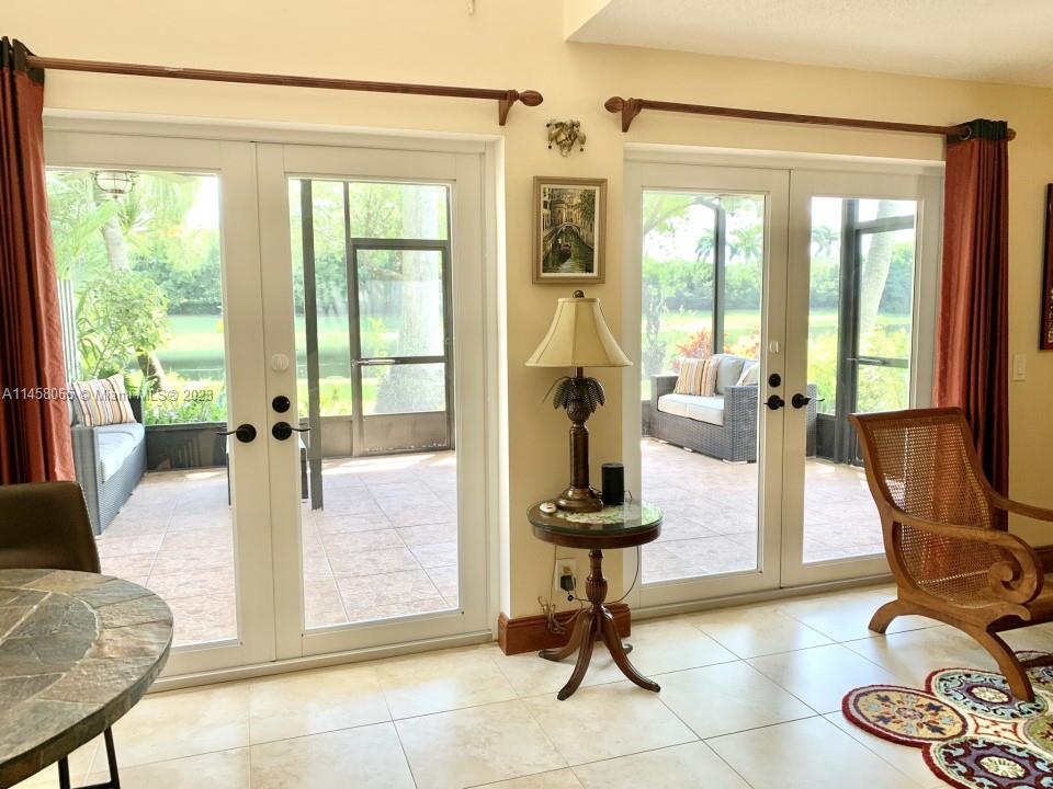 Home being sold "As Is". Expansive water views!! Vaulted Ceiling. 2/2 Town House. Split floor plan- 2nd floor Master Suite w/ walk-in closet, 1st floor on-suite with 2 large closets. Open loft great for office or media space. Double French Doors leading to oversized screened in patio, perfect for entertaining. Kitchen with custom wood cabinetry and granite countertops. Breakfast nook with sliding glass doors. Hurricane impact windows and doors. Attached outside storage room. Community pool. What I love about this home: Tranquil Garden with Amazing water views!