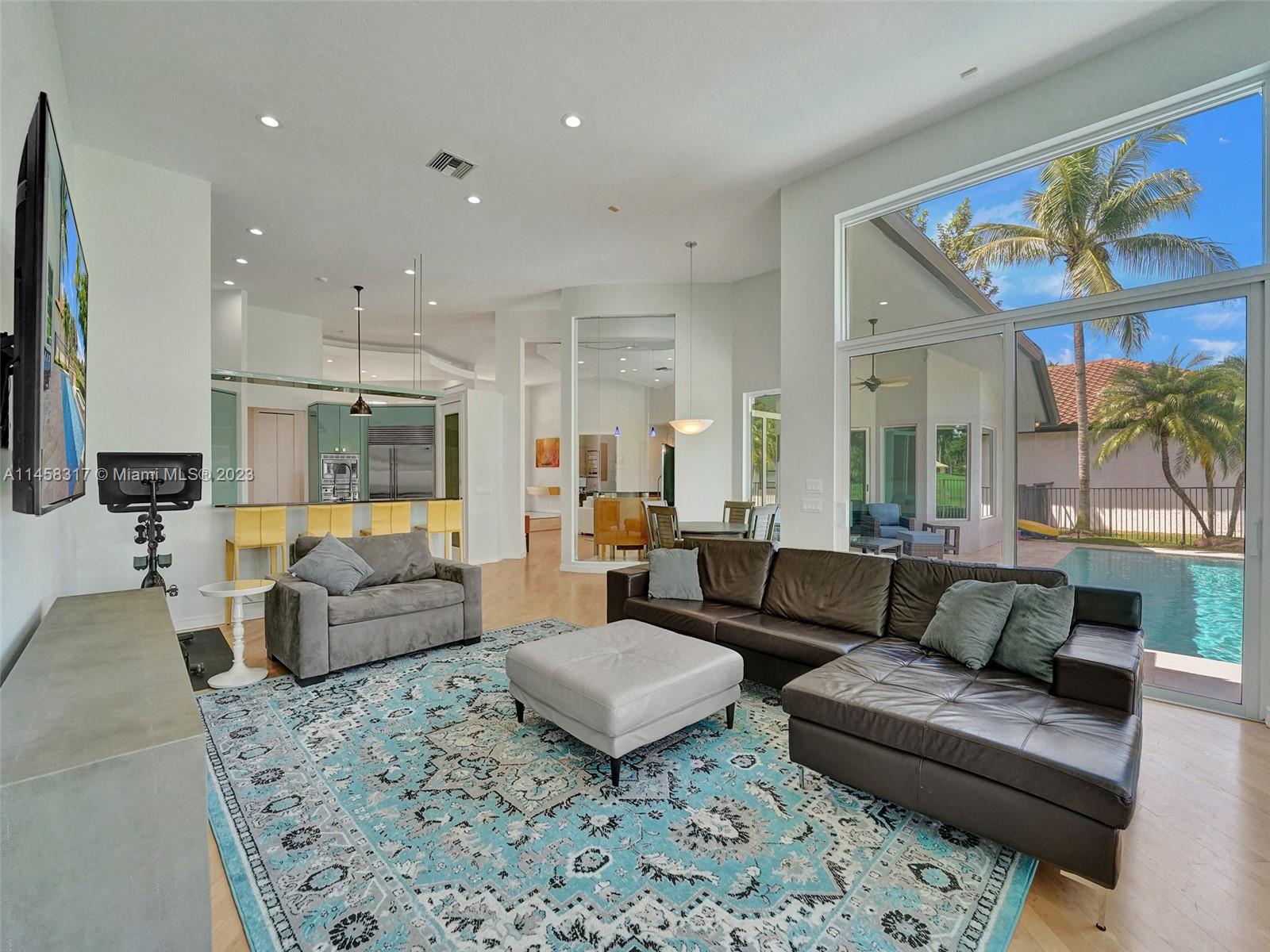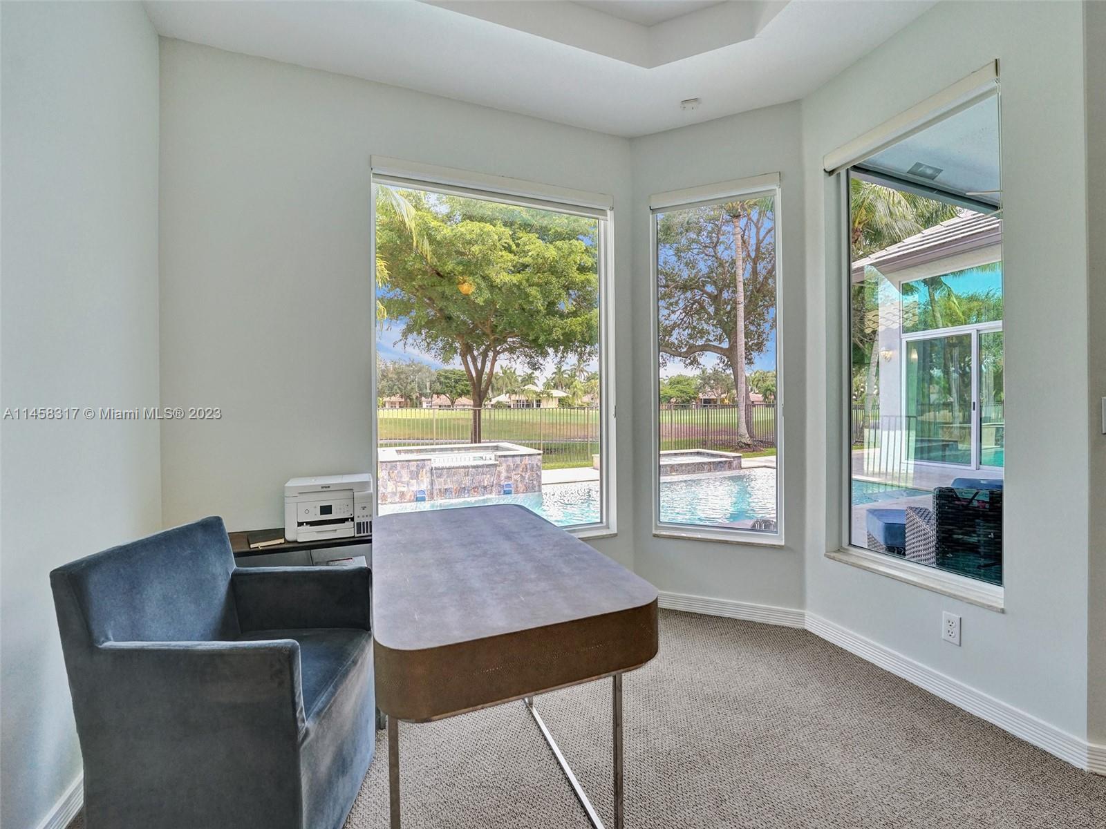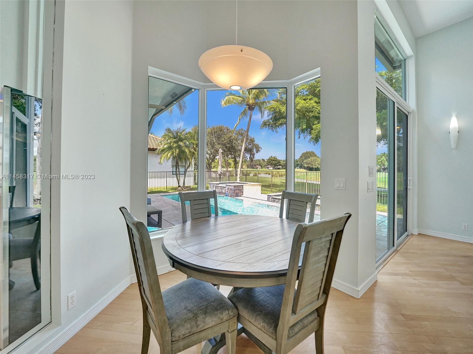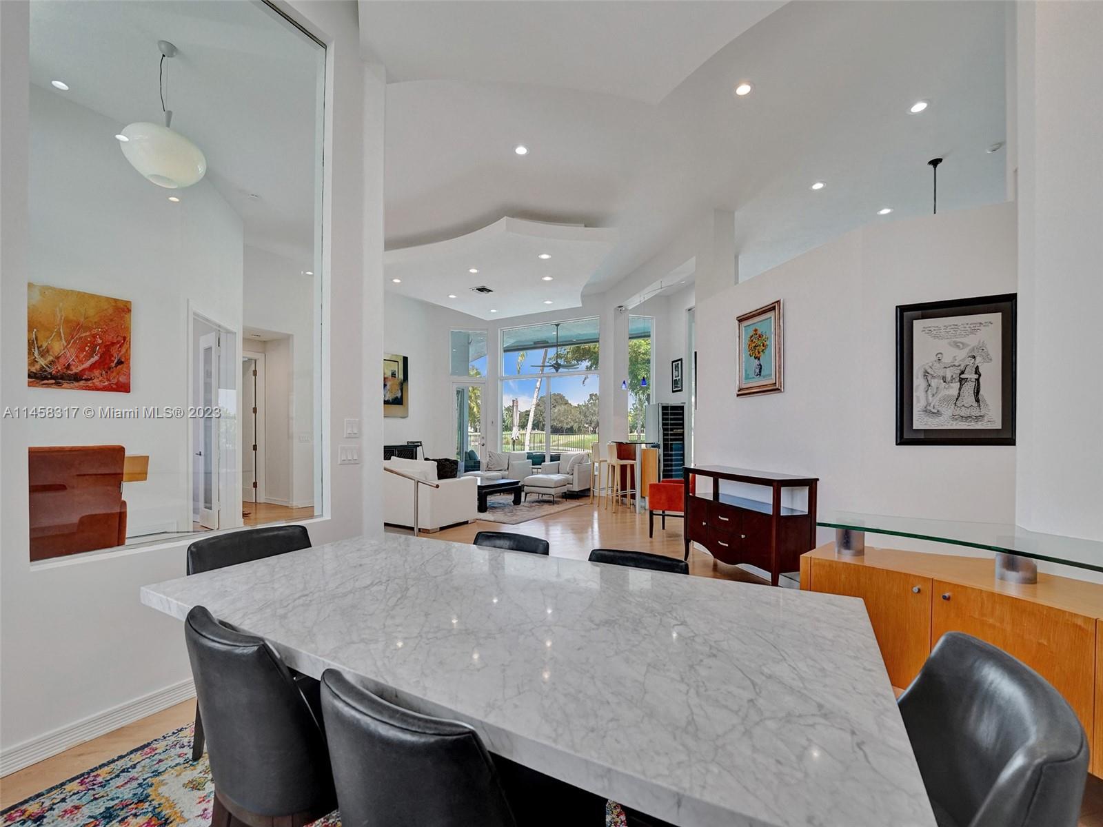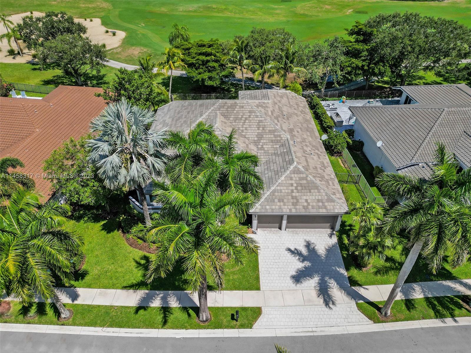 Modern Luxury Living in the exclusive gated community of Weston Hills CC, this residence overlooks the 3rd hole of the Players Course. BRAND NEW ROOF and FULL IMPACT windows and doors. Solid oak wood floors in the living areas, high-detailed ceilings, LED lighting, and abundant natural light. The primary suite offers a tranquil retreat, dual walk-in closets, a NEWLY RENOVATED OWNERS BATH with porcelain finishes, a vessel tub, a shower, and dual sinks. MODERN KITCHEN outfitted with high-end stainless steel appliances—Miele cooktop, double wall oven, and Subzero refrigerator. Secondary bedrooms boast new laminate flooring and walk-in closets. NEWLY RENOVATED TRAVERTINE POOL DECK surrounds the resurfaced, heated saltwater pool and spa—a private oasis with picturesque golf course vistas.